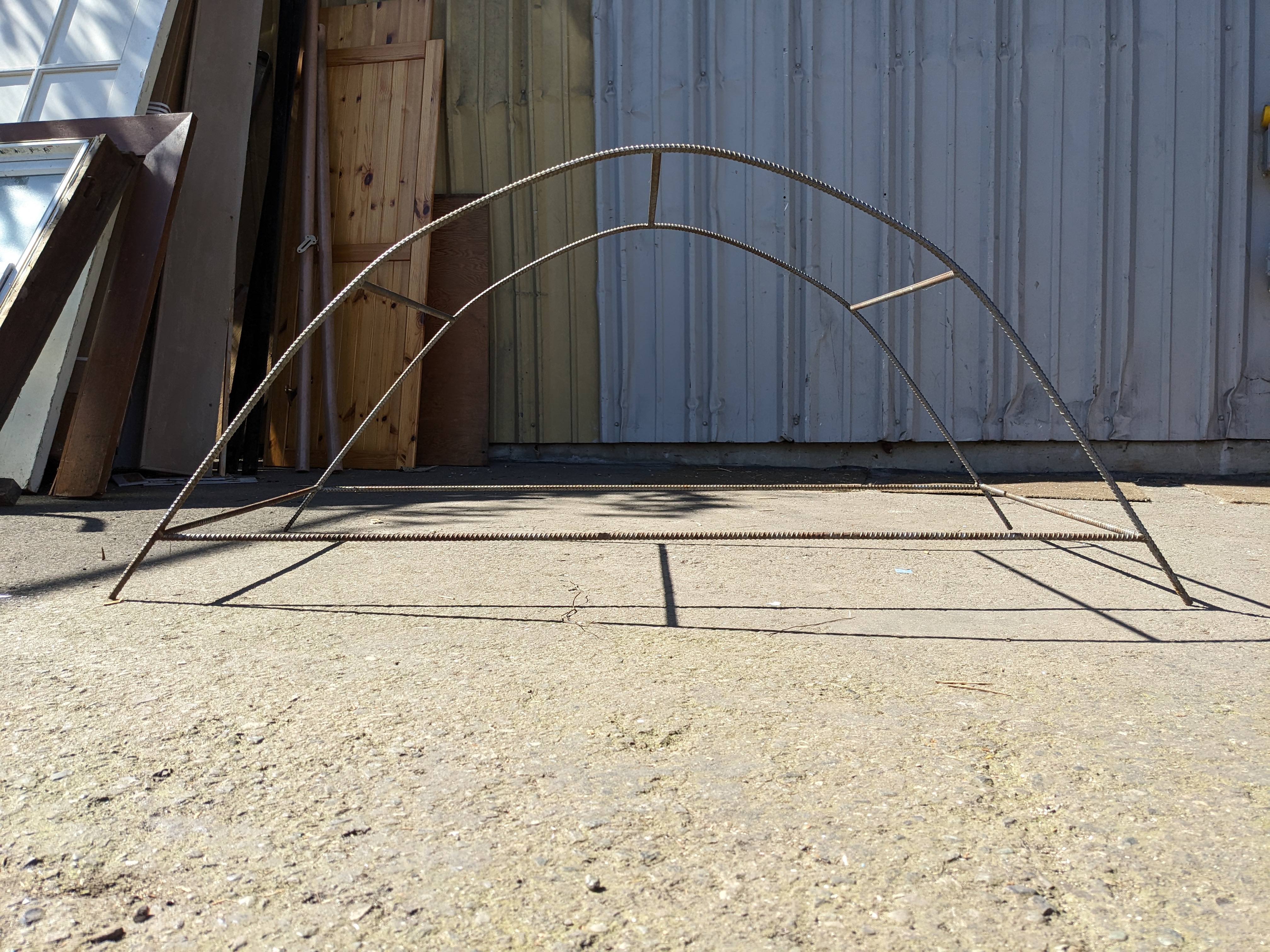This one of a kind handmade arch is ready to take your garden to the next level! Made of lightweight rebar, its ready to cap your trellis and bring your viney shaded dreams to life.