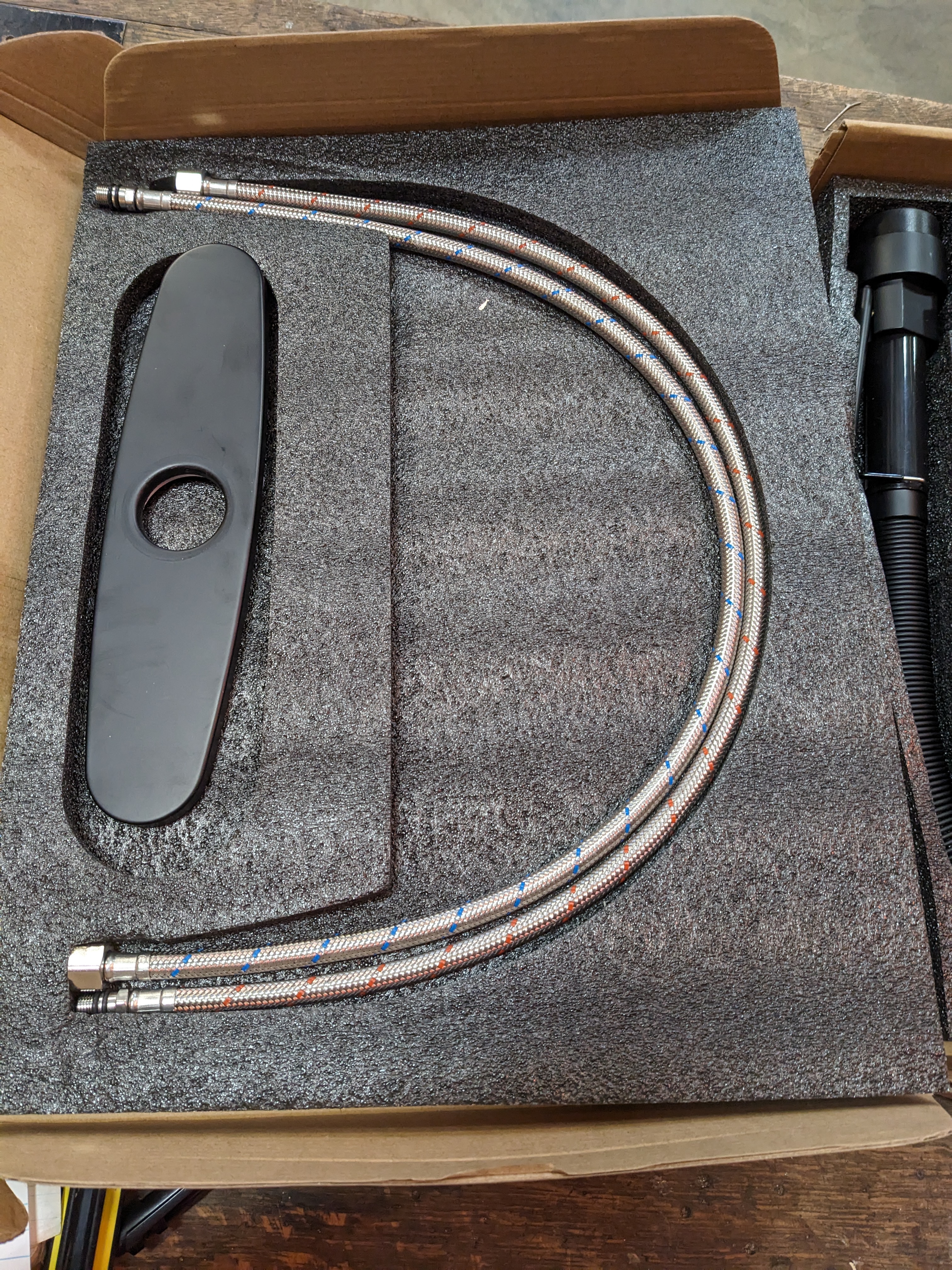 Product Specifications: Ideal for most kitchen setups, this faucet measures 18.5" in height, with a spout reach of 8.3" and spout height of 5.5". It comes with 23.6" supply hoses for hot and cold water, featuring 3/8" female compression threads for compatibility.