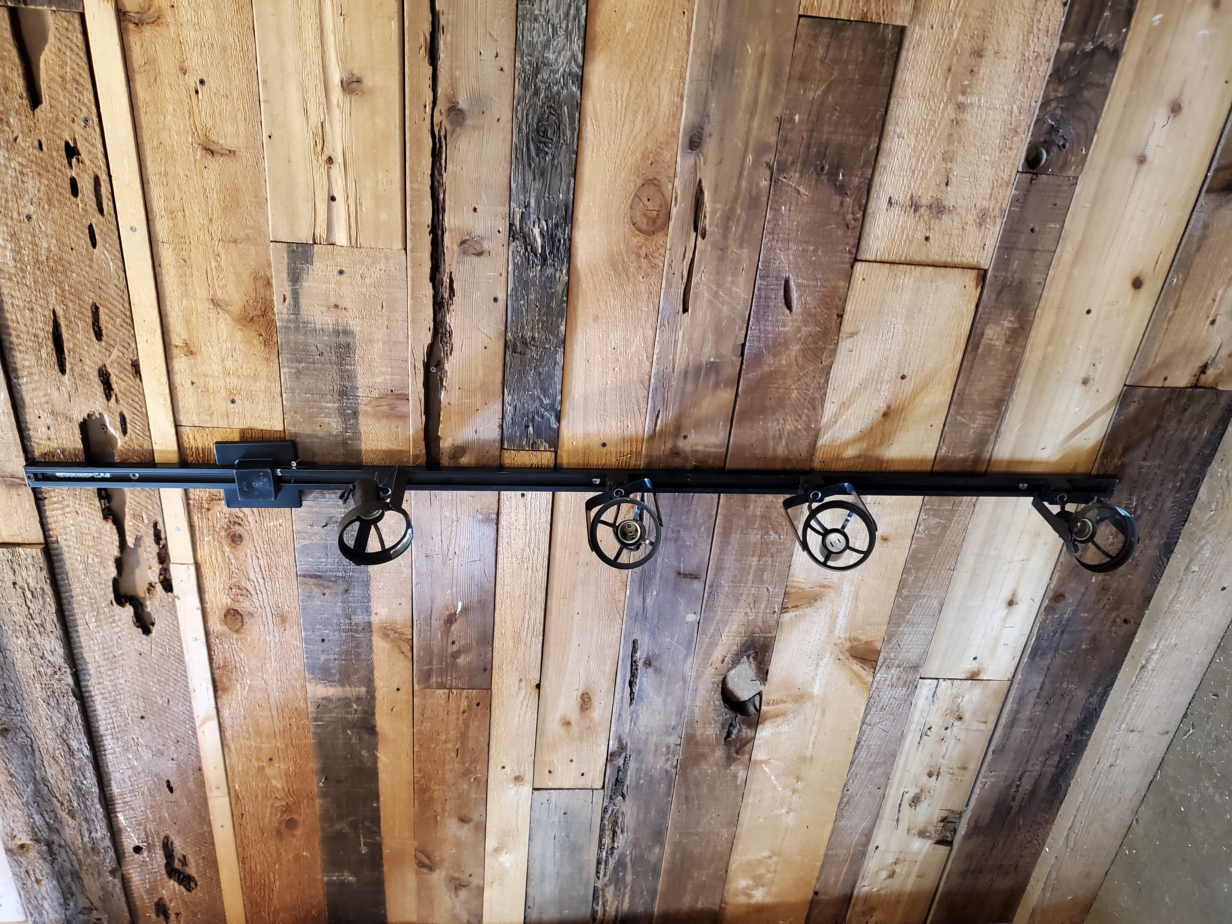 Collection of black spotlight fixtures with extended length attachments, most of the fixture is modular.