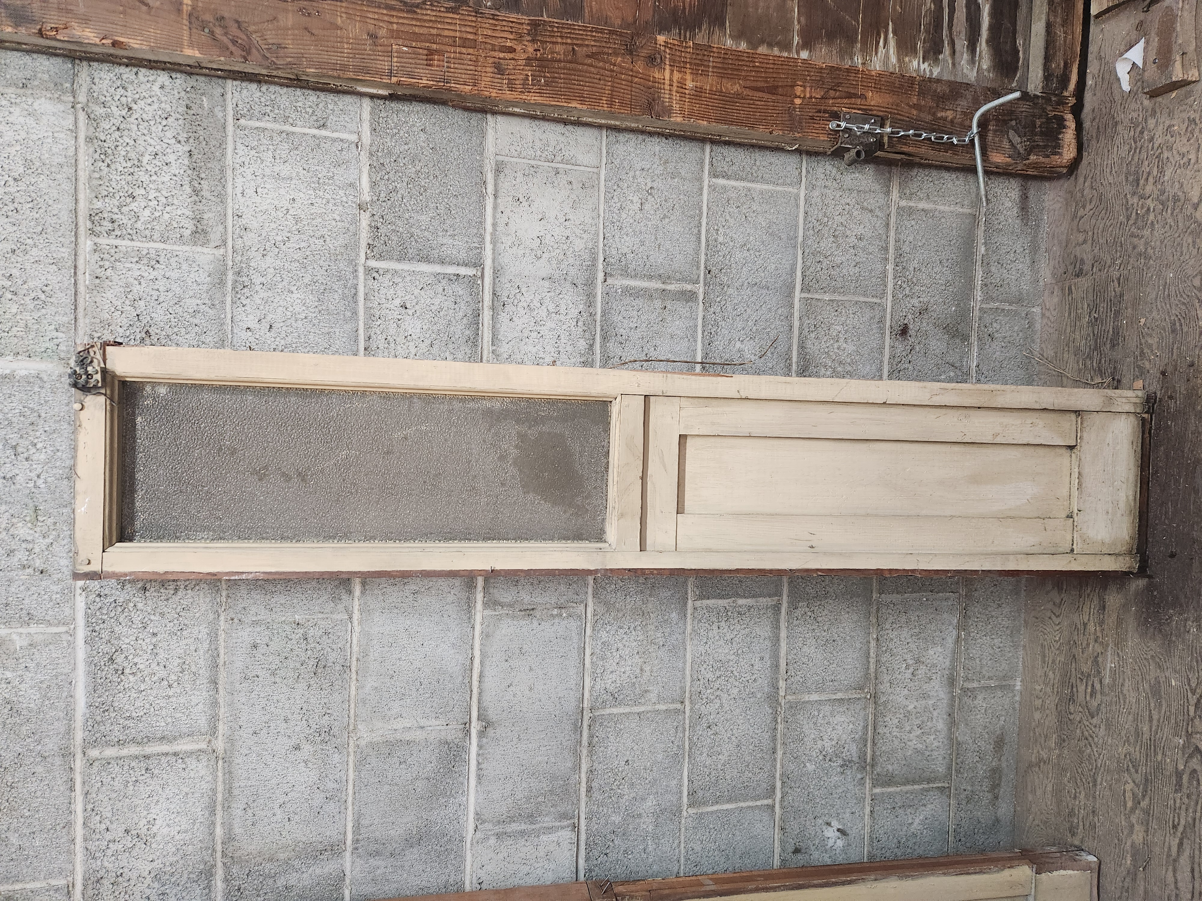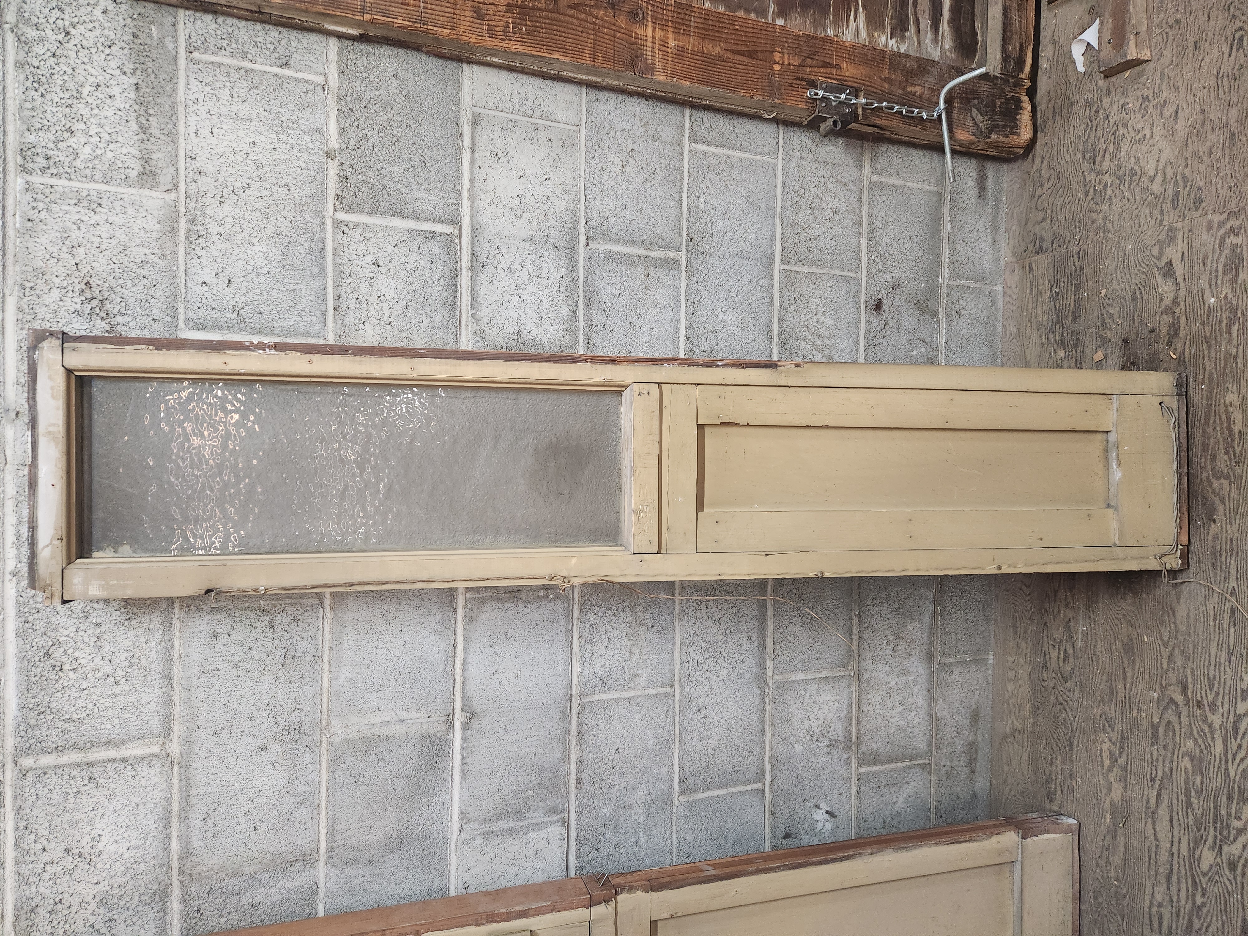 Vintage divider panel with obscured glass. It has some history as it was used in an office for the old Tacoma News Tribune. It has been sitting in storage for a while, so it has some built up grime leftover. Can be used for a variety of things. Measures 13.75 x 71 x 2.5.