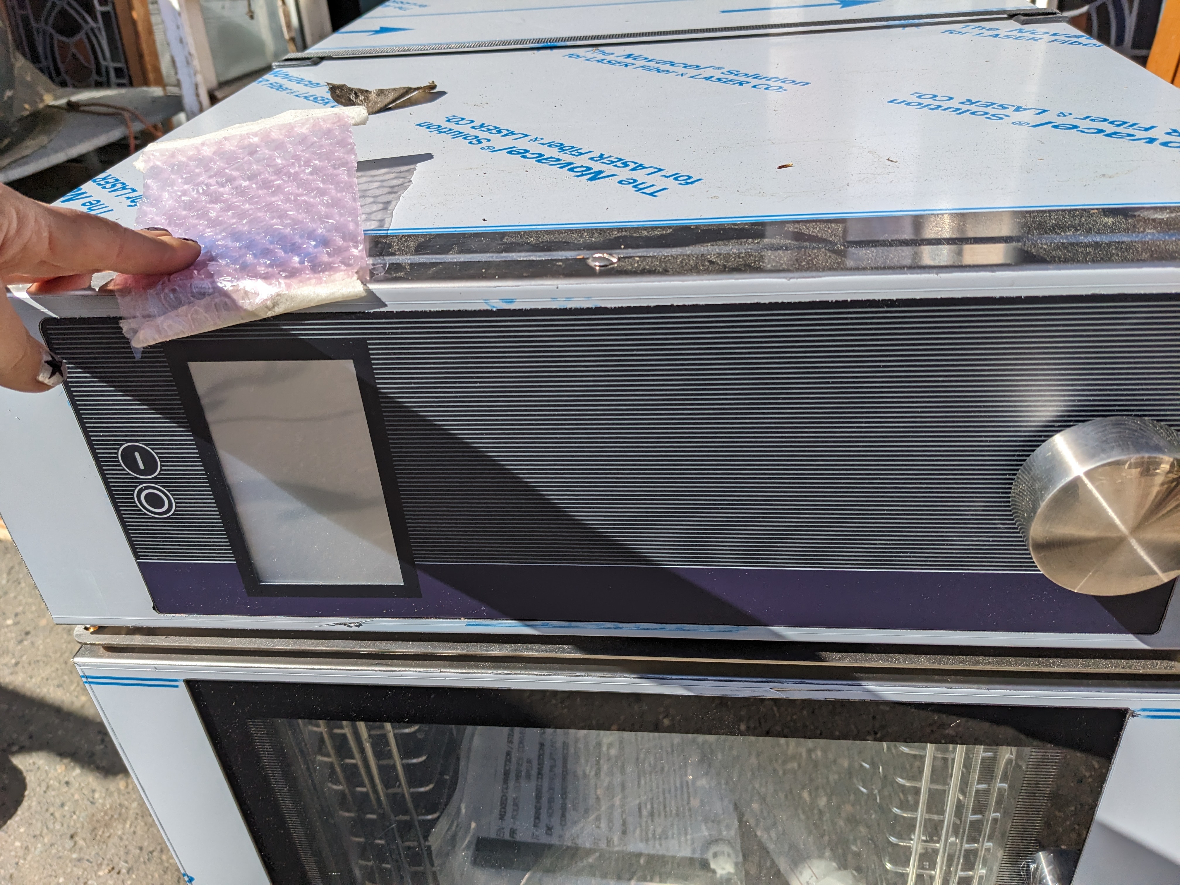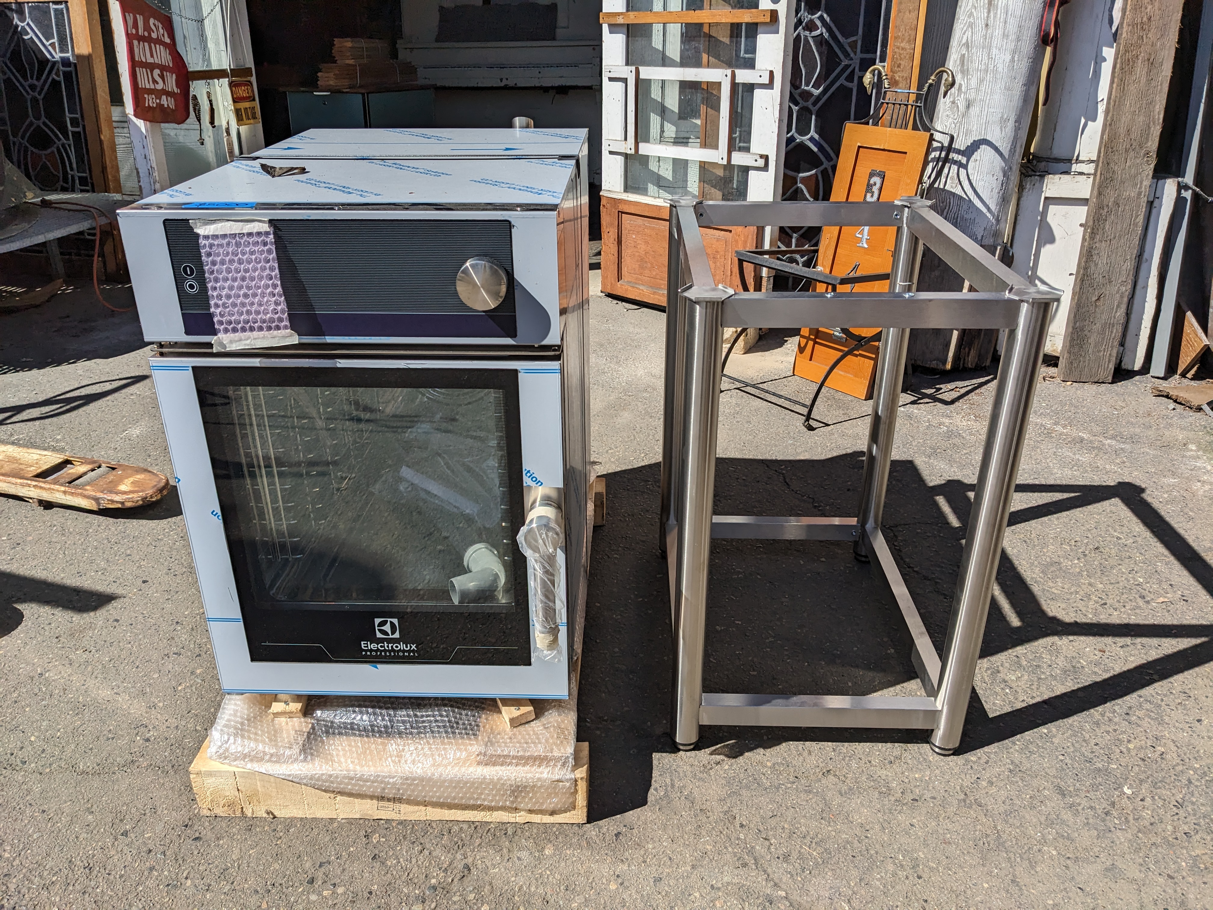 This compact, commercial grade electric boilerless oven is brand new, but we're offering it for significantly less than the $10,000 new price tag. It is ideal for convection cooking with a dry, hot convection cycle (25-300 degrees Celsius) and can accomodate 6 half sheet pans. It allows for programming of a maximum of 99 recipes, making your cooking process simple and intuitive.