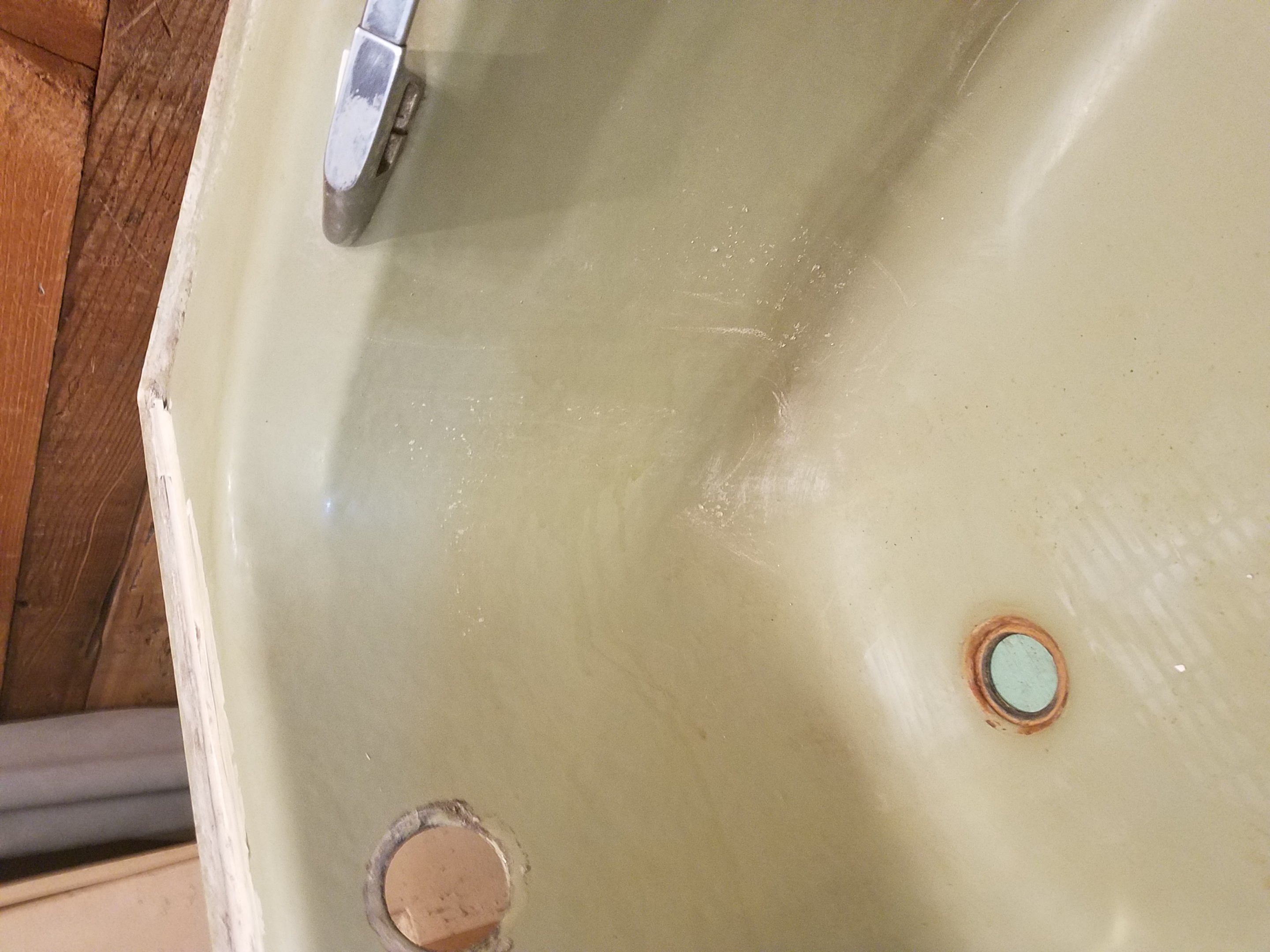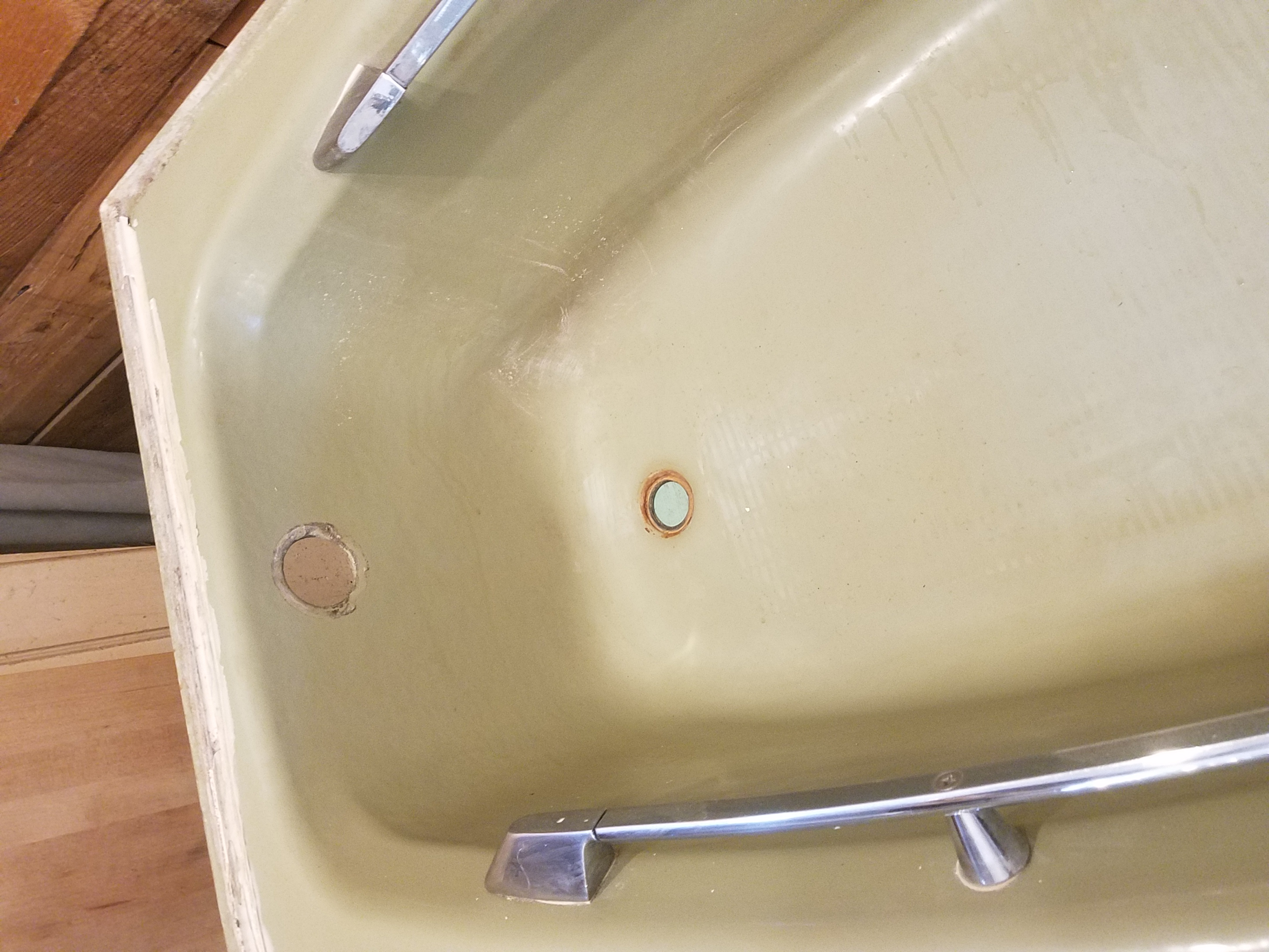 The enamel is pretty worn and there is some minor tarnish, but overall, this tub is stellar.