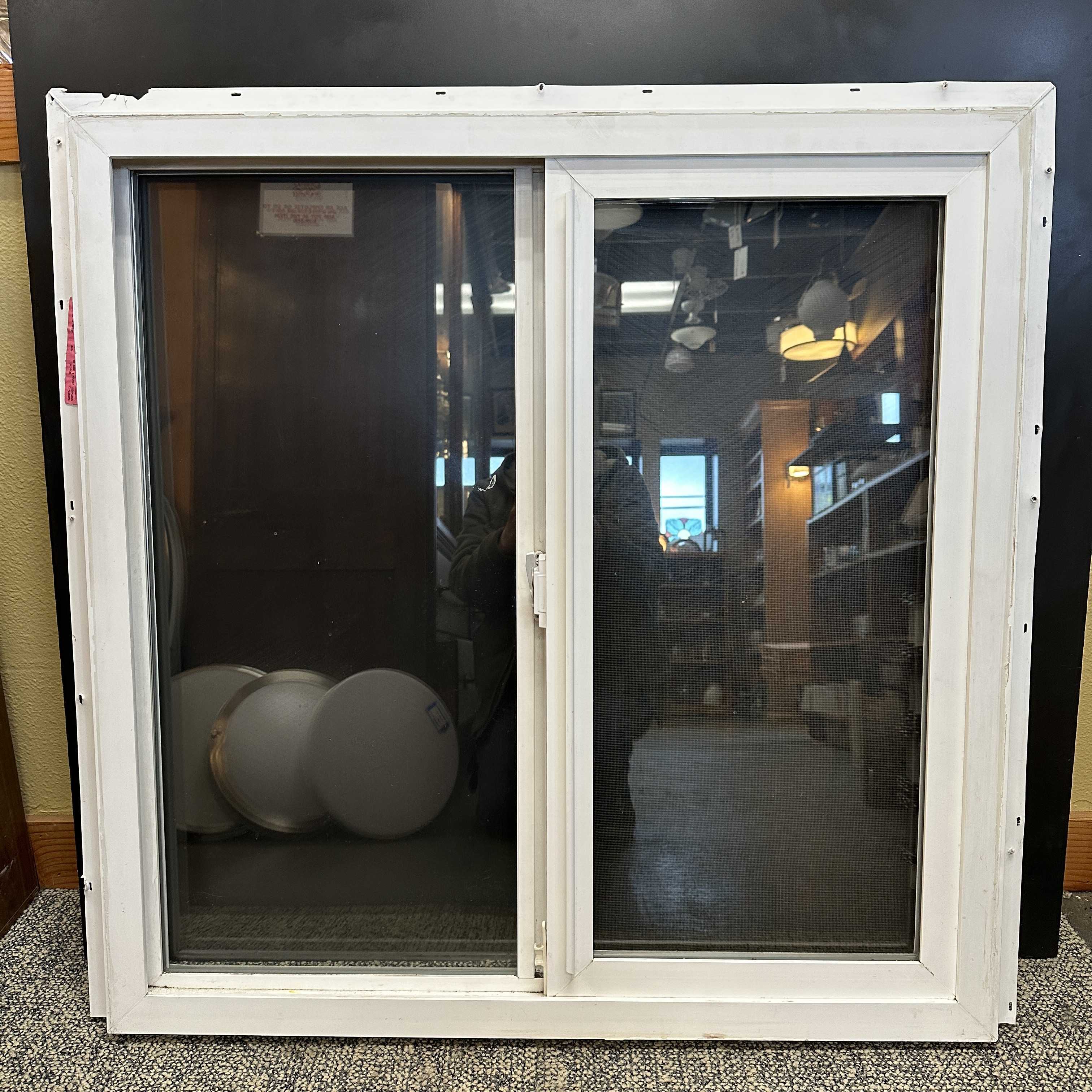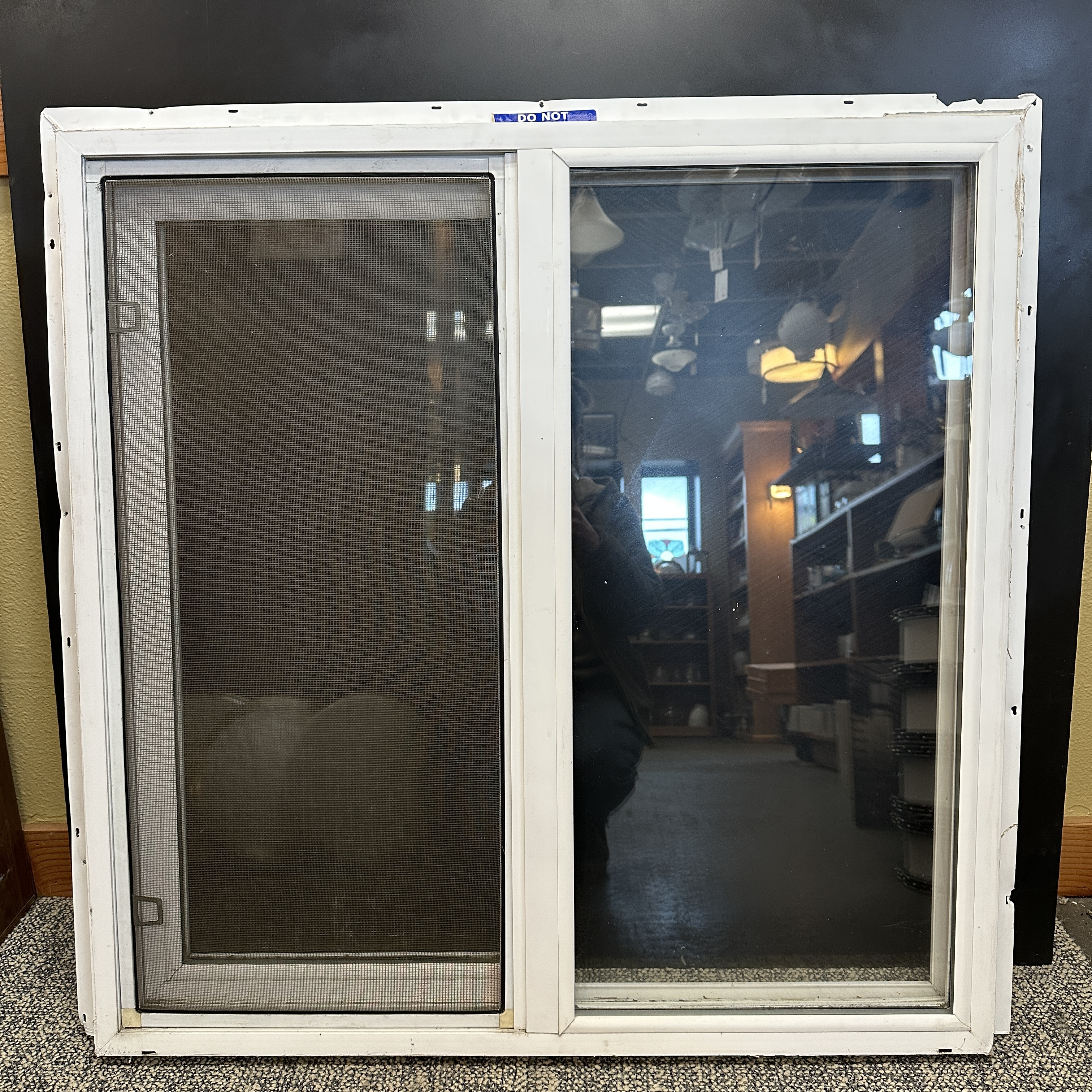 White vinyl operable window with nail flange and screen. Needs some cleaning but in otherwise good condition.