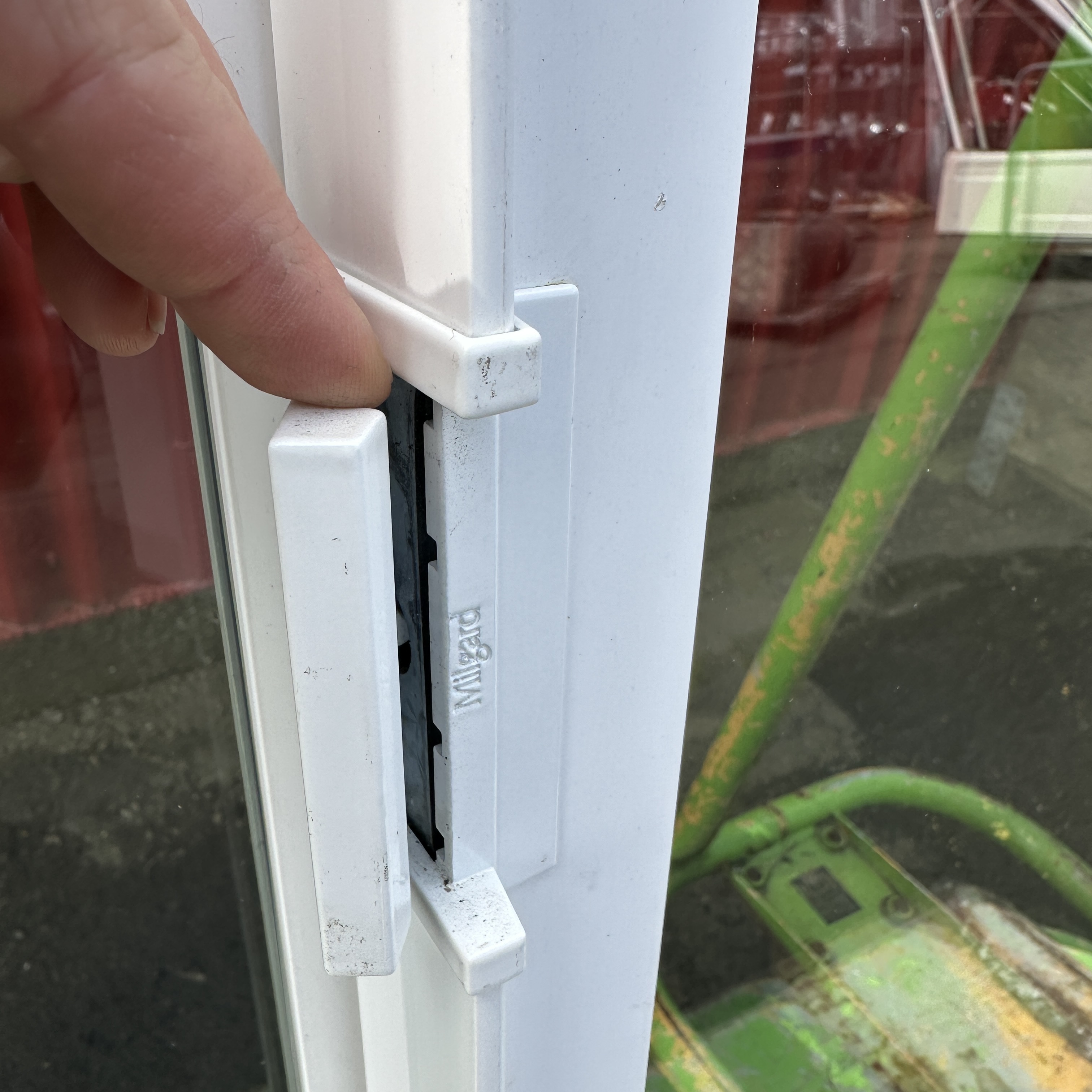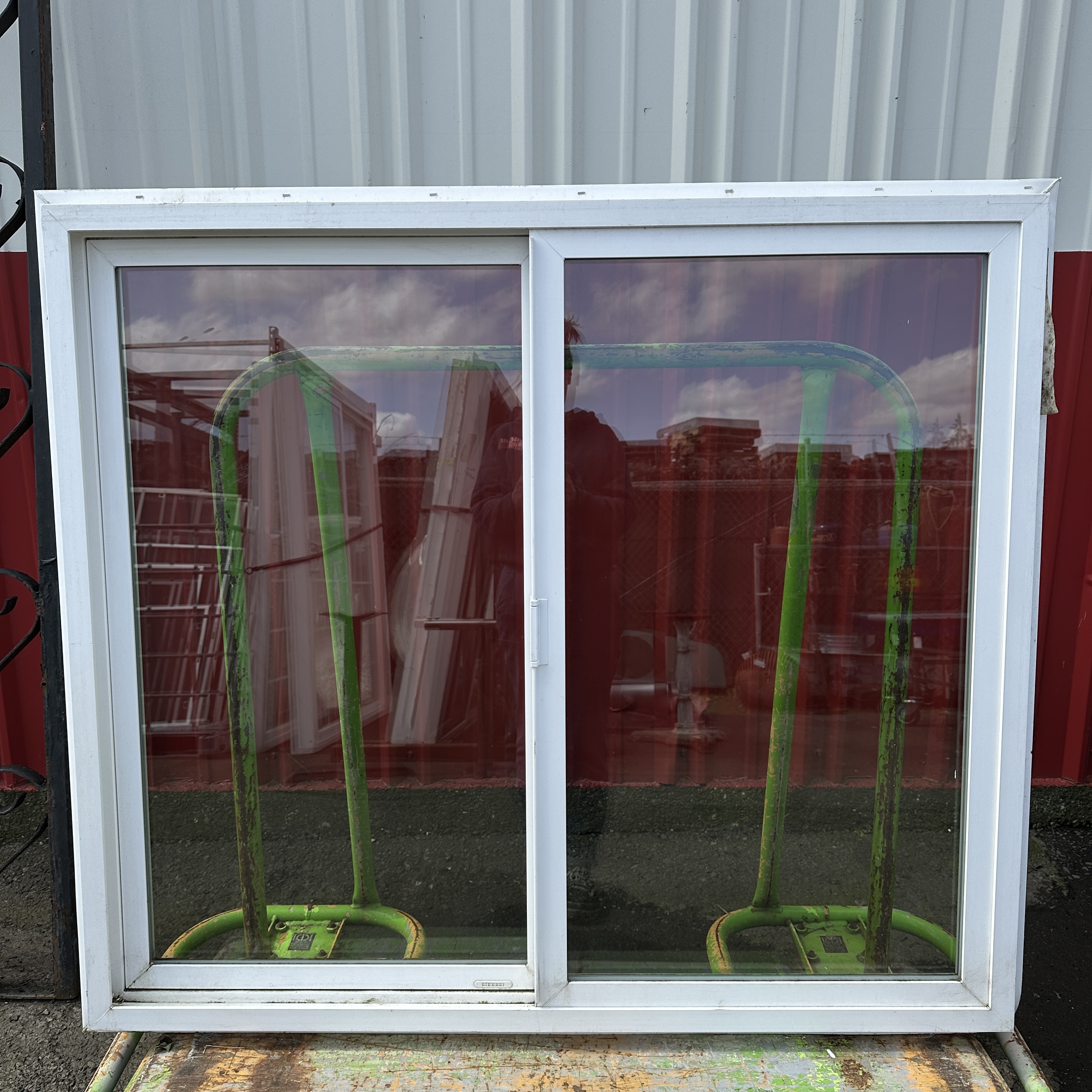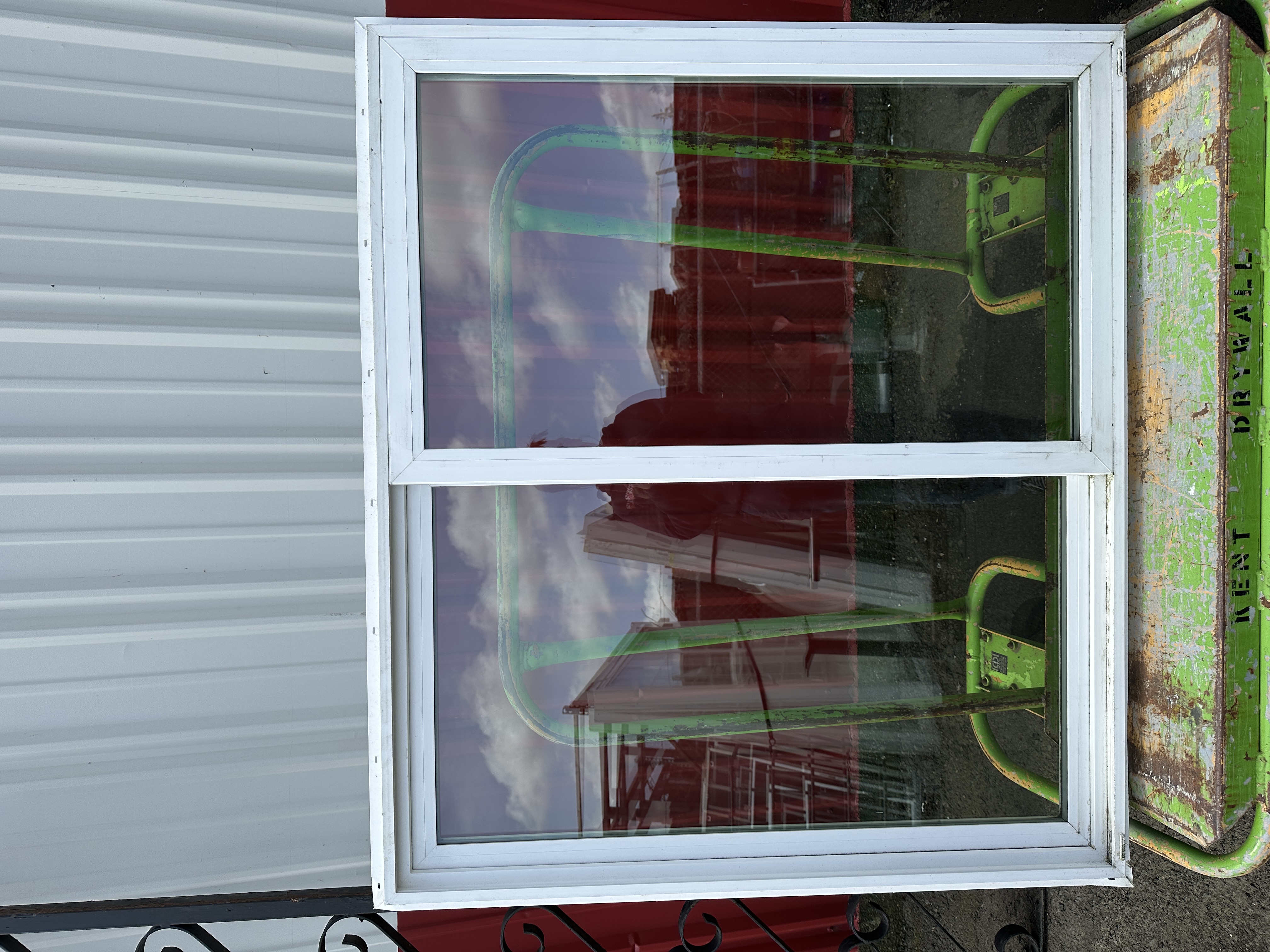 White Milgard sliding vinyl window. Needs a cleaning and doesn't have a screen, but it's in good condition and has the nail flange.