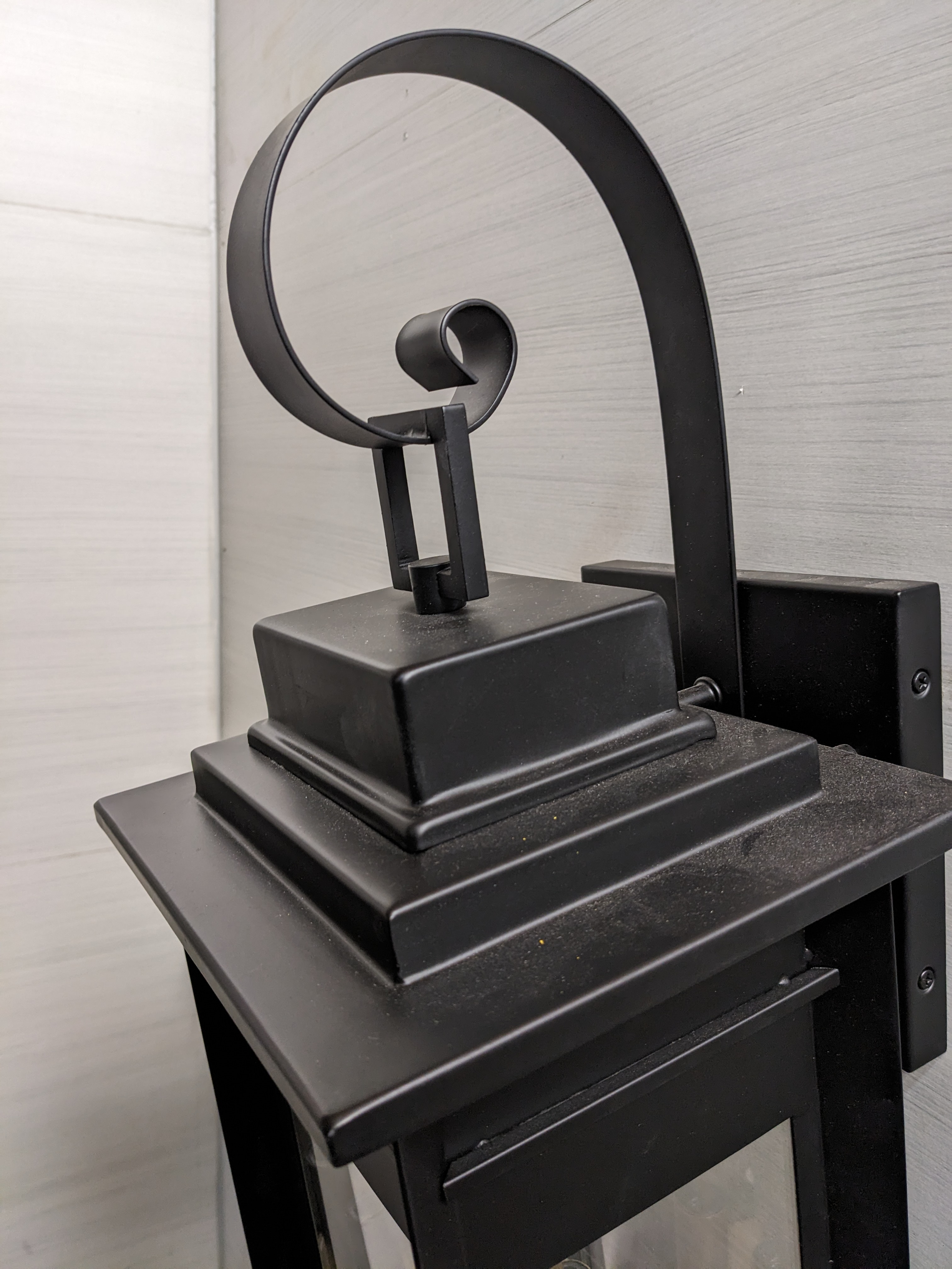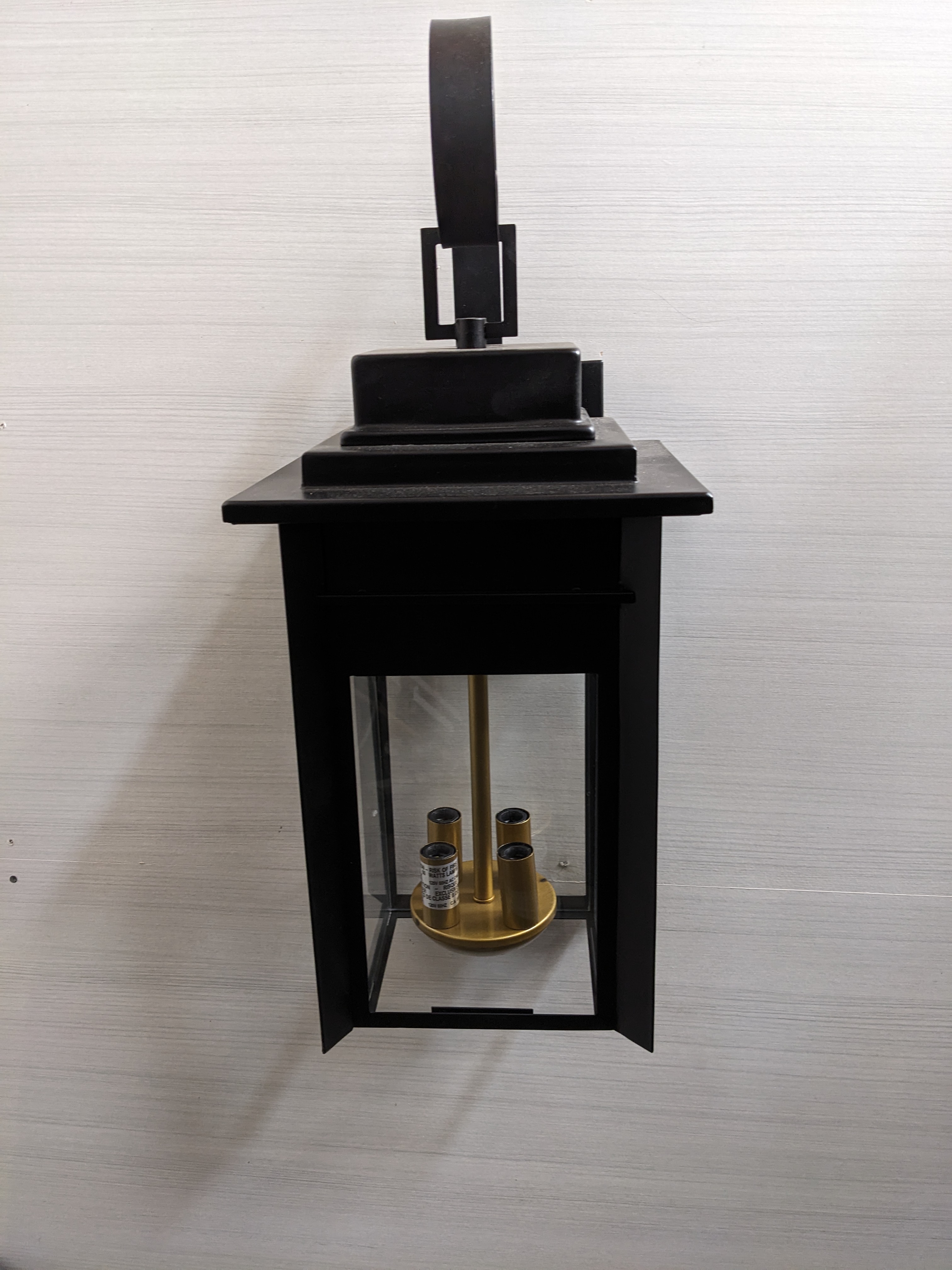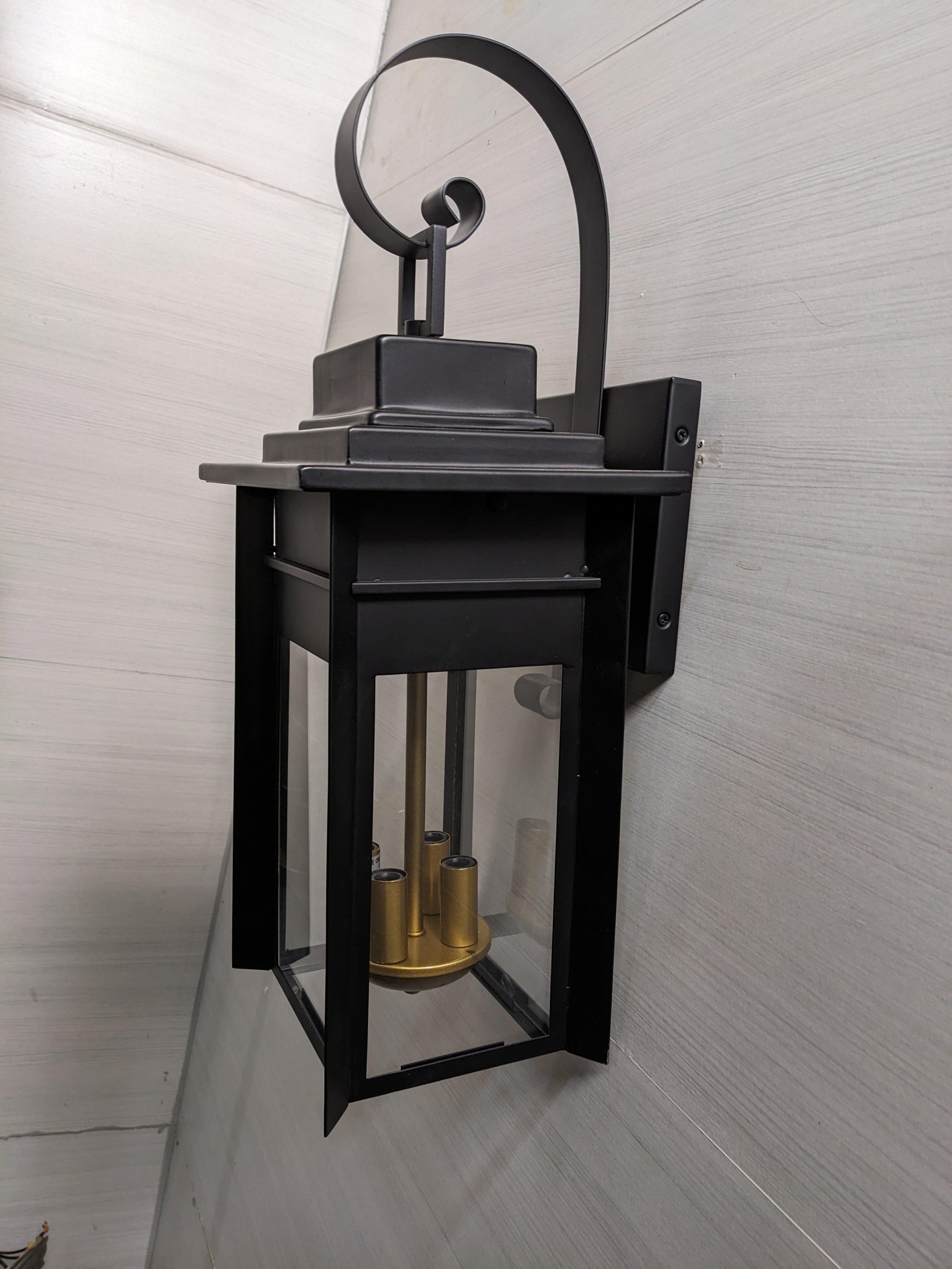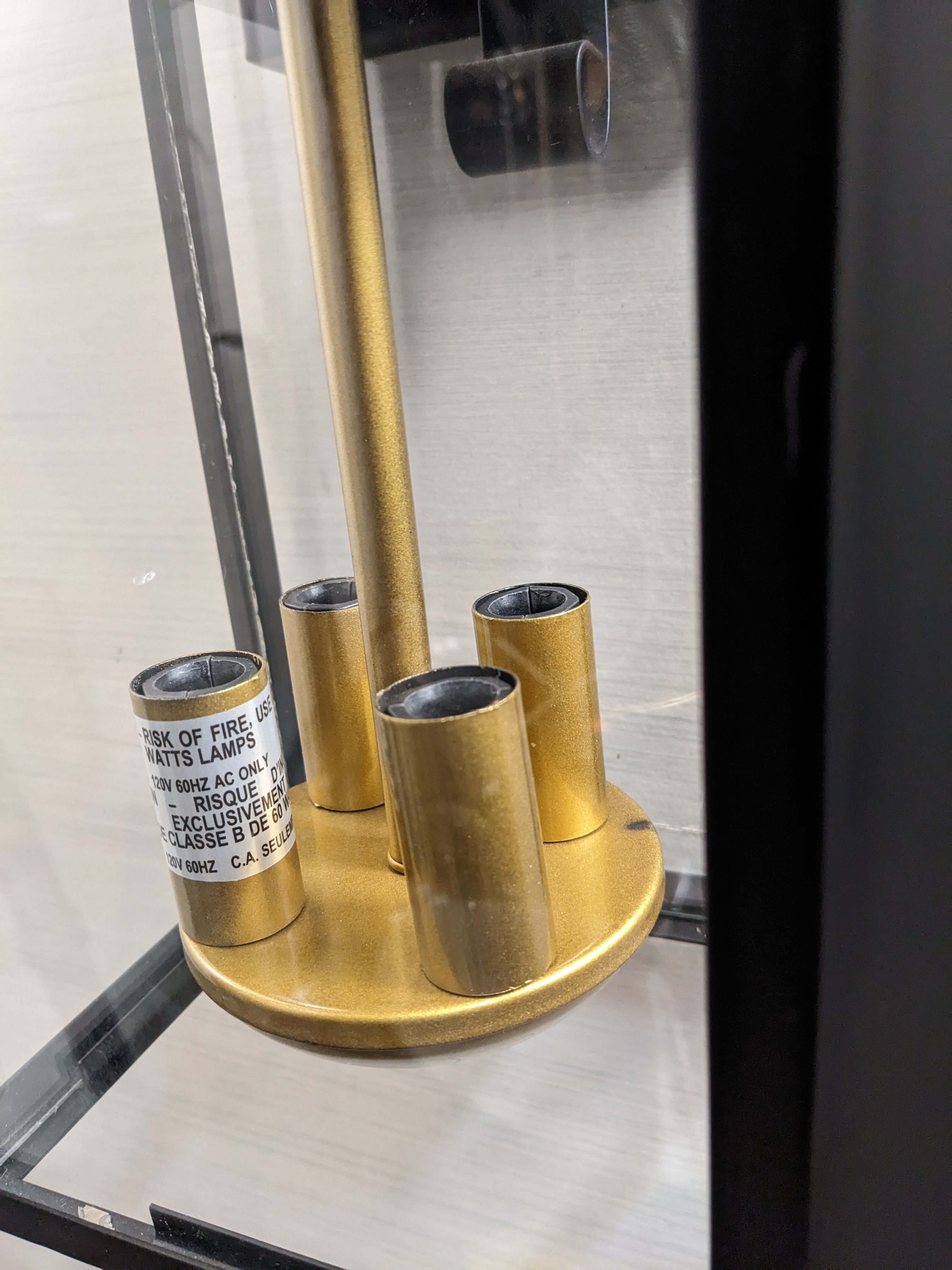 Smooth clear glass on 4 sides. Made of sturdy steel with an oil rubbed bronze (or black) finish. The candelabra size sockets hold 4 bulbs.