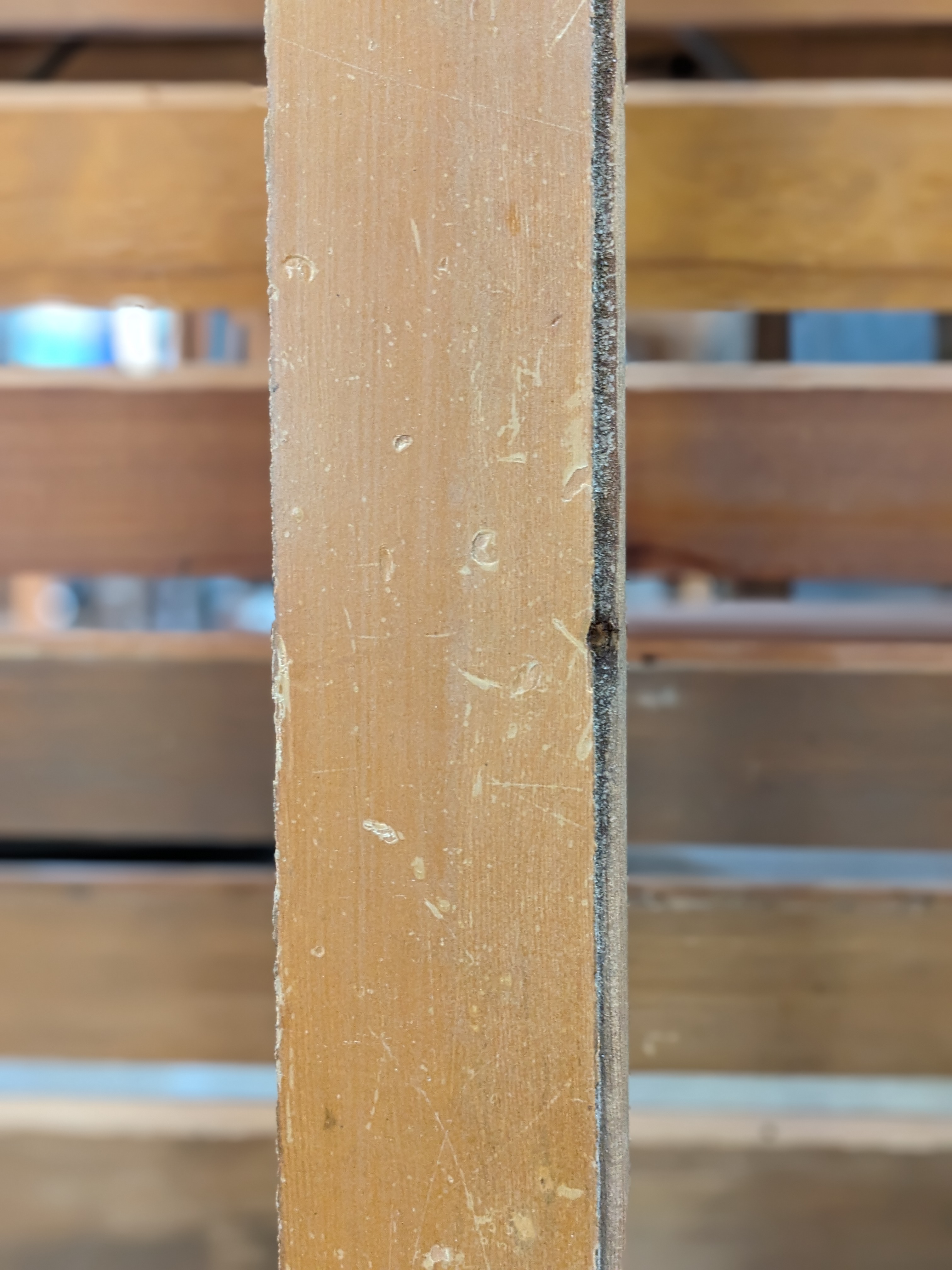 This salvaged for flooring was carefully removed and de-nailed by our own salvage crew to ensure maximum usability. The flooring seems to have been refinished more than once but has some of life left. Nice and straight grain.