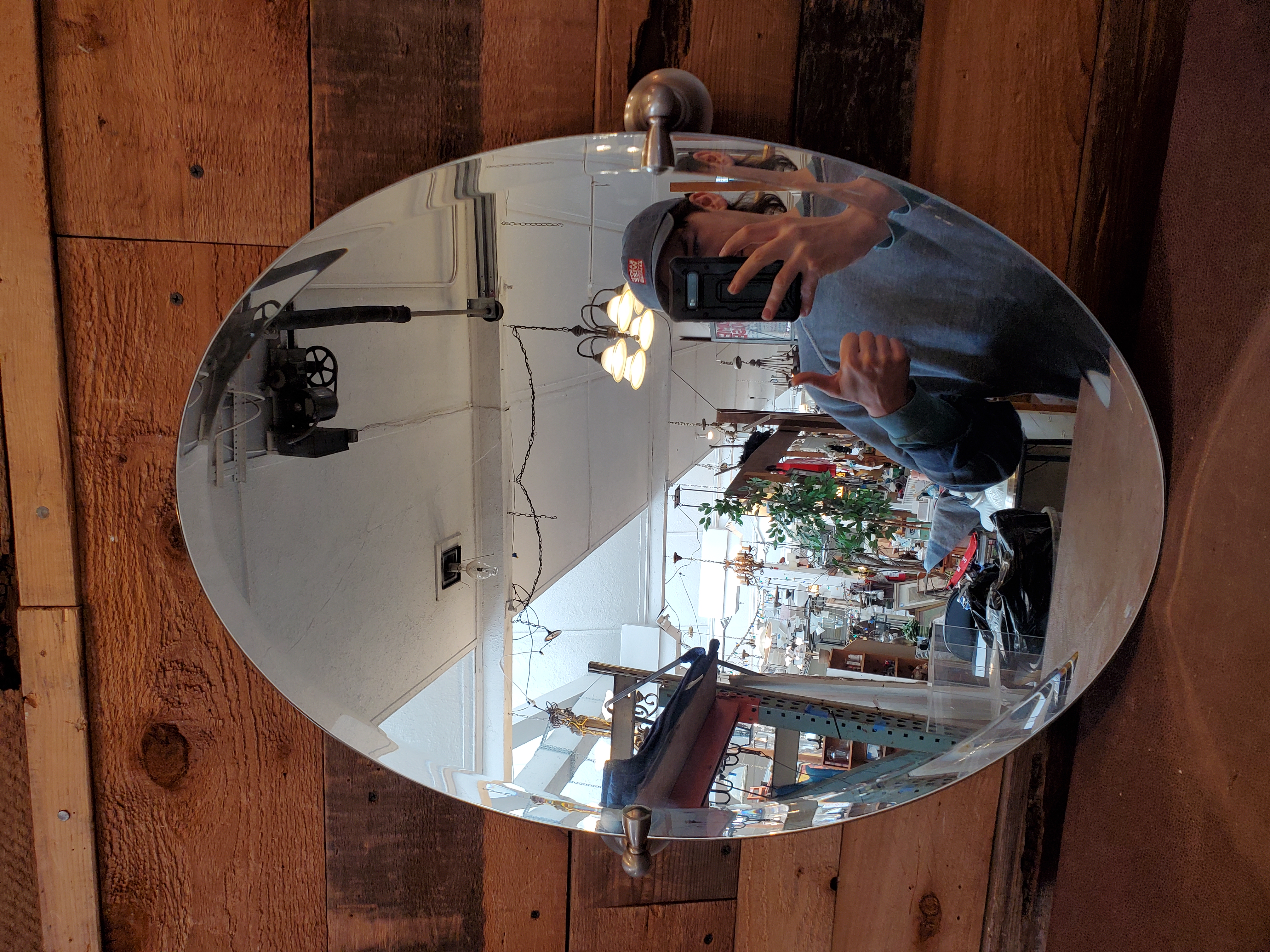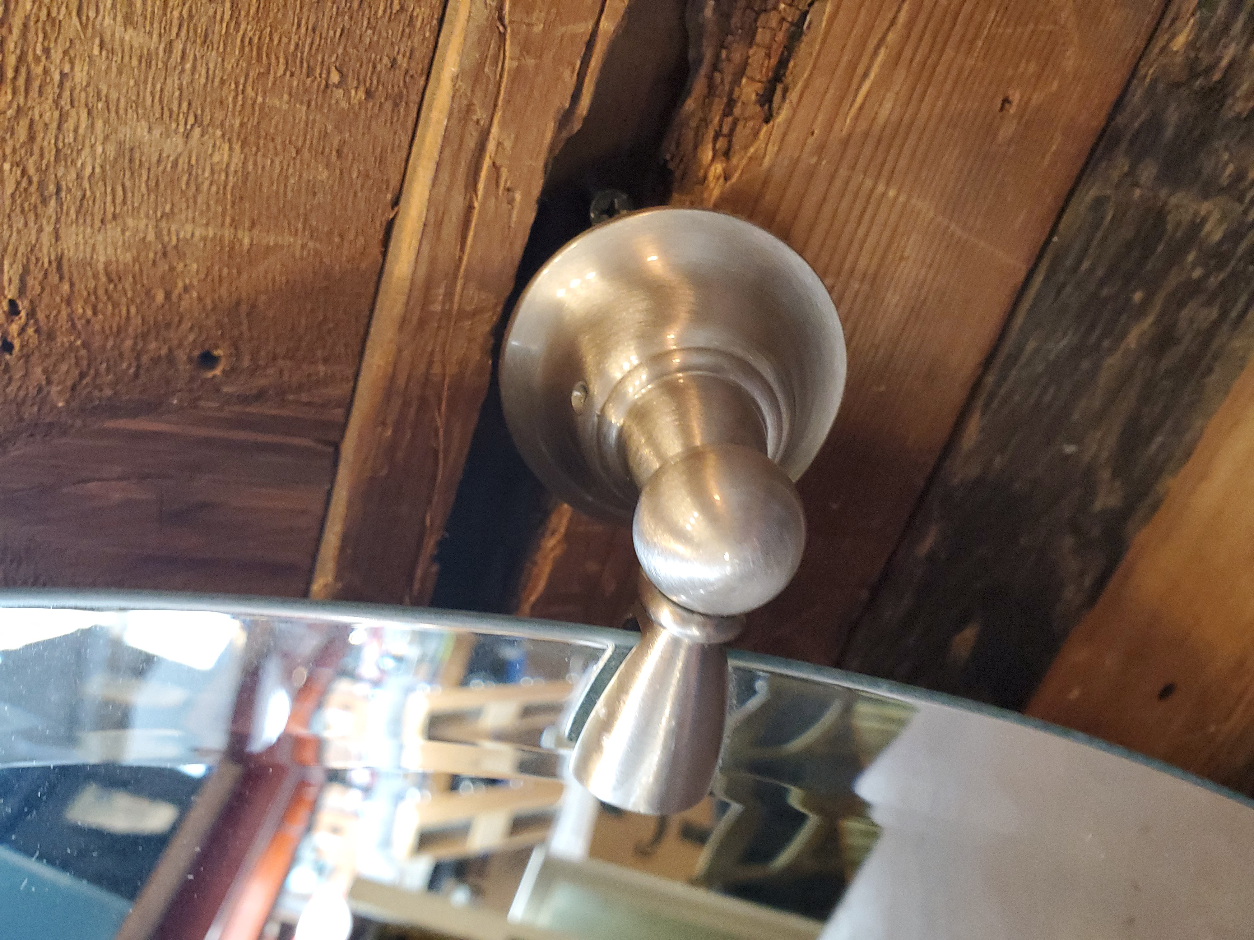 Almost like new condtion beveled mirror, with brushed nickel mounting hardware.