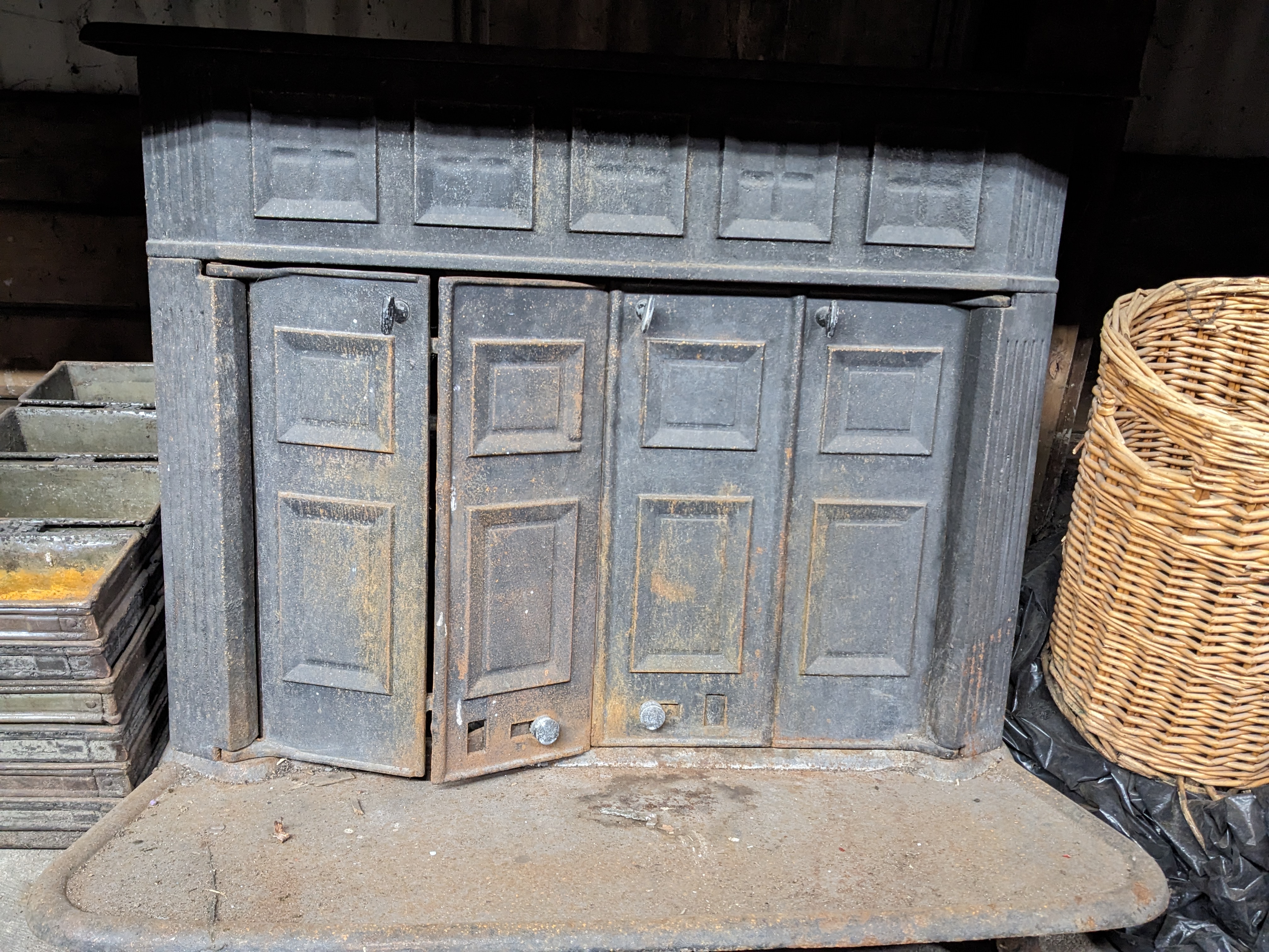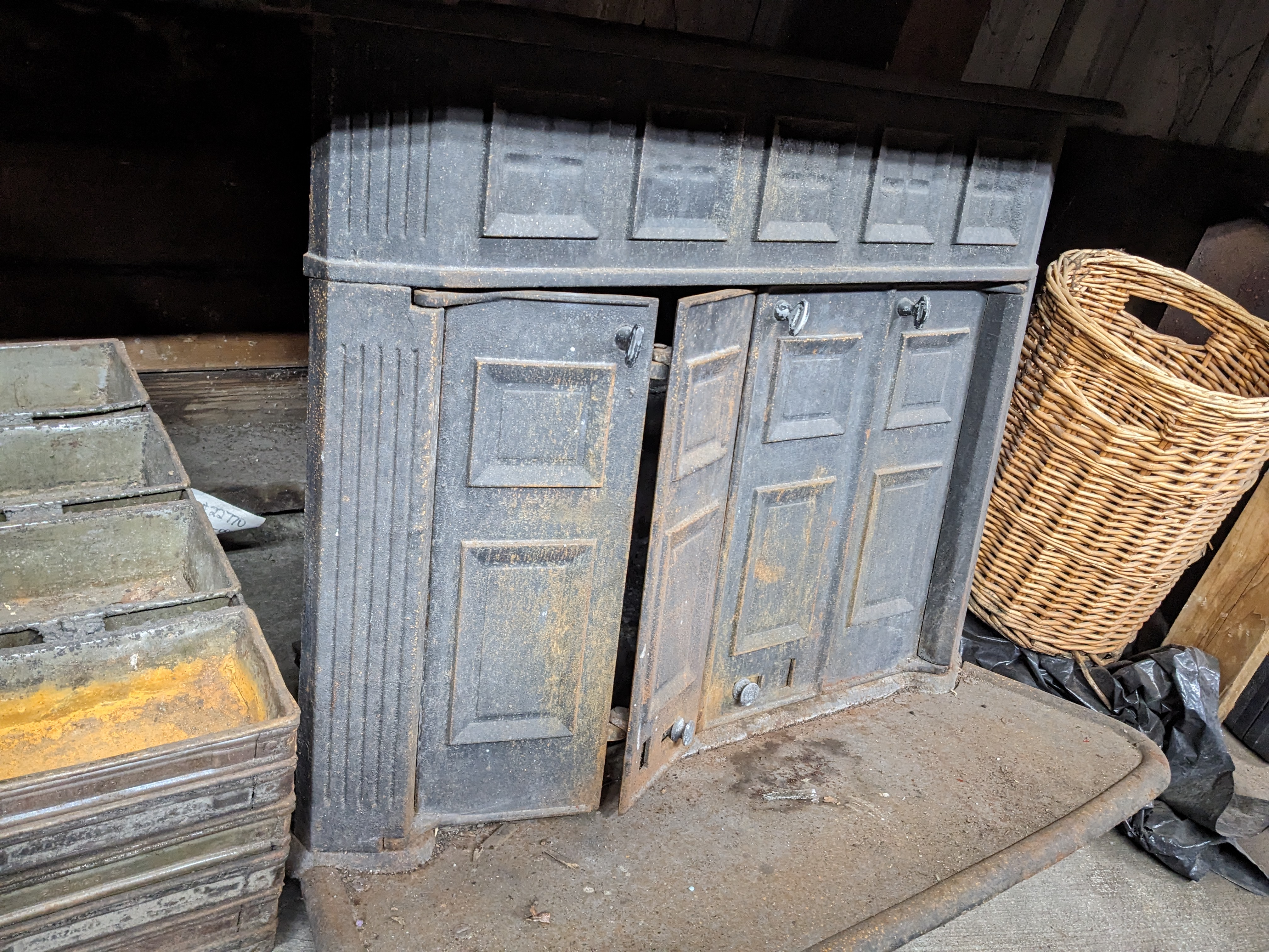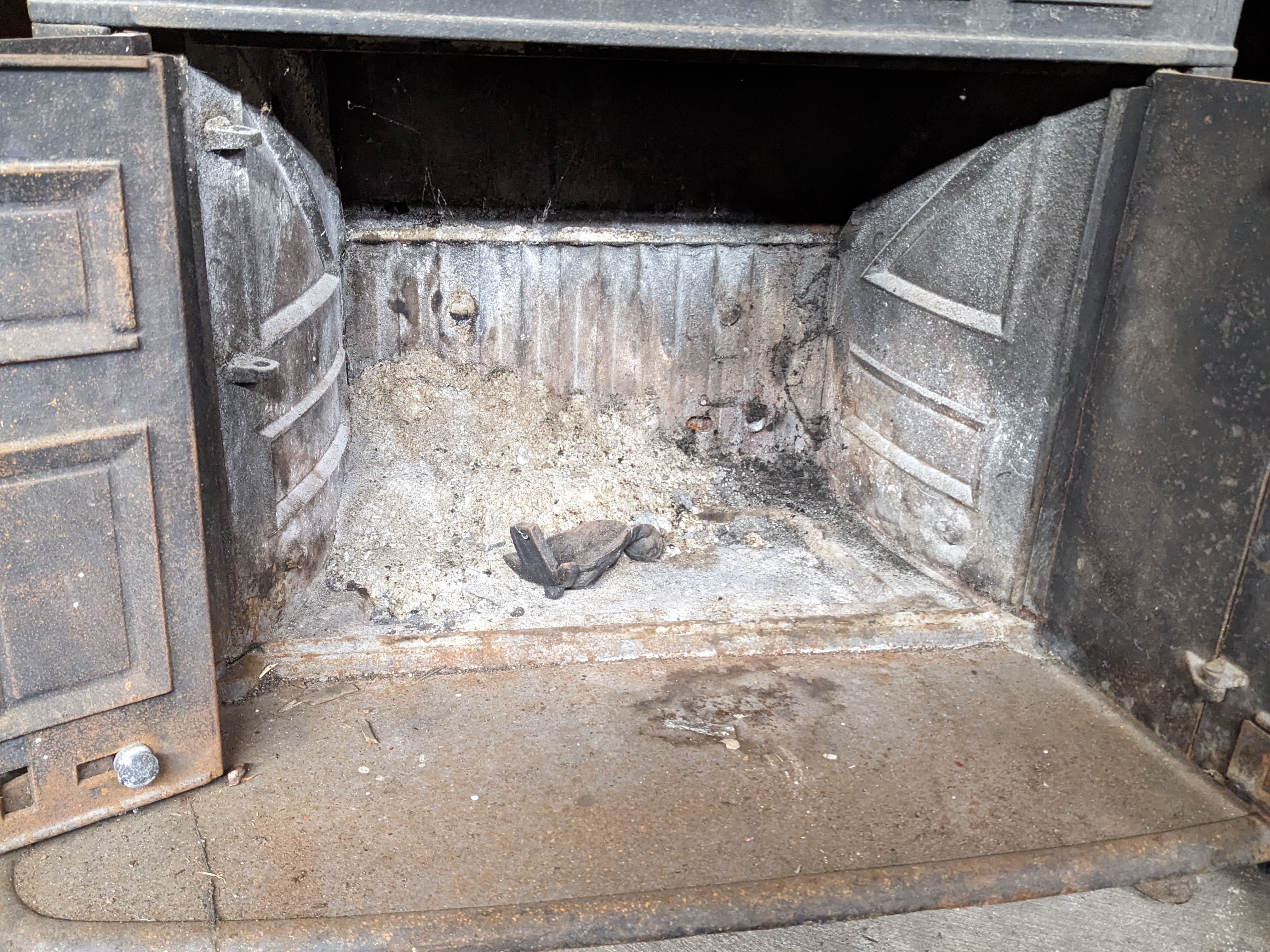 Probably no longer suitable for indoor use, but what a great outdoor fireplace this would make! Measures 34 x 25.5 x 26.