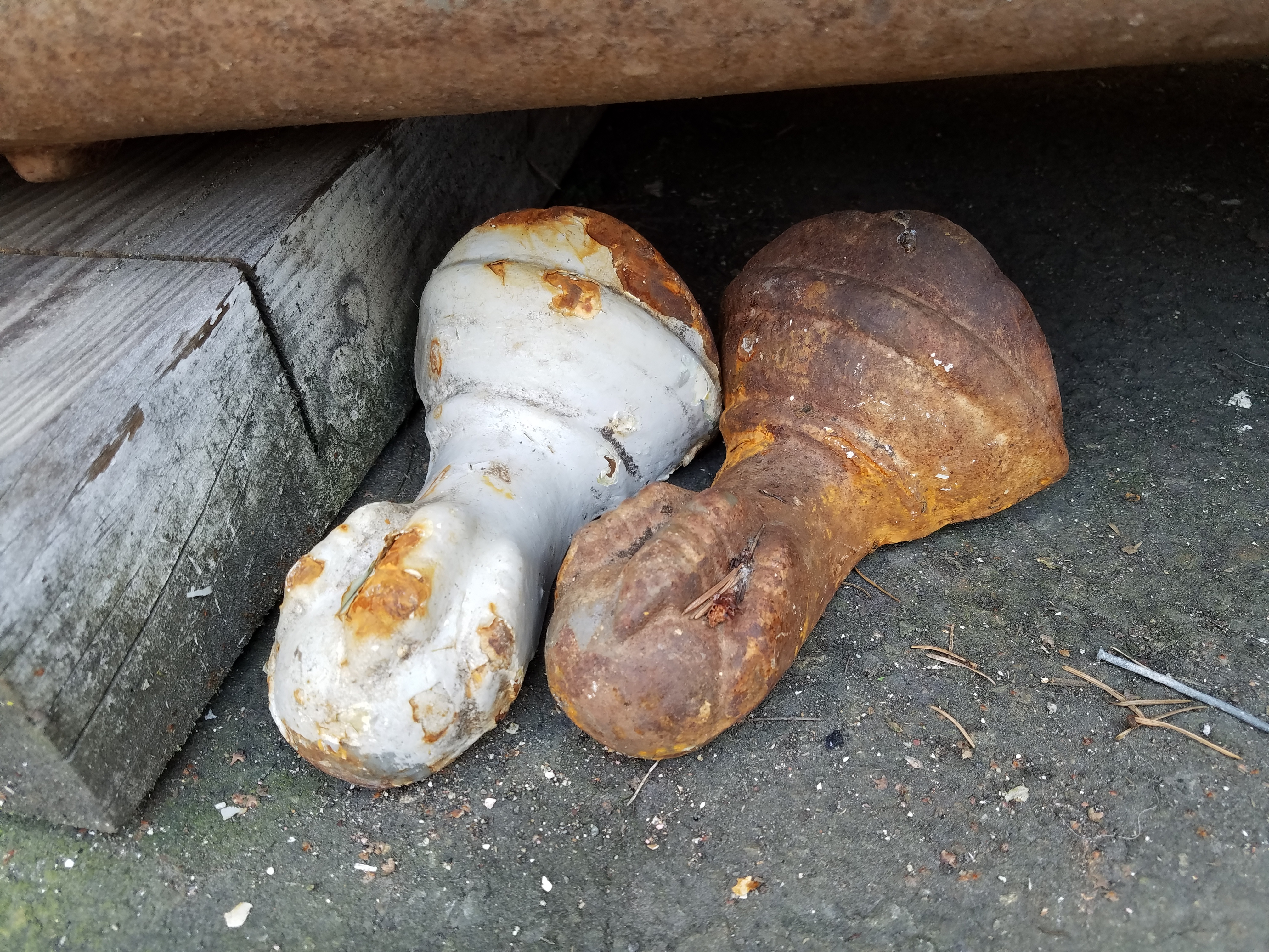 Height was measured with only two feet attached. Noted some minor rust spots but overall in good condition and priced as is.