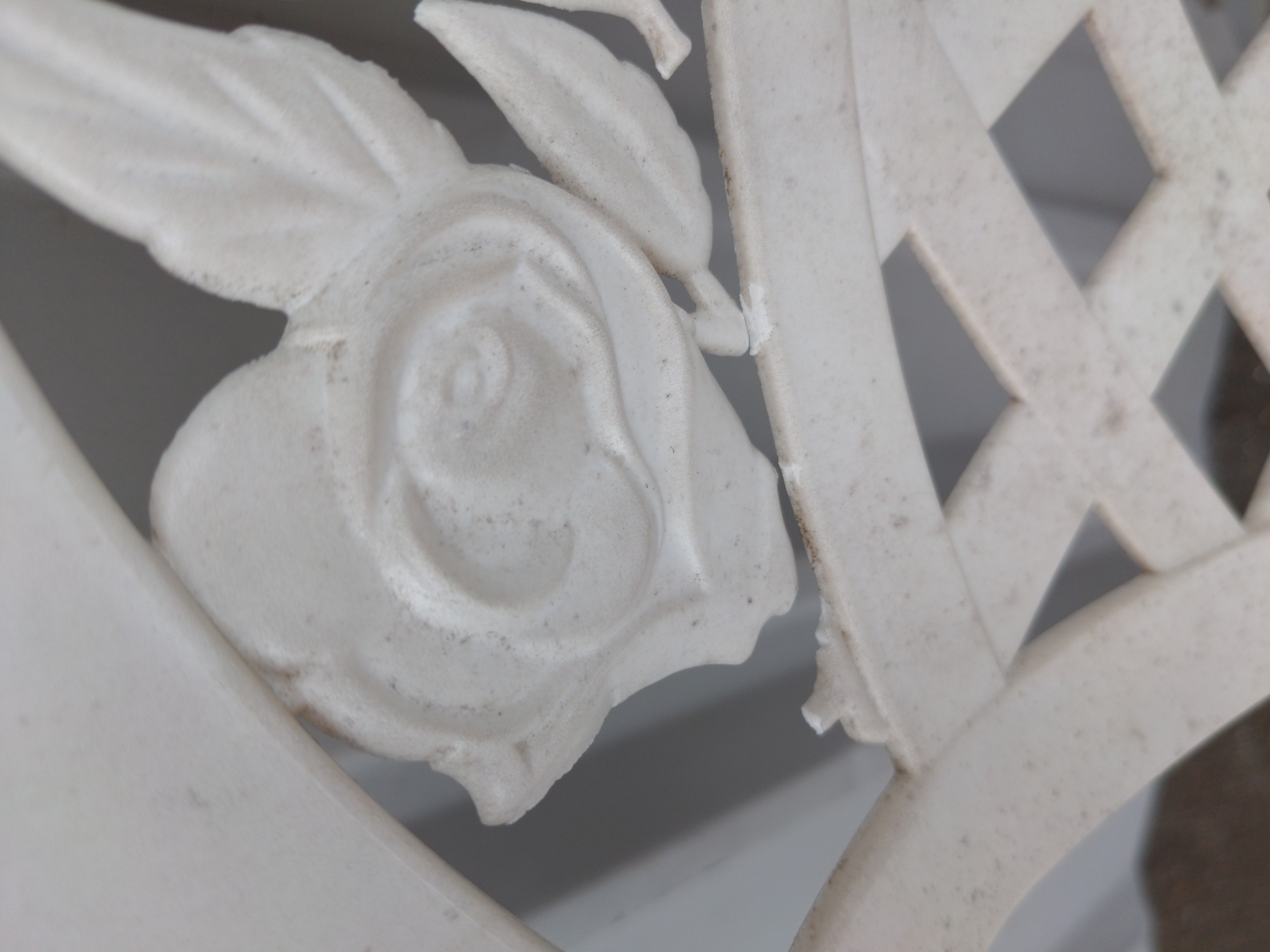 Worn with some cracking in flowers, but otherwise still functions as a chair.