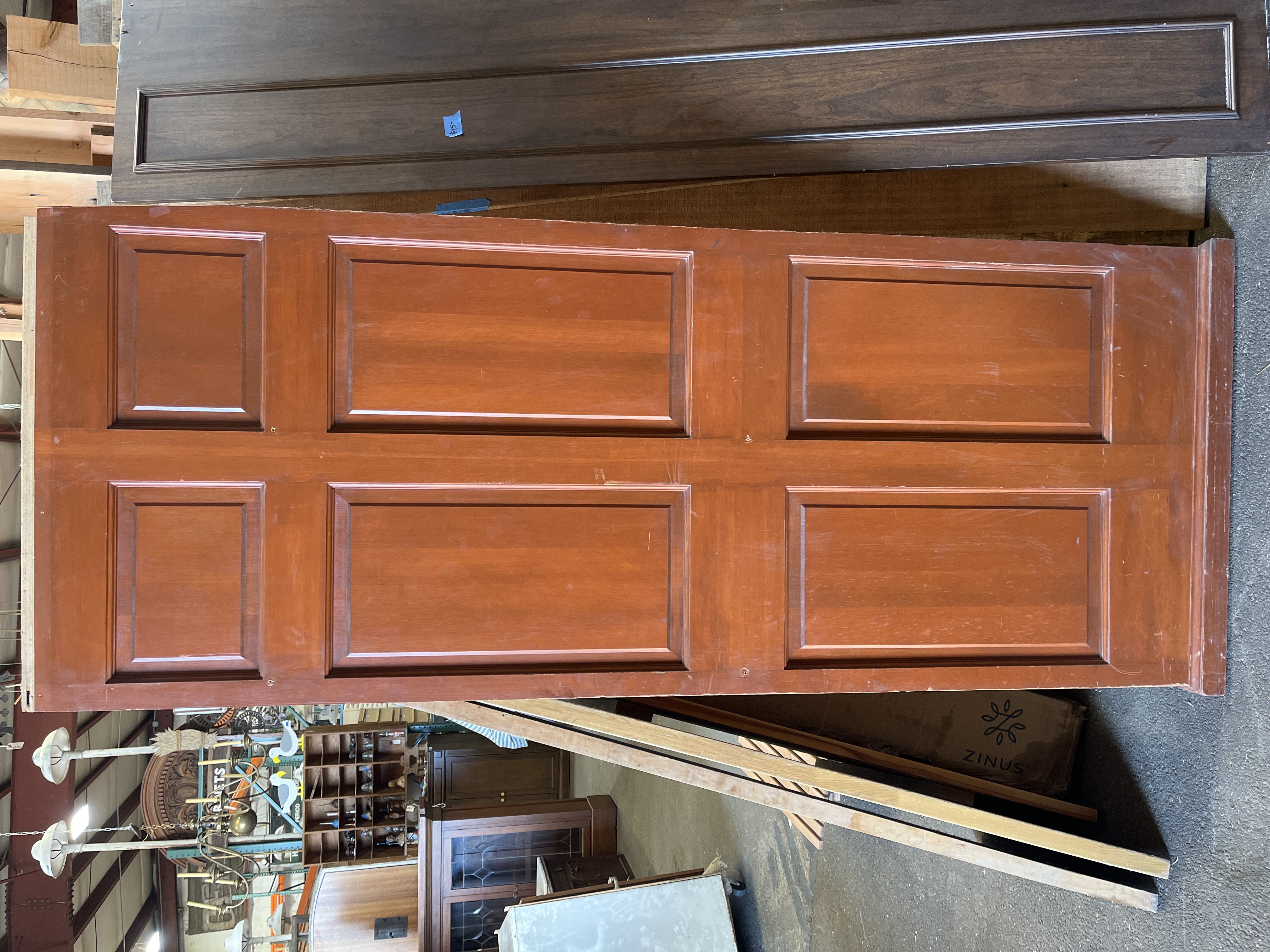 In fair condition. The vertical grain is luscious. Nail holes on the facade. And decorative trim on most of the bottom. One side only half stained.