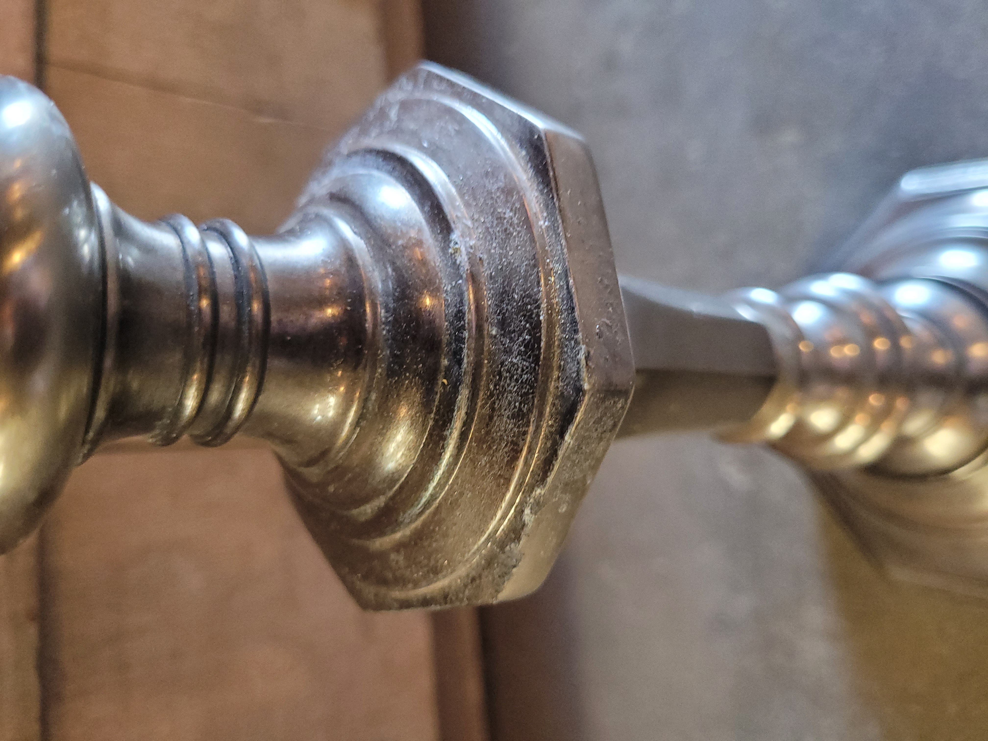21.5"x6.5" nickel plated brass lamp base. There are some rough spots on the finish, but his is a nice solid lamp base that will be great to customize!