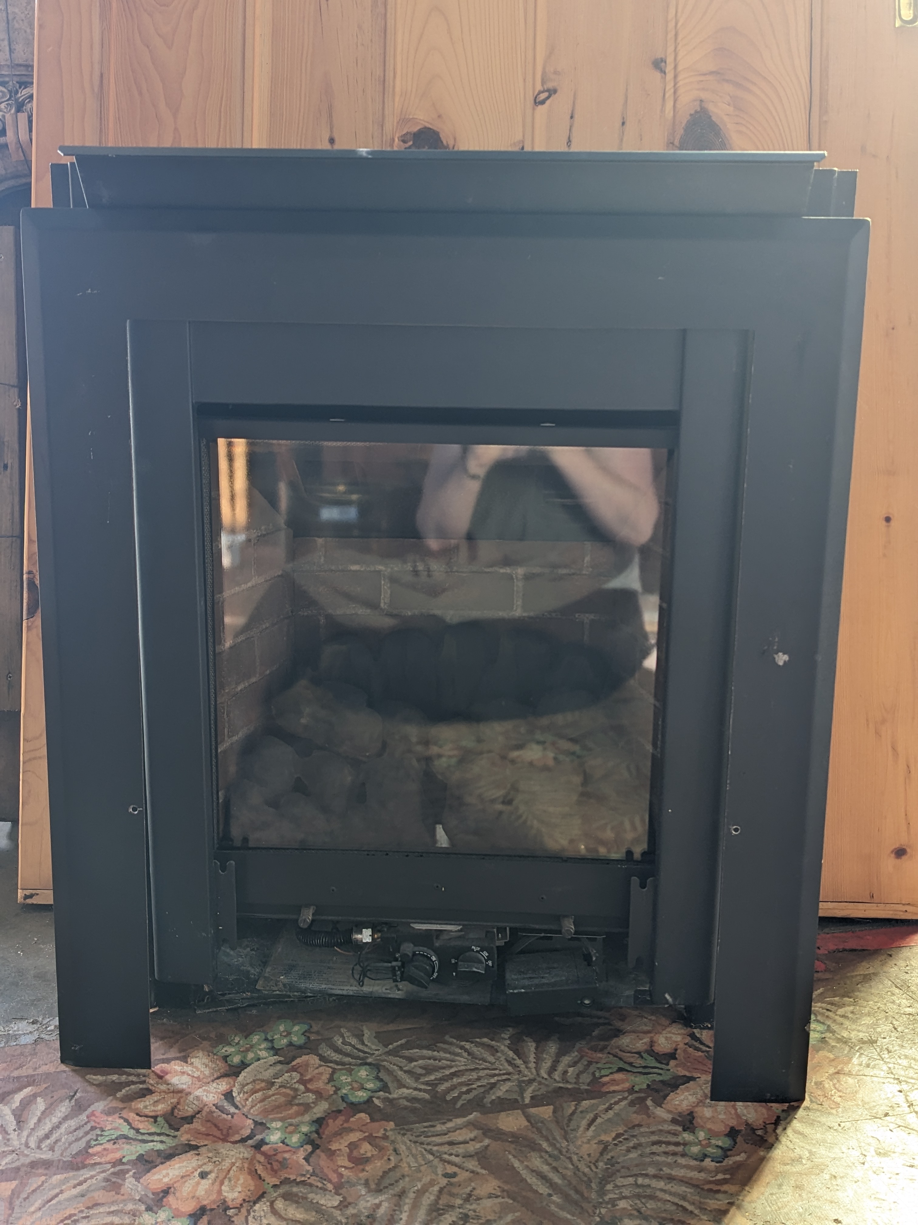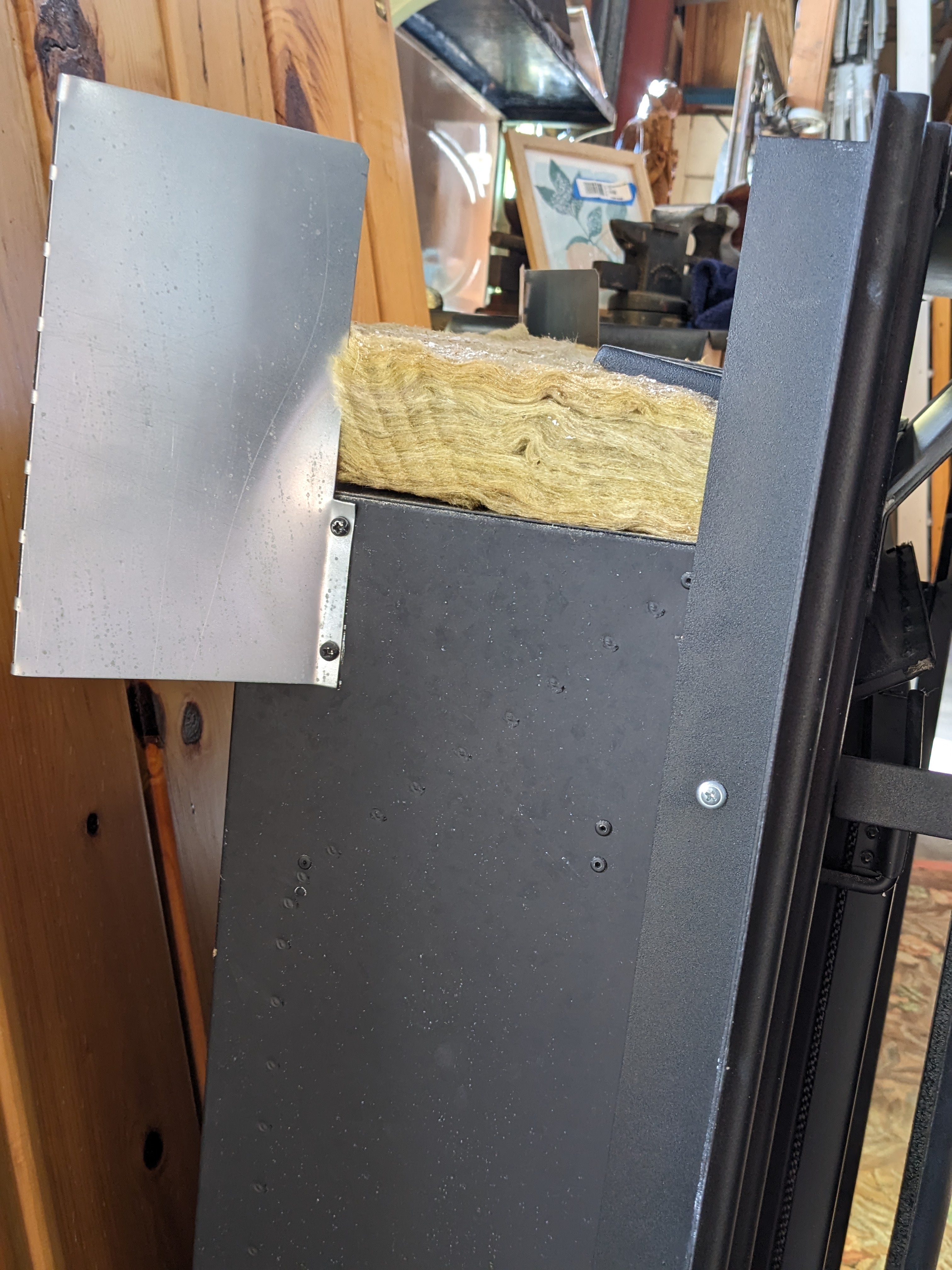 Beautiful plack metal and glass insert. It is approximately 27 inches wide, 32 inches tall, and 13 inches deep. Assembly is required, but well worth it.
