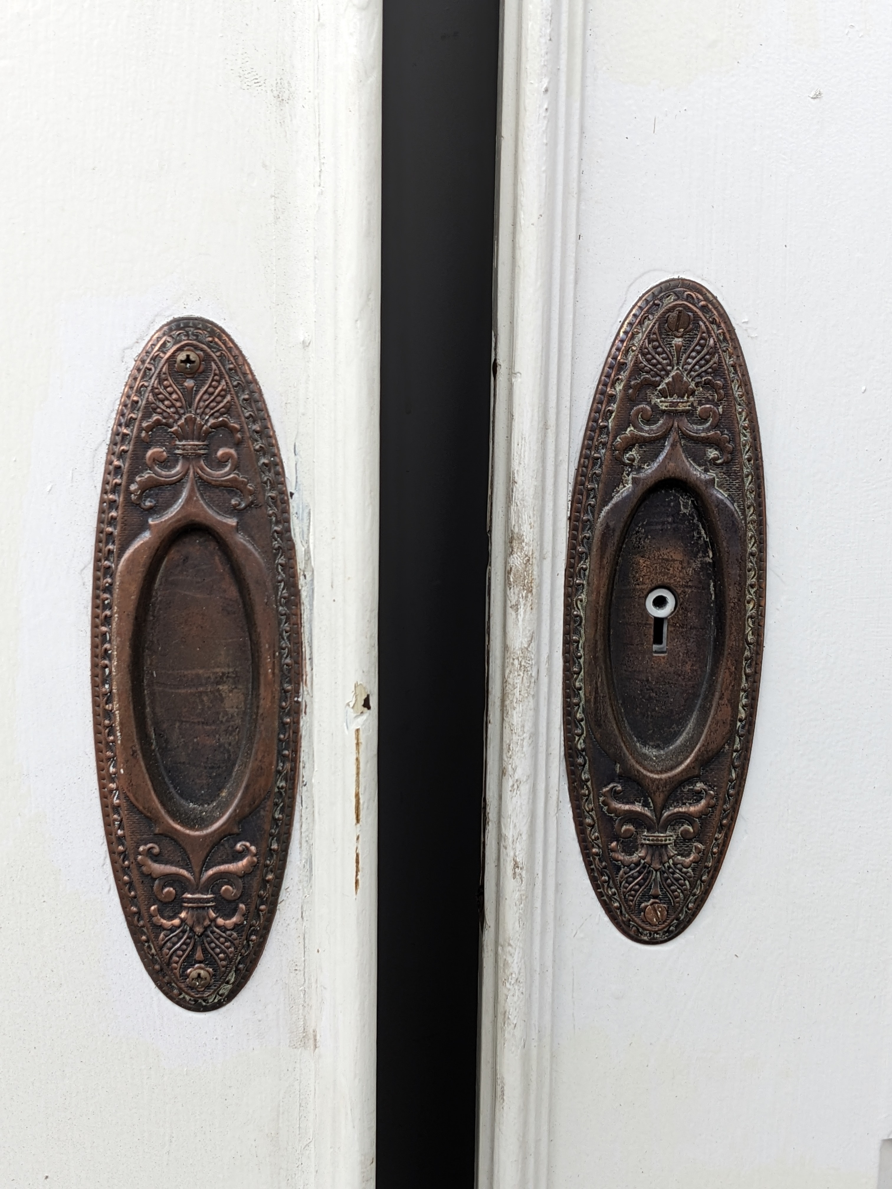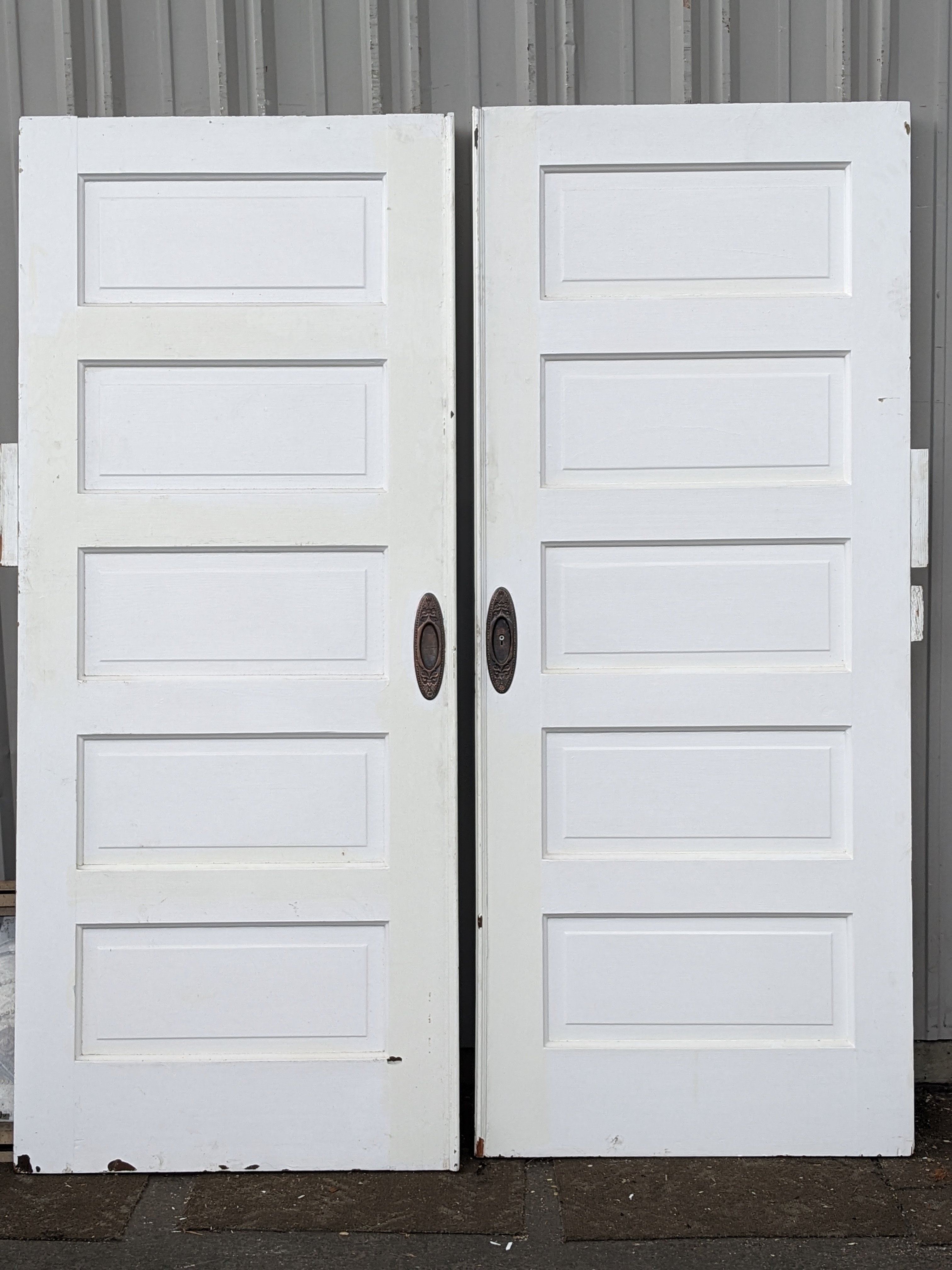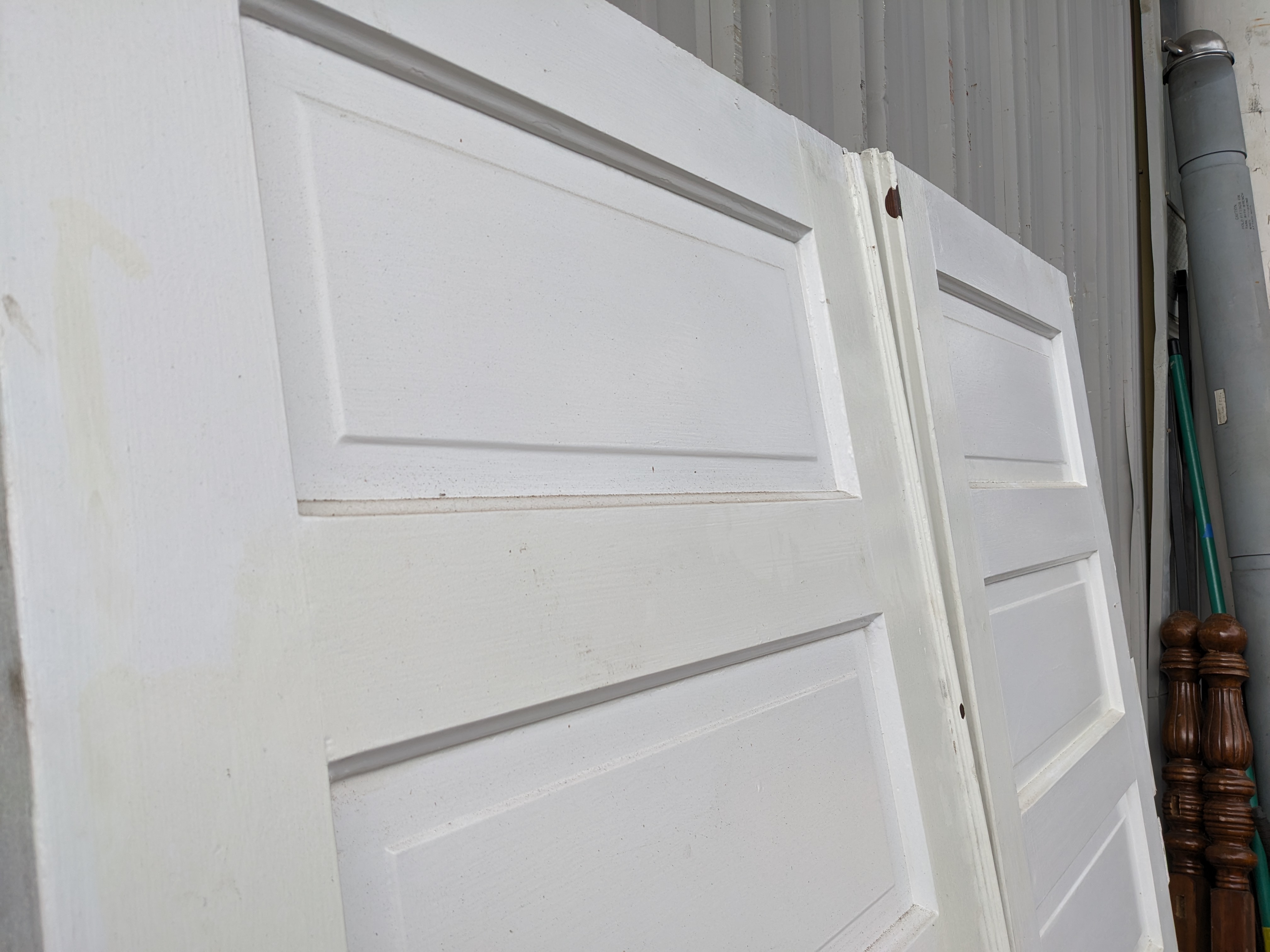 These doors are in fantastic shape and come with the original locks and door plates. Each door is roughly 33 inches wide.