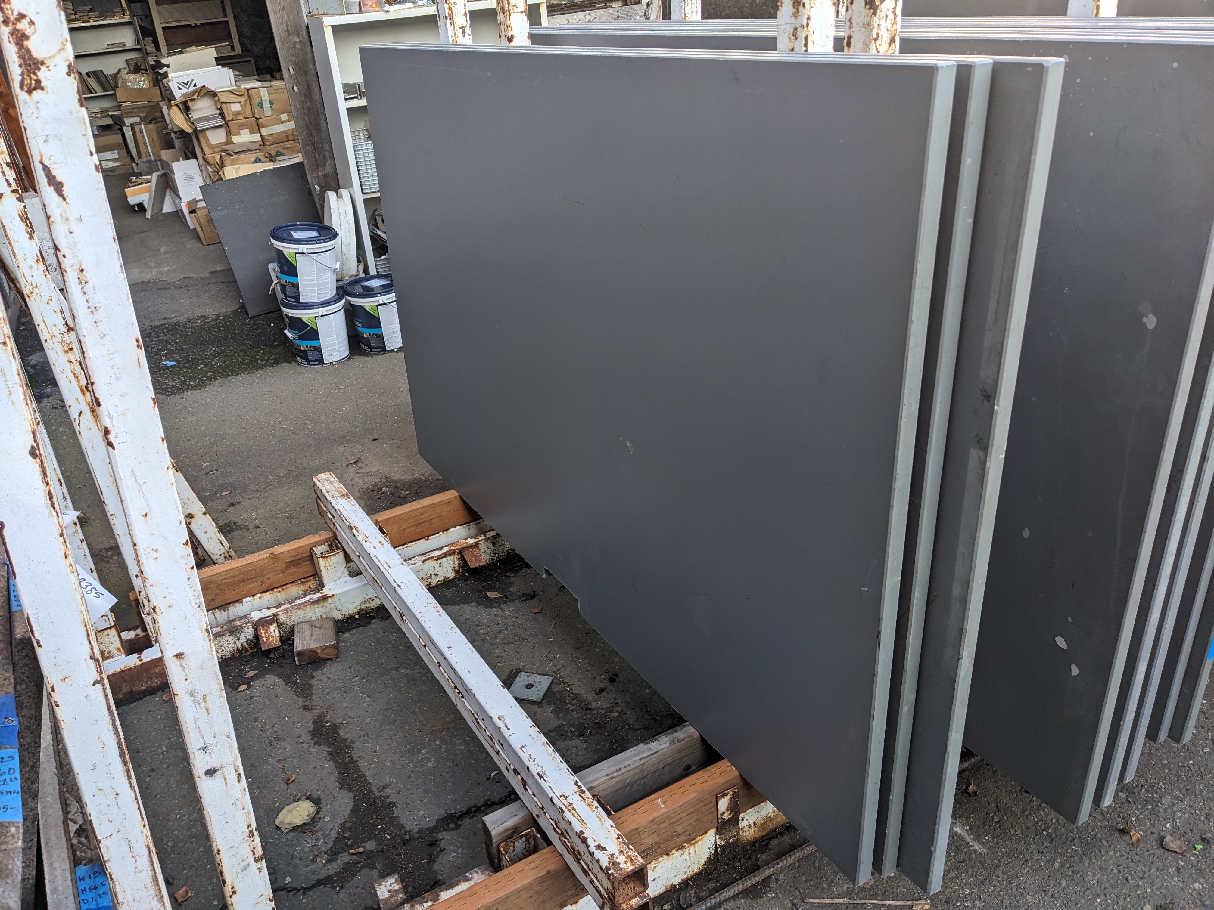 Being salvaged, they have imperfections, some stickers, and each piece has a small notch on the unfinished side (priced assuming that would be cut off).