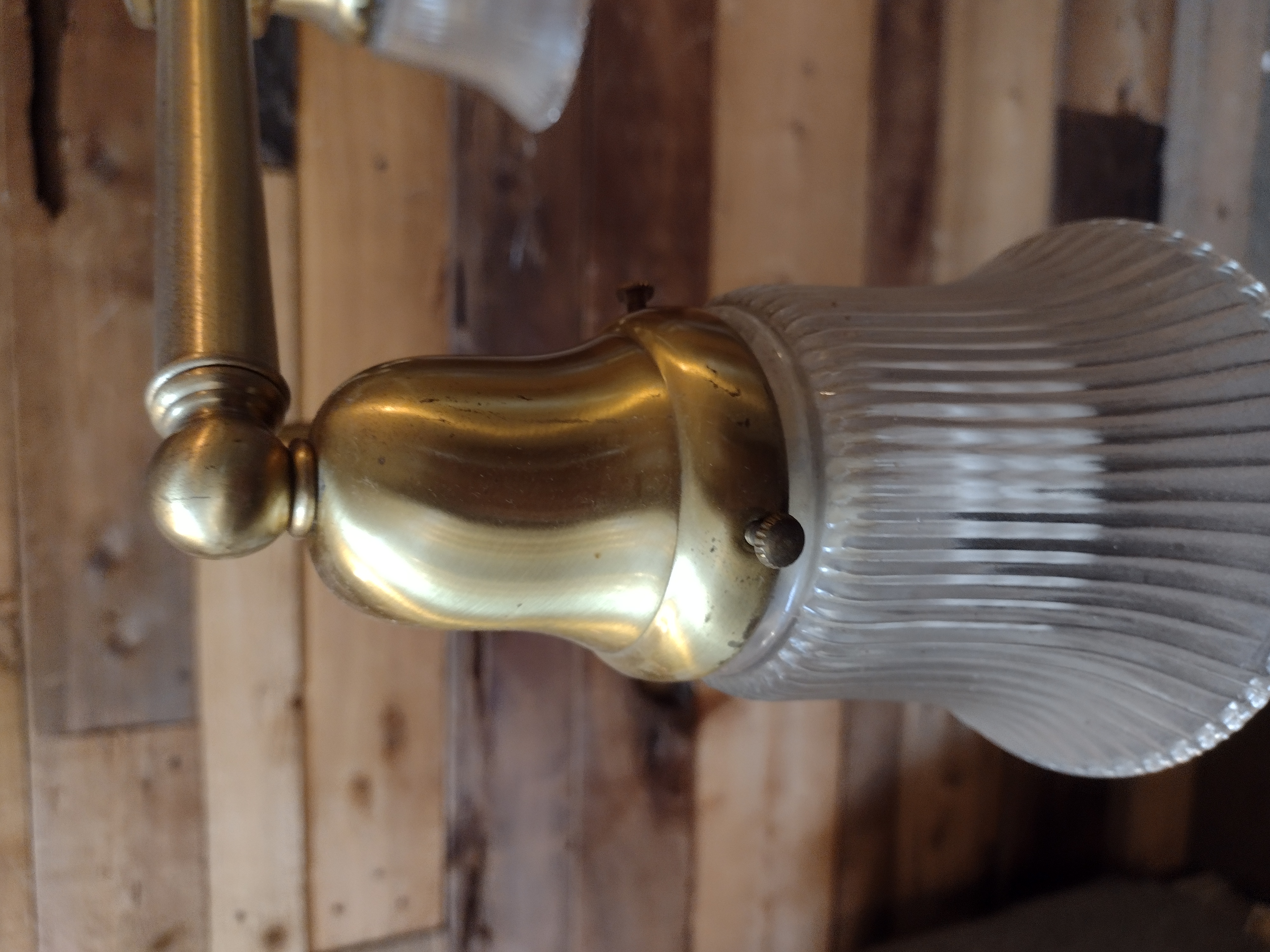 Craftsman fixture in good condition, ribbed shades are undamaged.