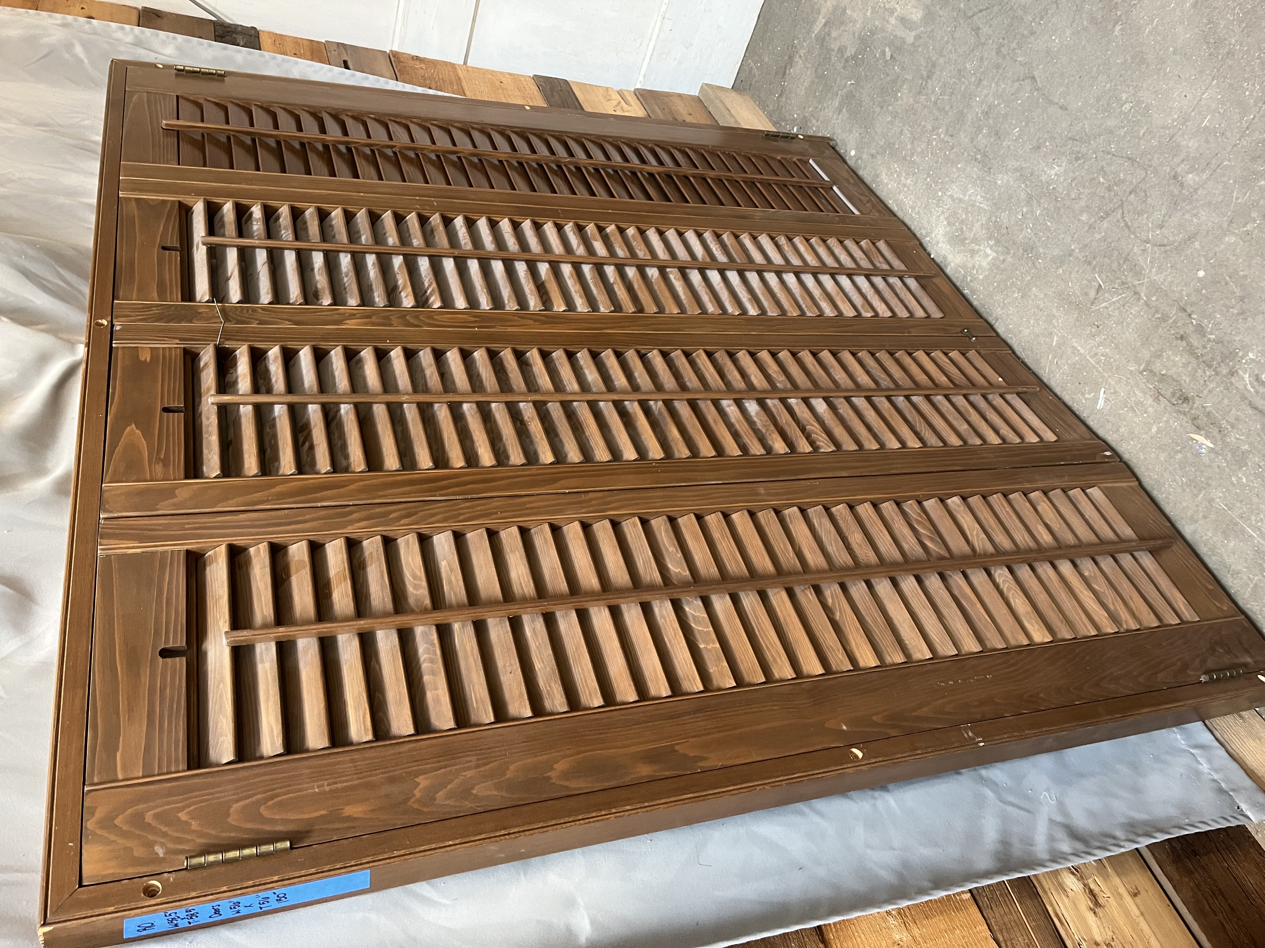 This Bi-Fold shutter system has 3 trim pieces and is ready to install. Good condition with only a few chips from use and a missing bottom trim.