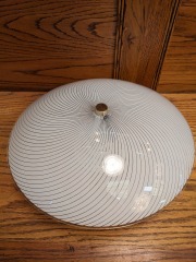 Cute white metal nautical pendant light with a caged light. 14" diameter shade and 36" from mount to bottom of glass. The wiring in this is modern and should be ready to go! An adorable light for a great price!