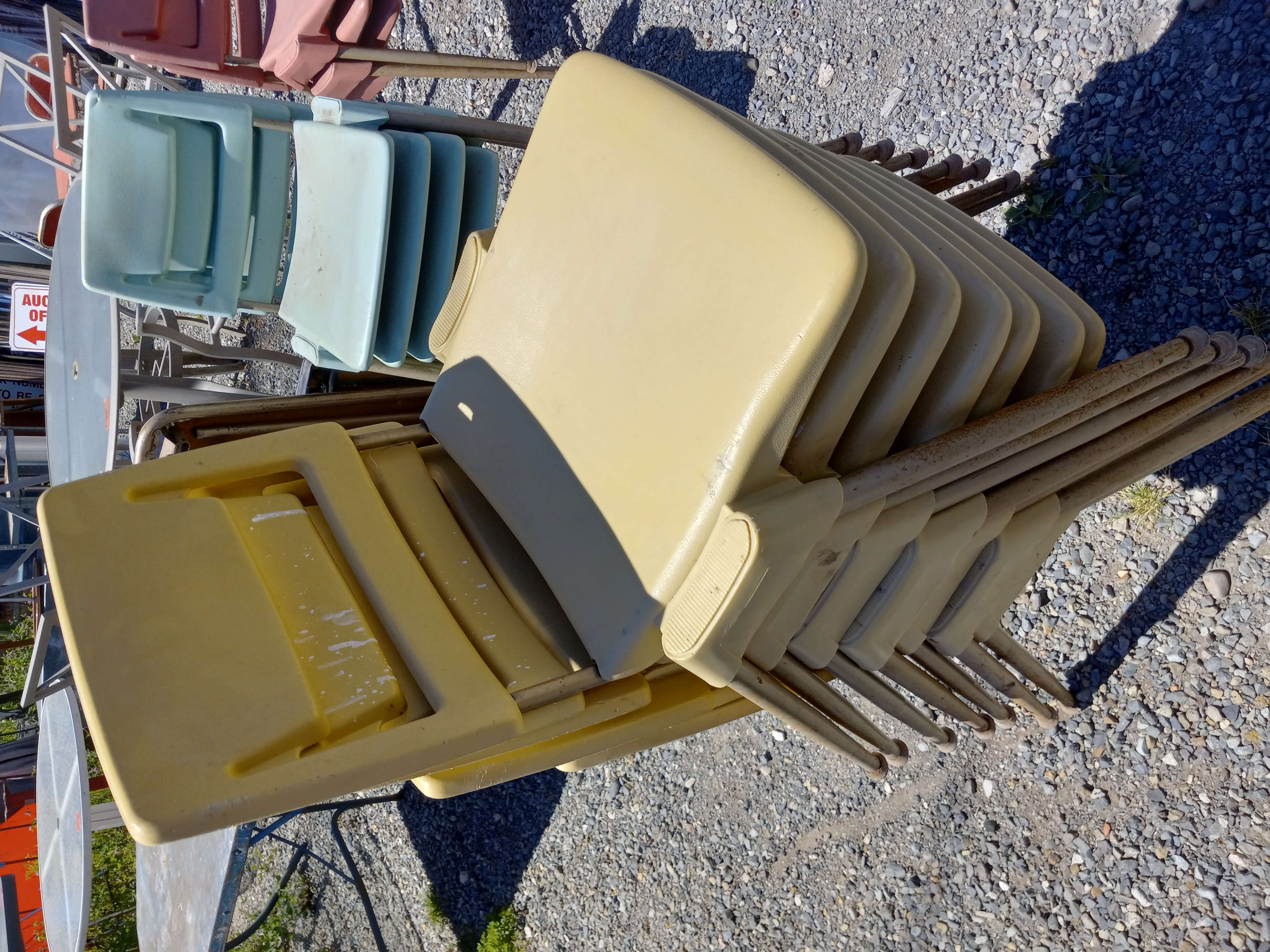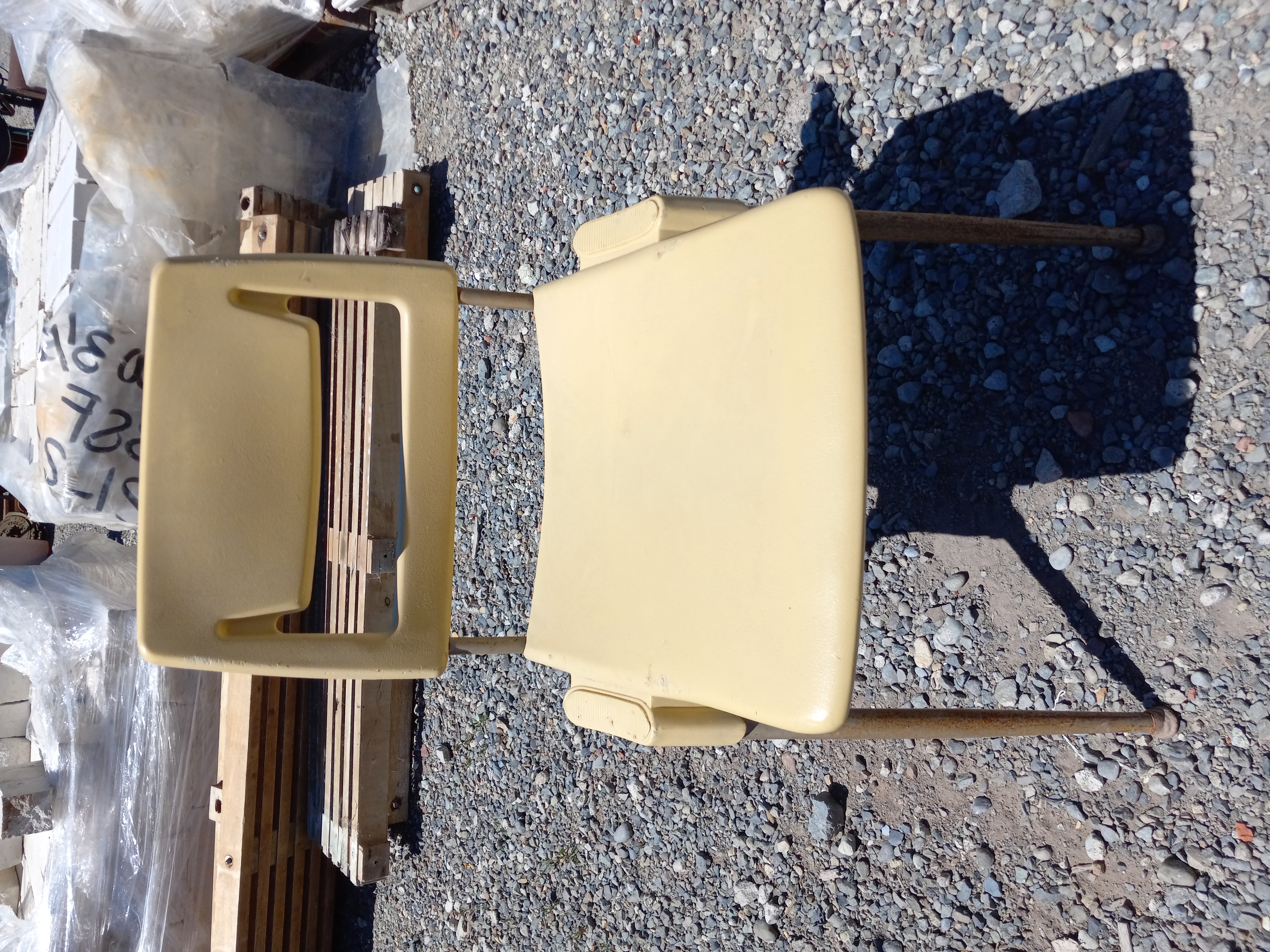Vintage plastic chair from the 70s. Made of molded plastic with metal legs. Some scratches and signs of wear, but otherwise functional. Work well for indoor and outdoor use, stackable. Priced per chair.