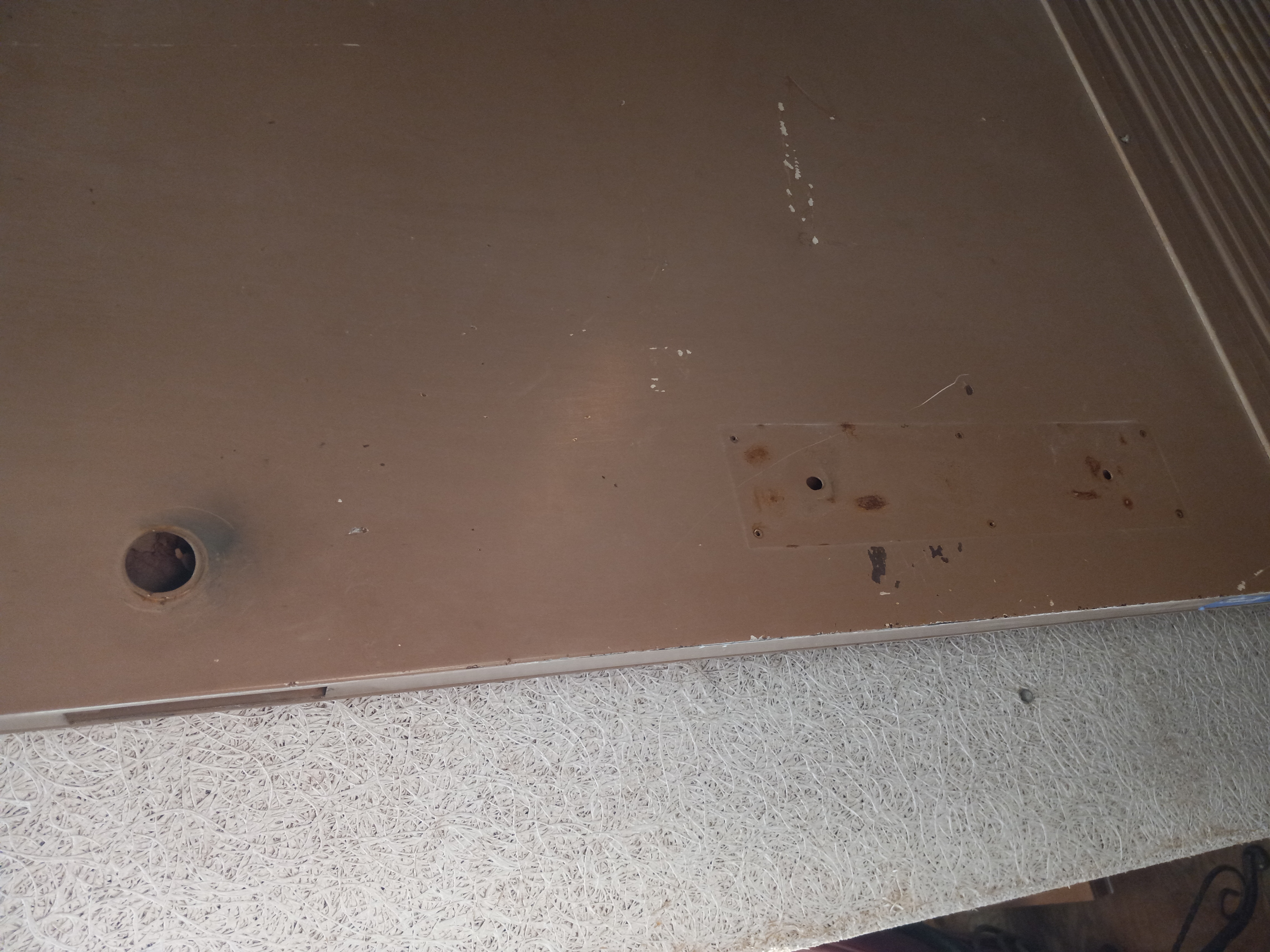 Old heavy duty exterior steel door with a lot of wear. Will take some new hardware and considerable work to be made functional again. Measures 36.25 inches wide and 83.25 inches tall.