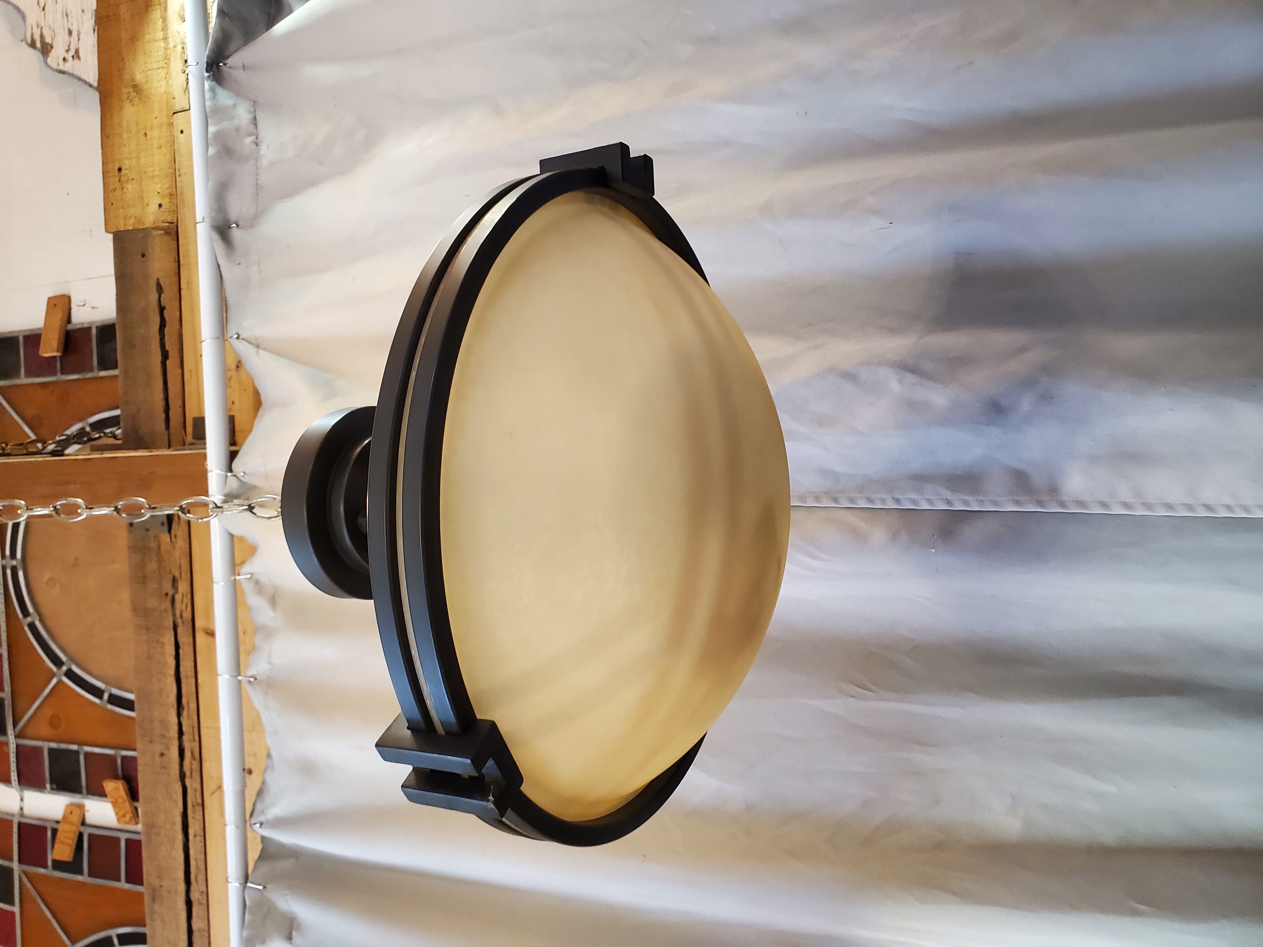 The shade has a yellow tint to it and a grain-like pattern.