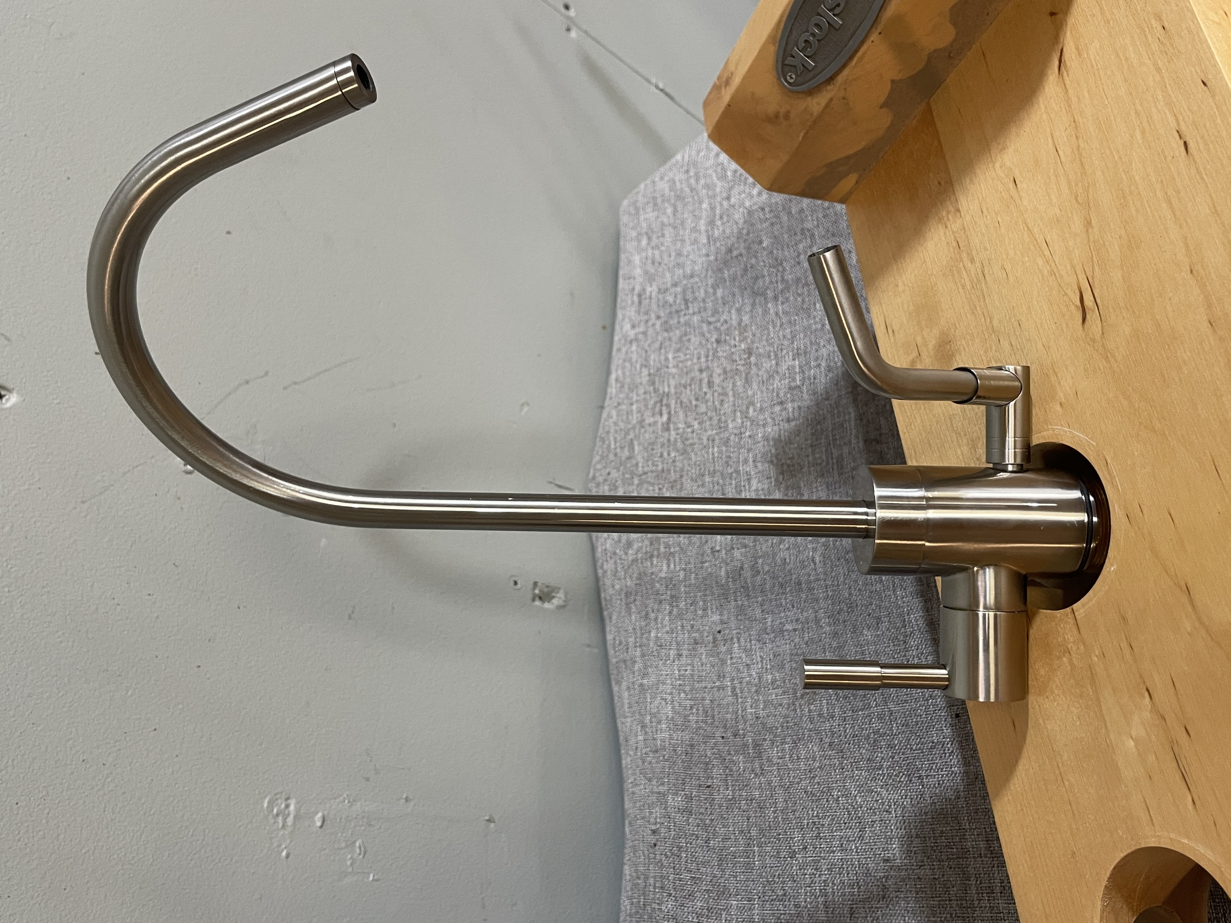 In good condition. Satin nickel finish, with a hookup for an ionizer machine.
