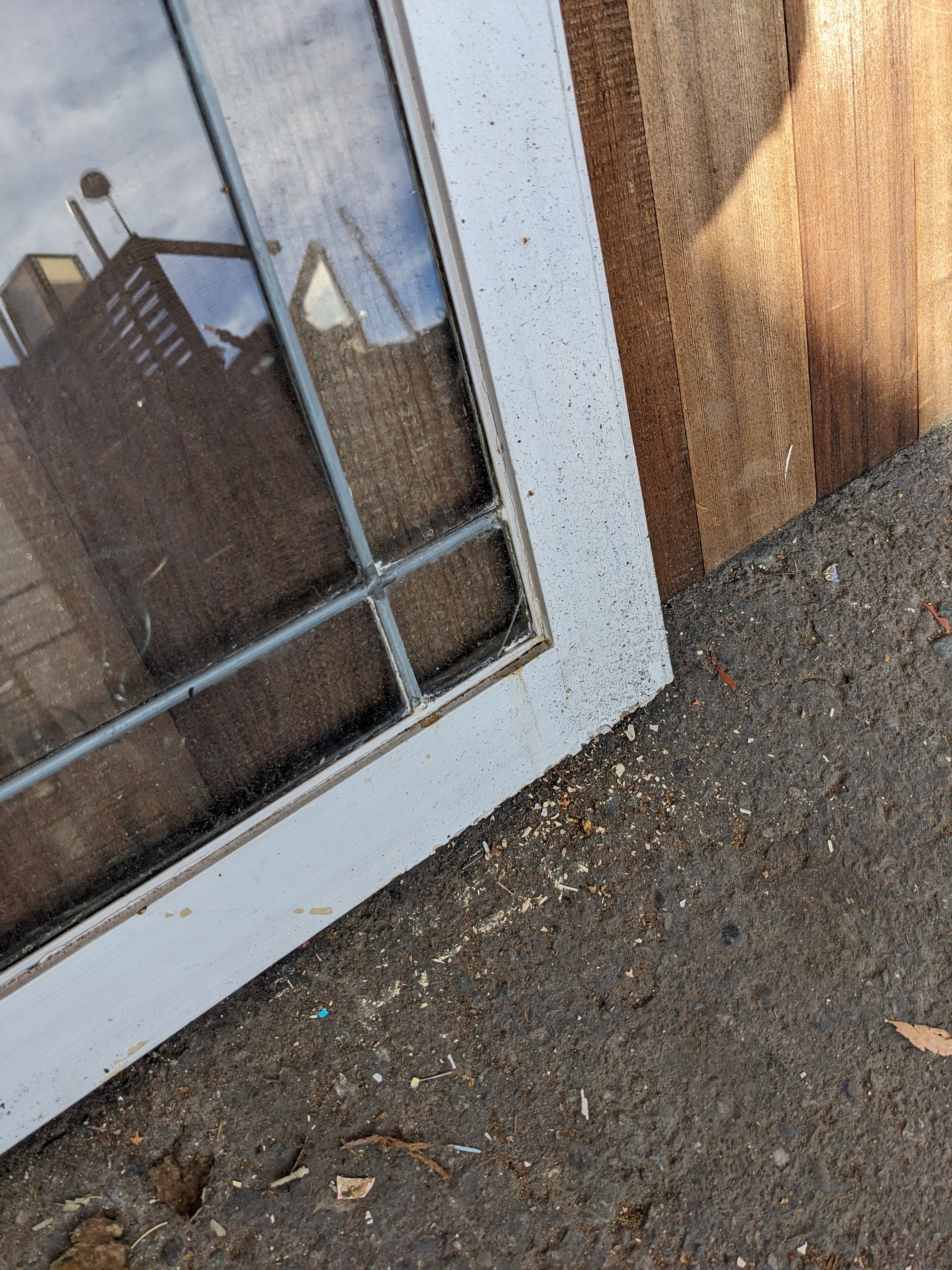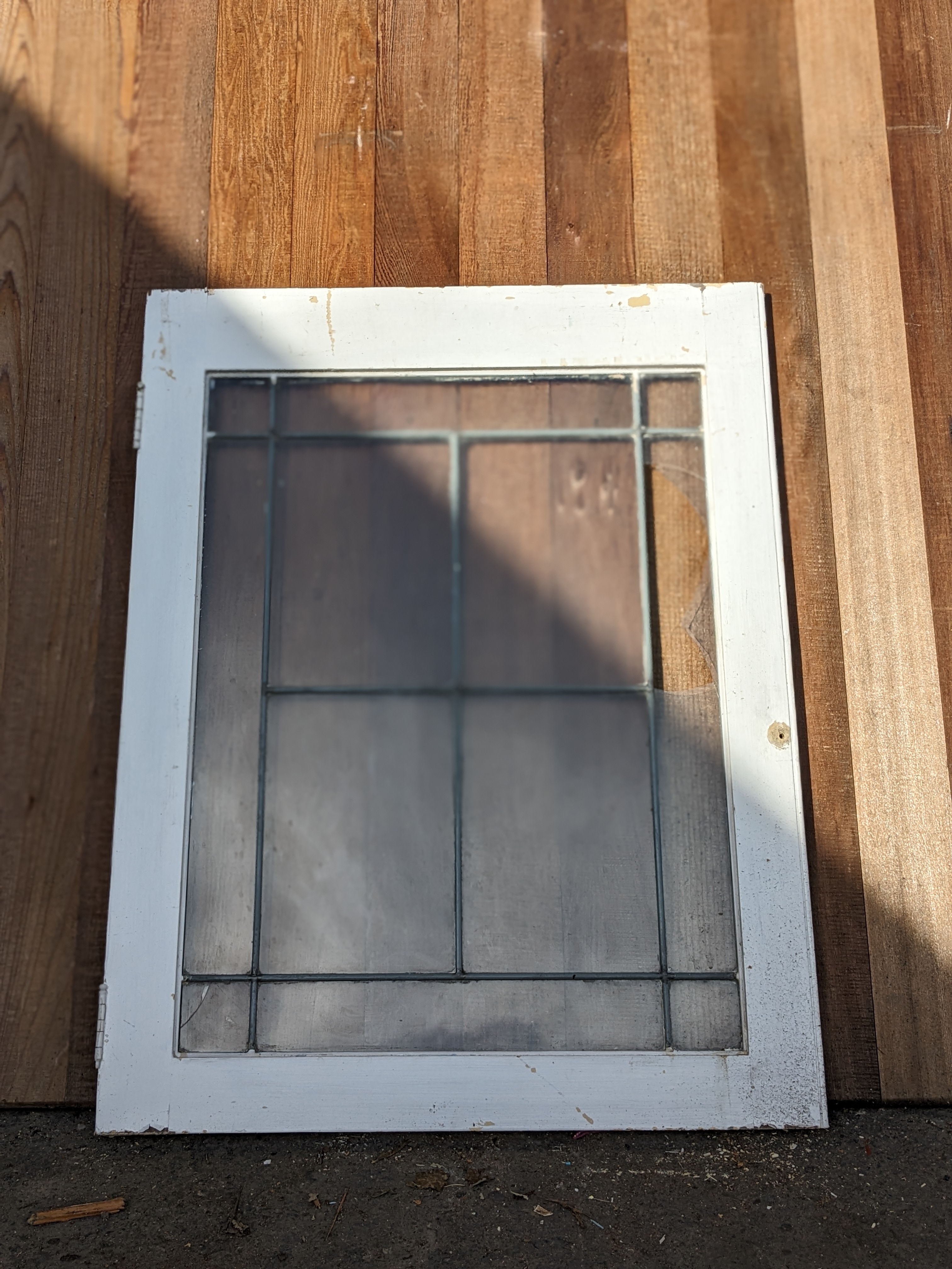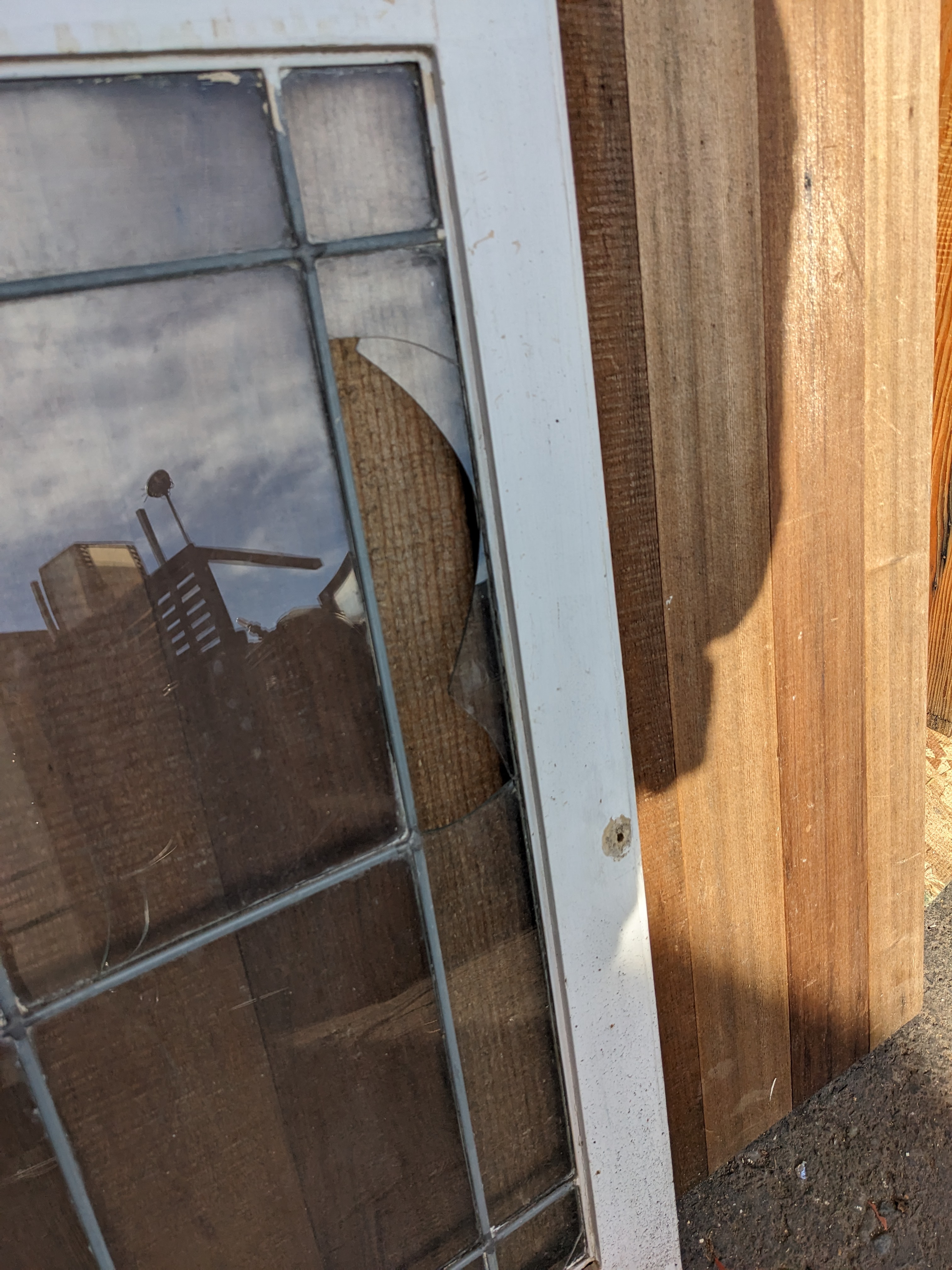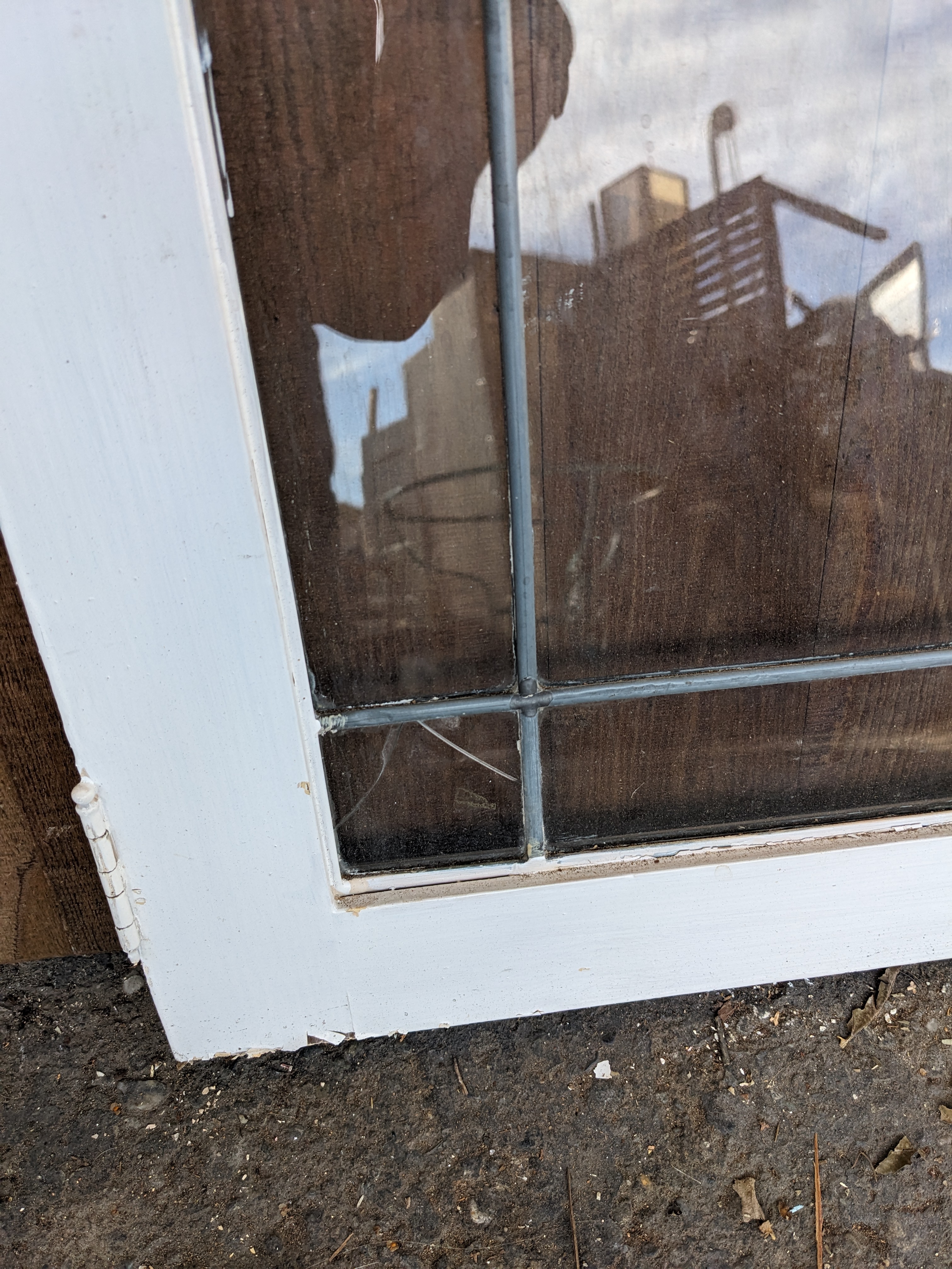 There are 3 broken panes in this cute cabinet door...