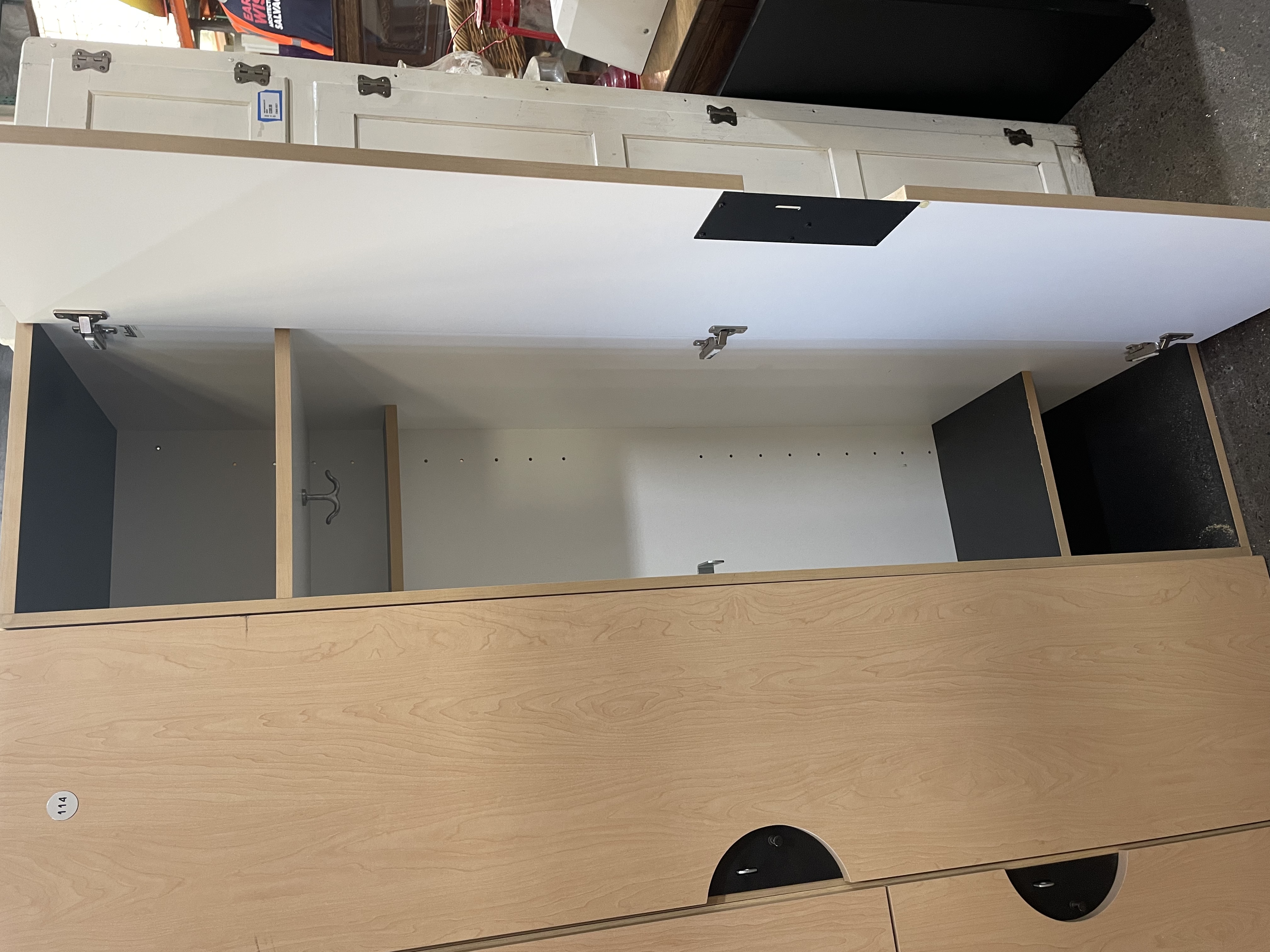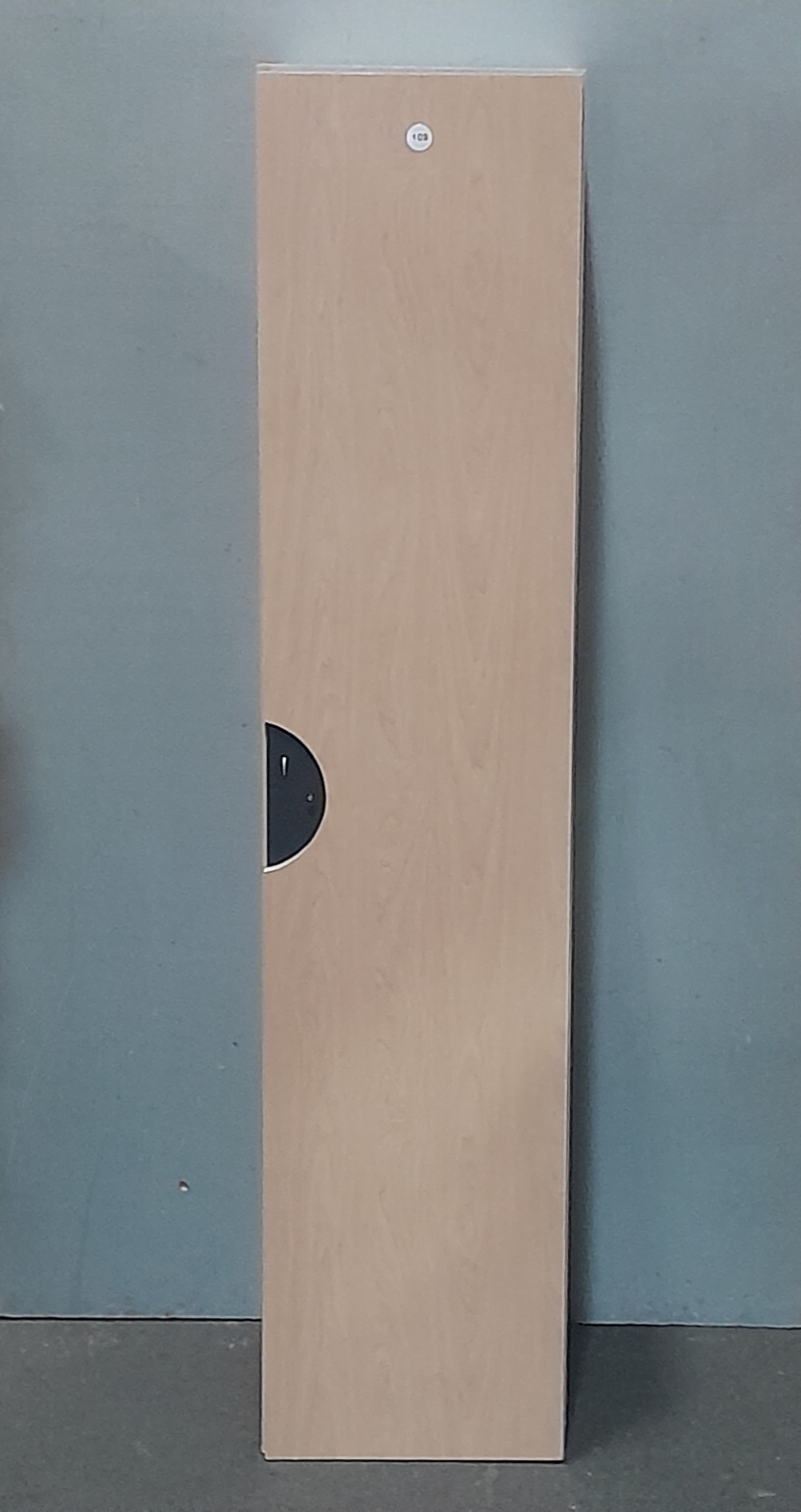 In good condition. This locker is sturdy and tall enough to store a wide variety of garments and other items. .75 in veneered plywood box.