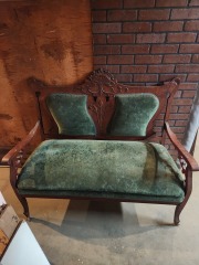 This pump organ looks amazing for its age, but as it is now it does not work. We're unsure exactly what it needs, but the foot pedals are not connected to anything right now and are lying flat. It was sitting in storage for a while, so there is not a lot of wear on the wood. It is also missing a black key and another is sitting loose. It also seems to be missing a wooden strip above the keys. All in all, it could be a great find for piano lovers or musicians!