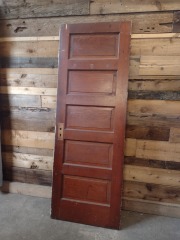 Wood 5-panel french door set in fair condition, with some tape left over from its previous home.