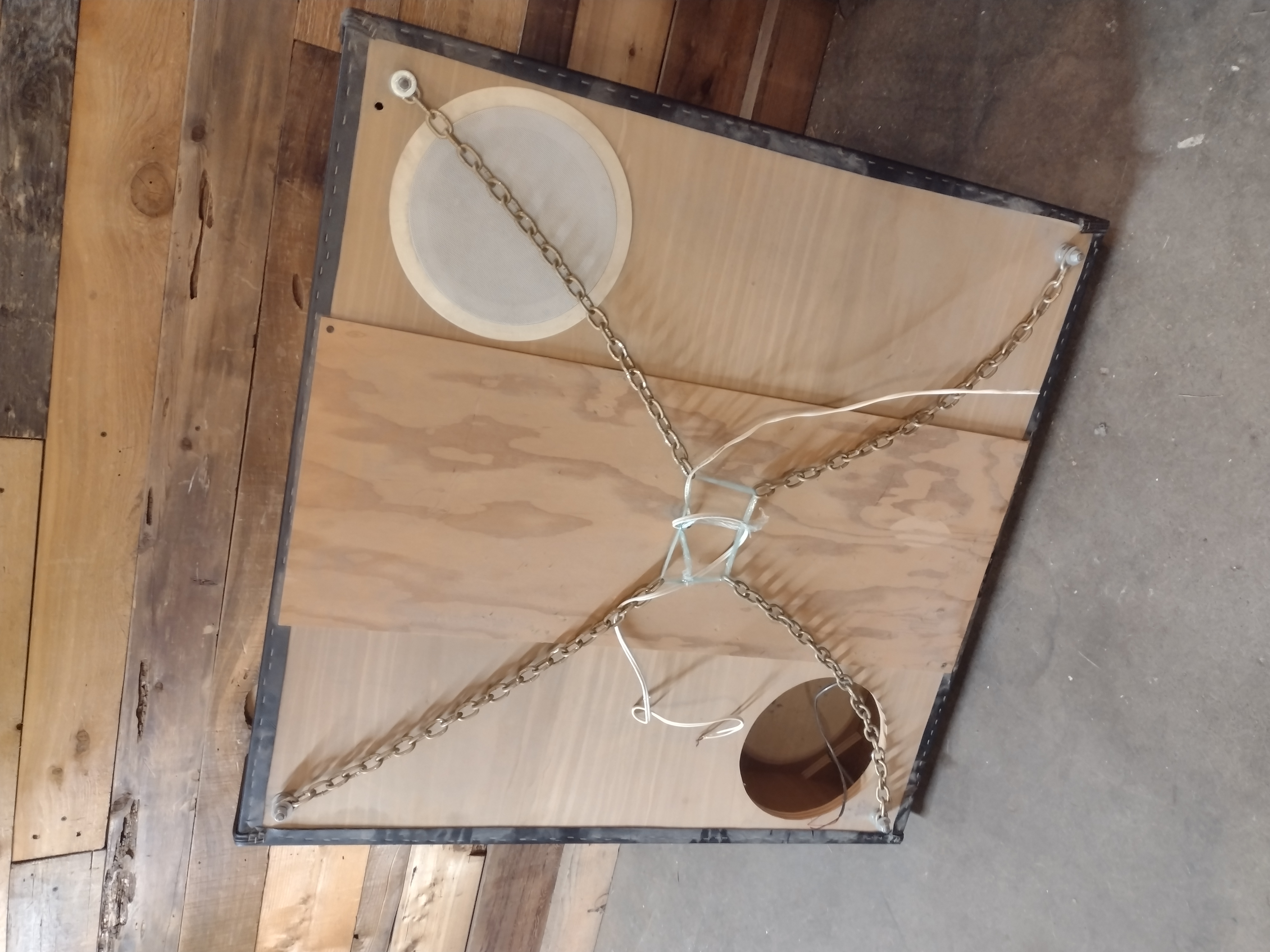 Quite the statement piece, held aloft by four bolts and chain.