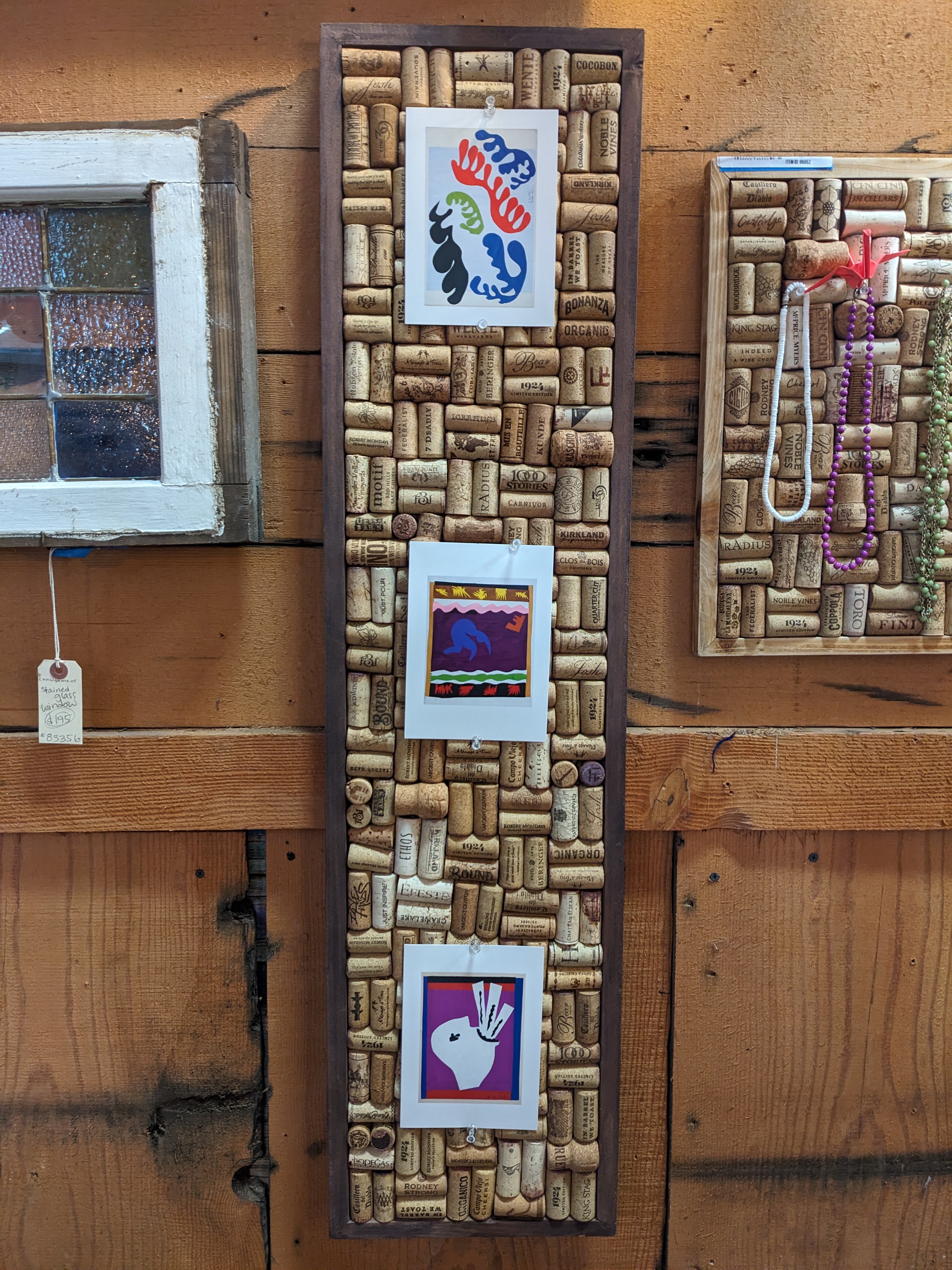 A fun and functional piece of reuse art made by one of our very own employees. Perfect for pinning up grocery lists, movie tickets, or any of those little scraps or keepsakes you can't let go yet. Free up surfaces, store stuff on your walls!