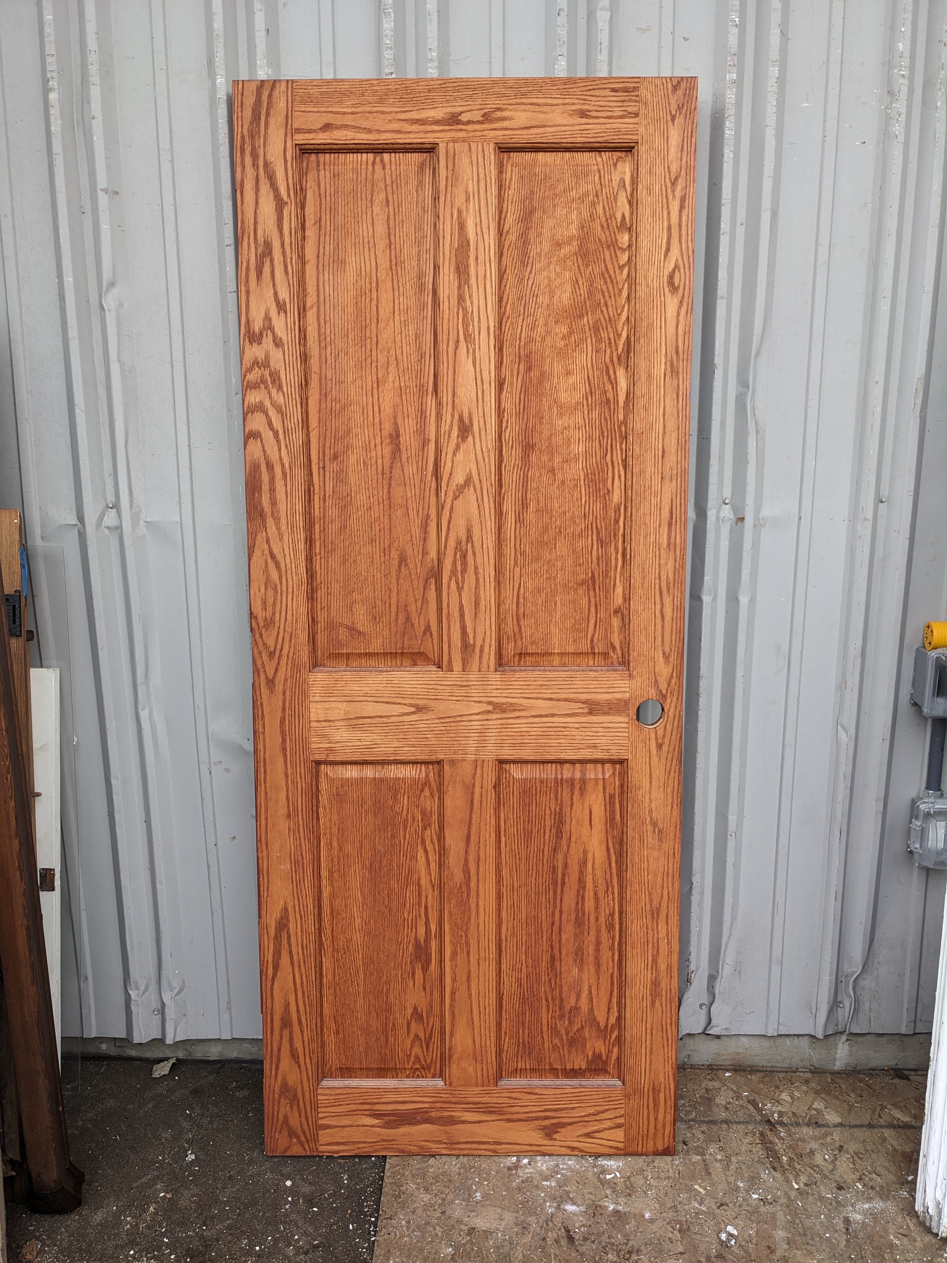 Beautiful condition, just a few minor scratches. Right Swing, no paint, just wood stain.