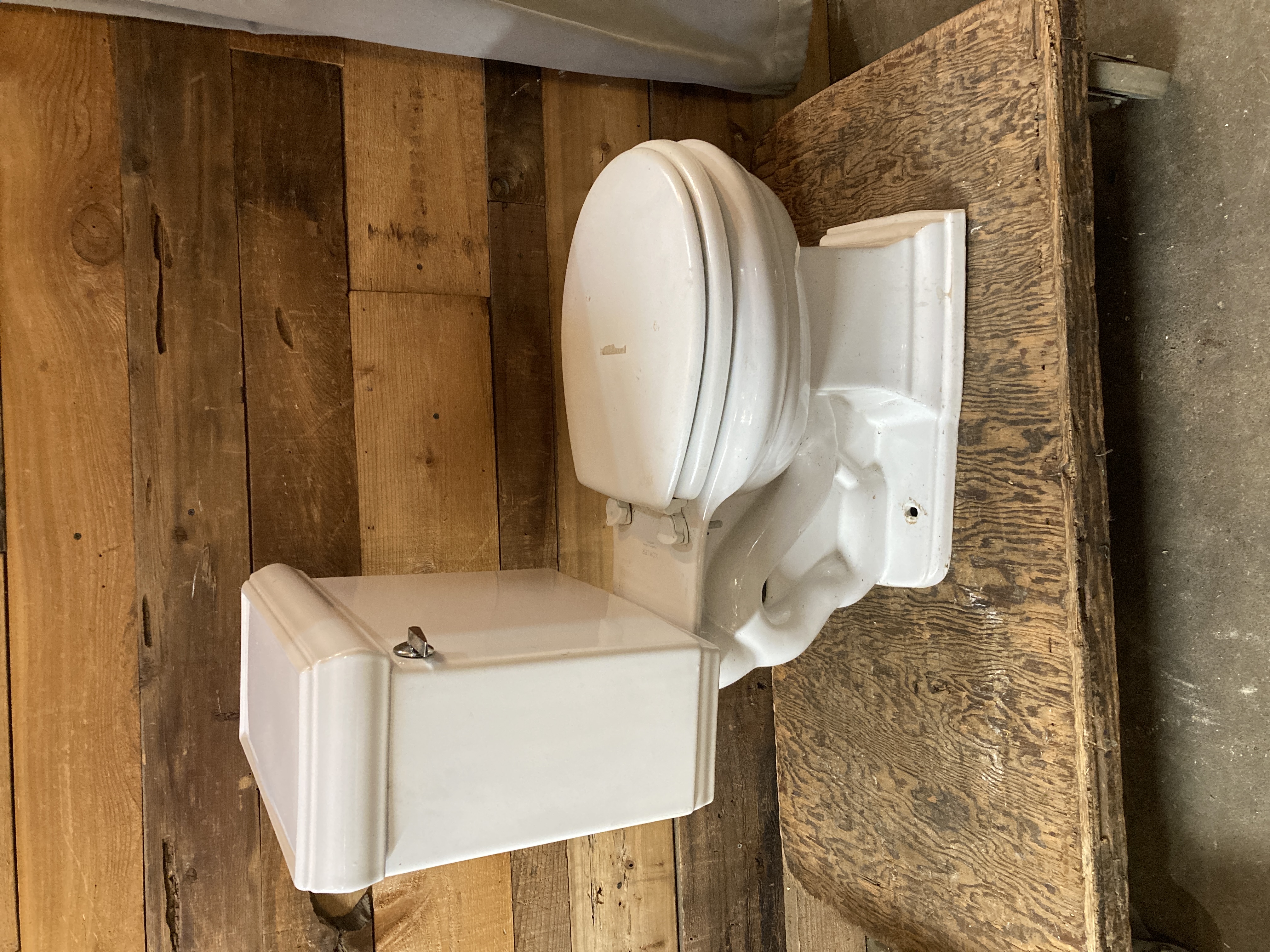 Kohler toilet with 1.6 gallon flush. Needs a good cleaning but in good condition otherwise.