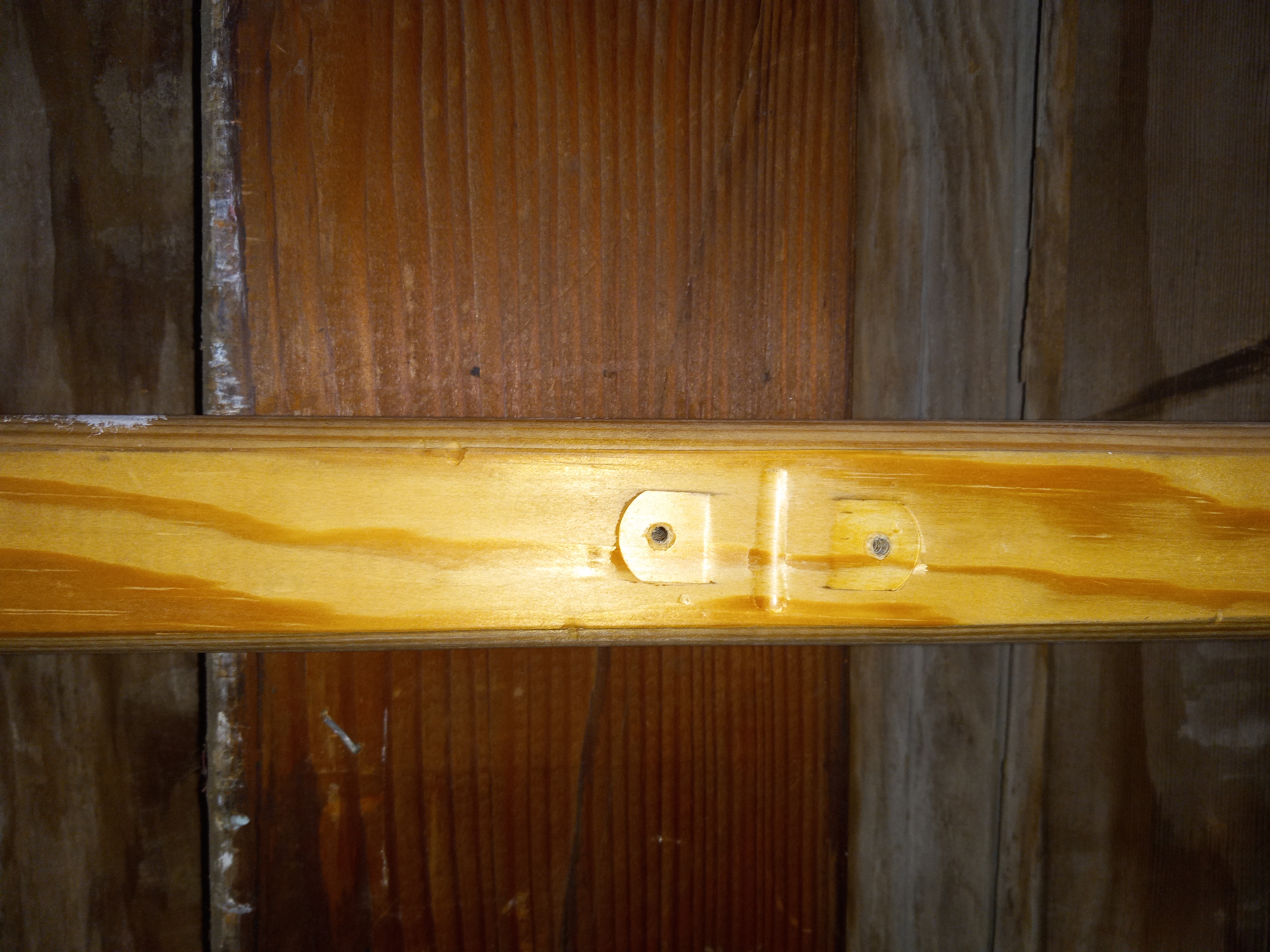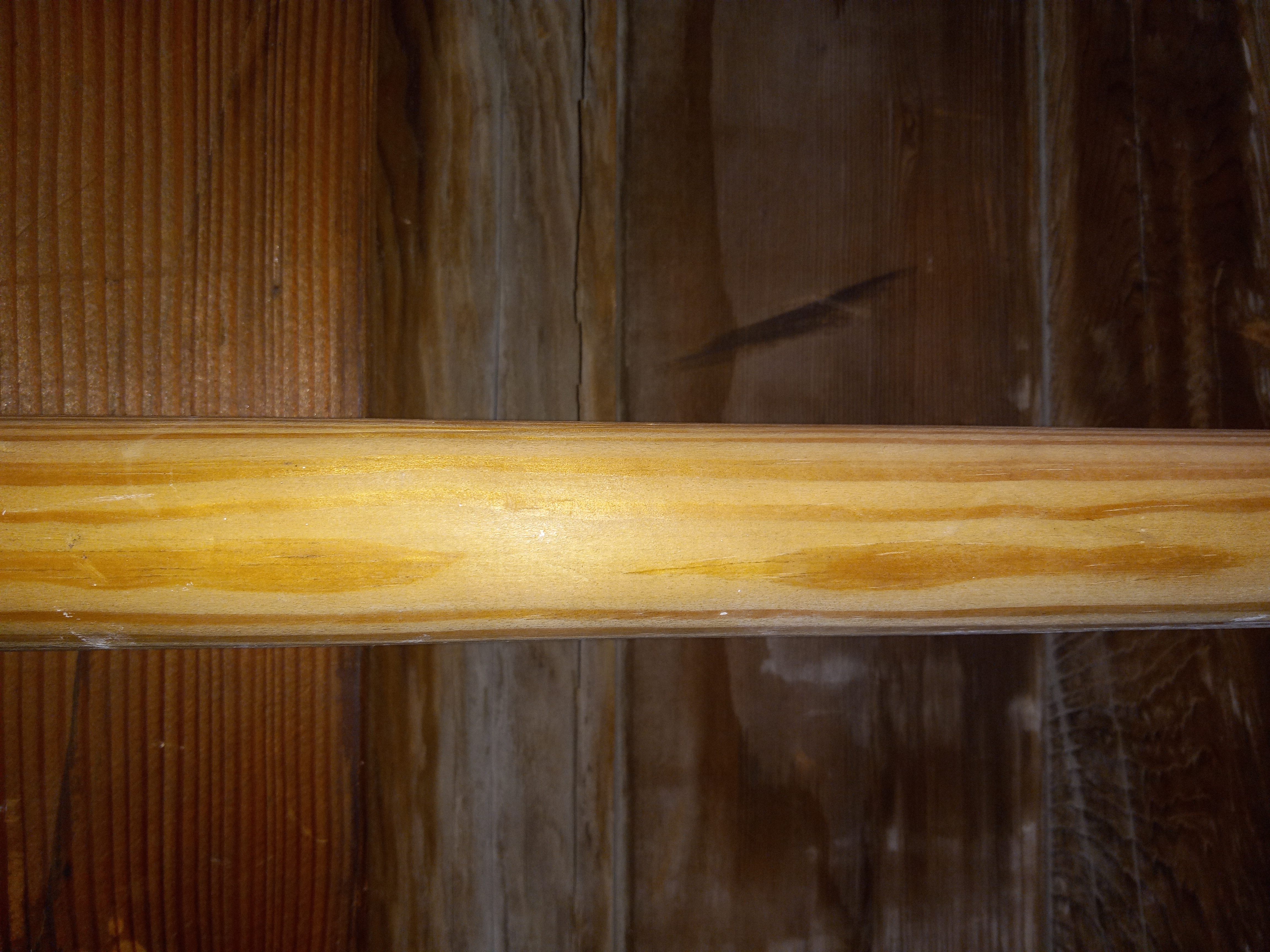 In fair condition Fir Wood Handrail. It measures 101 inches tall 2 inches wide and 1.5 inches depth