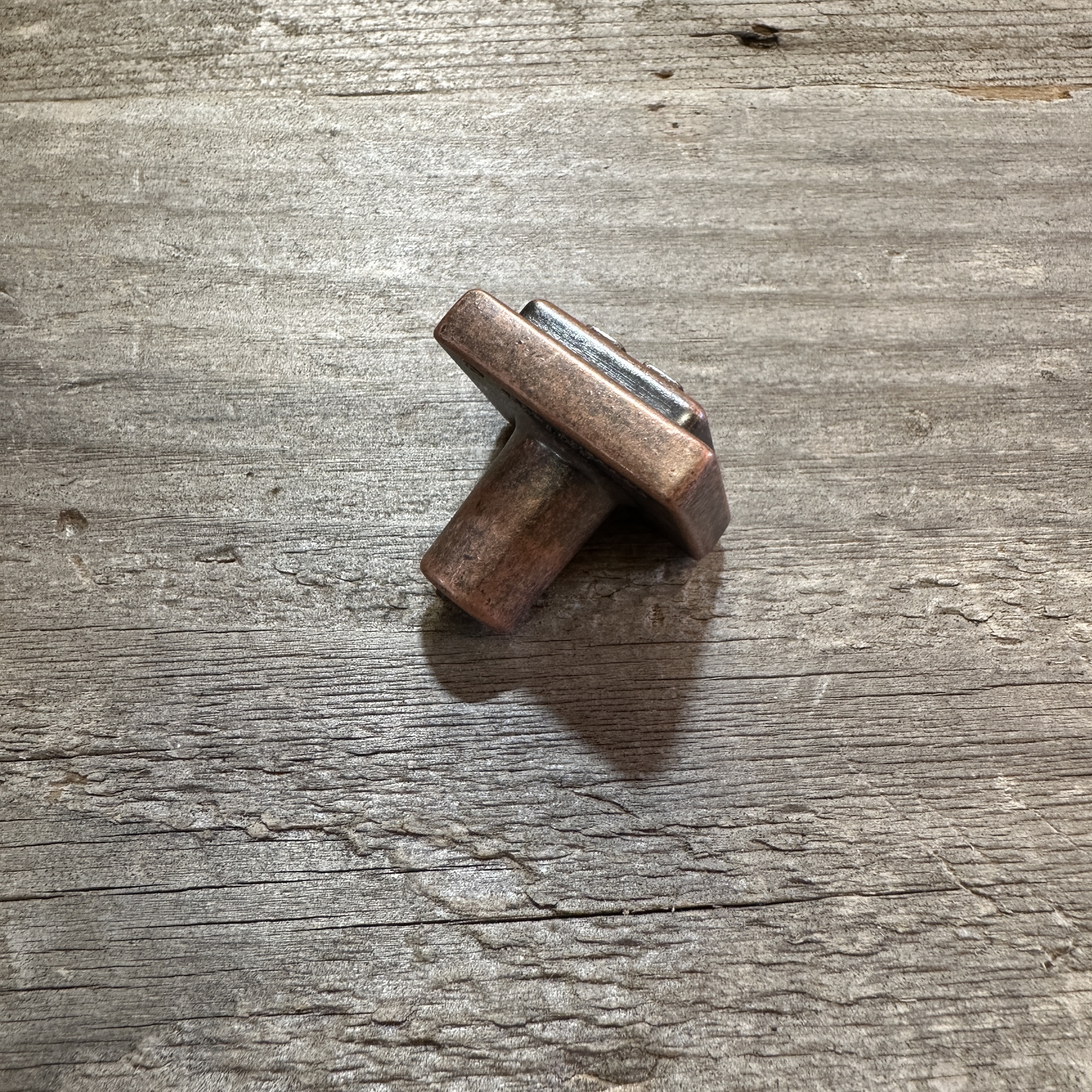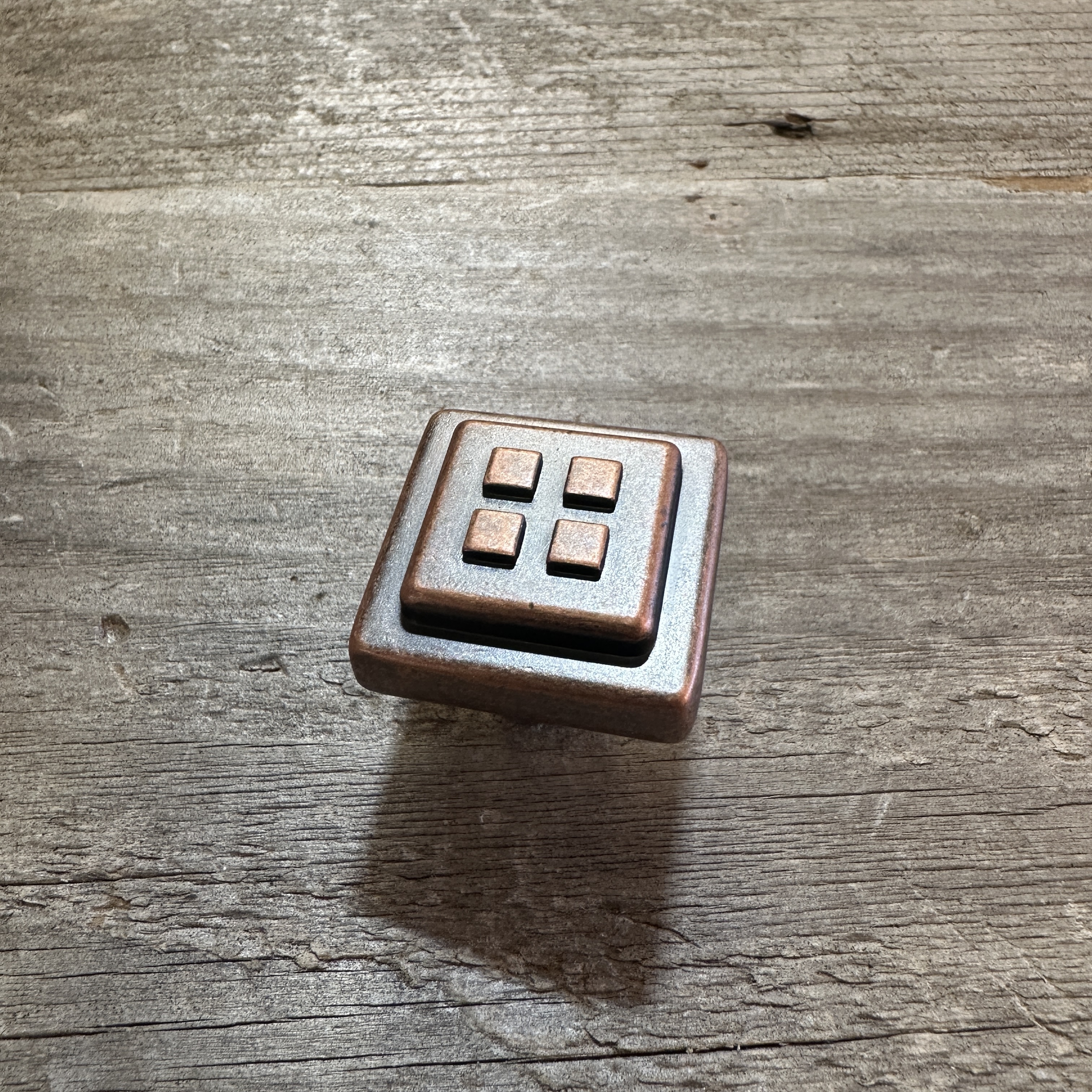 New Amerock 4 Square knob in weathered copper.