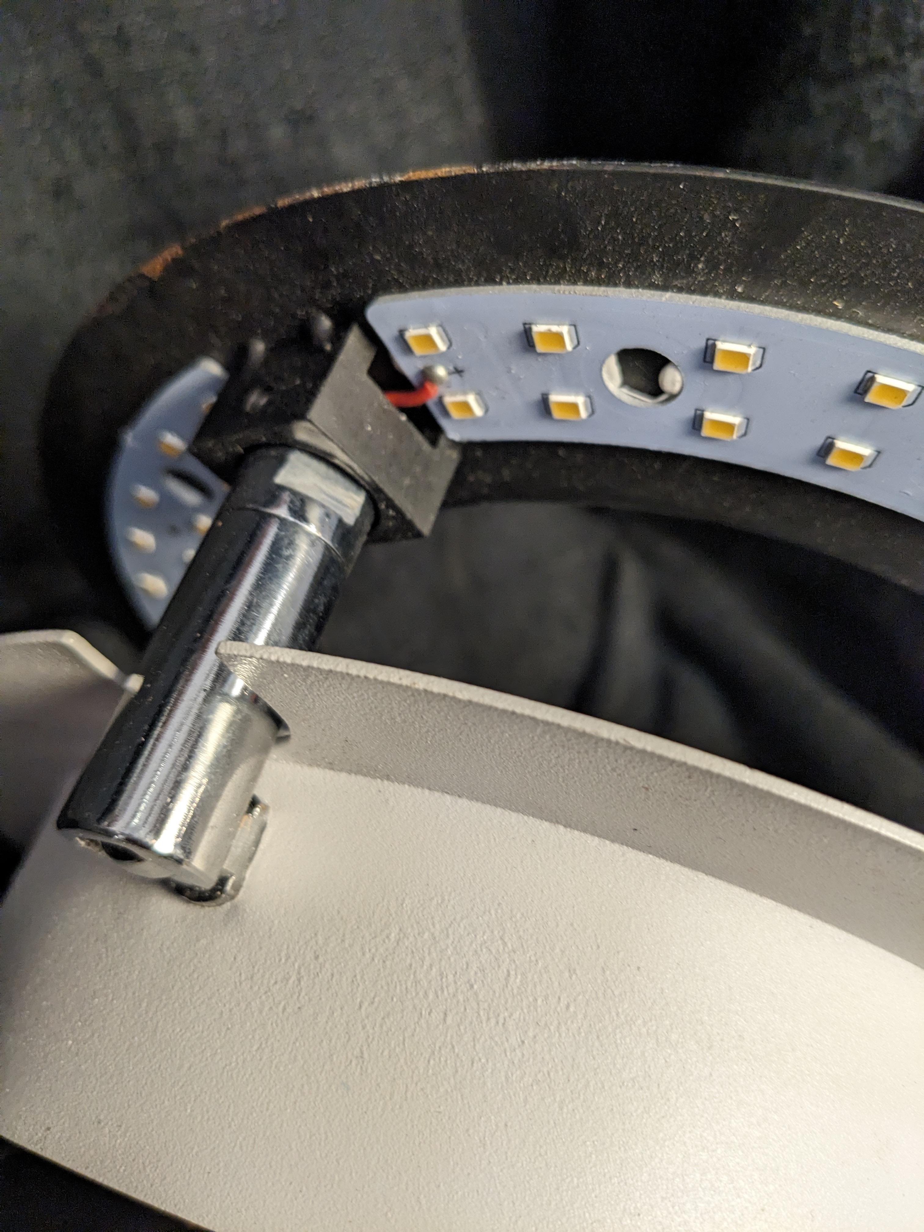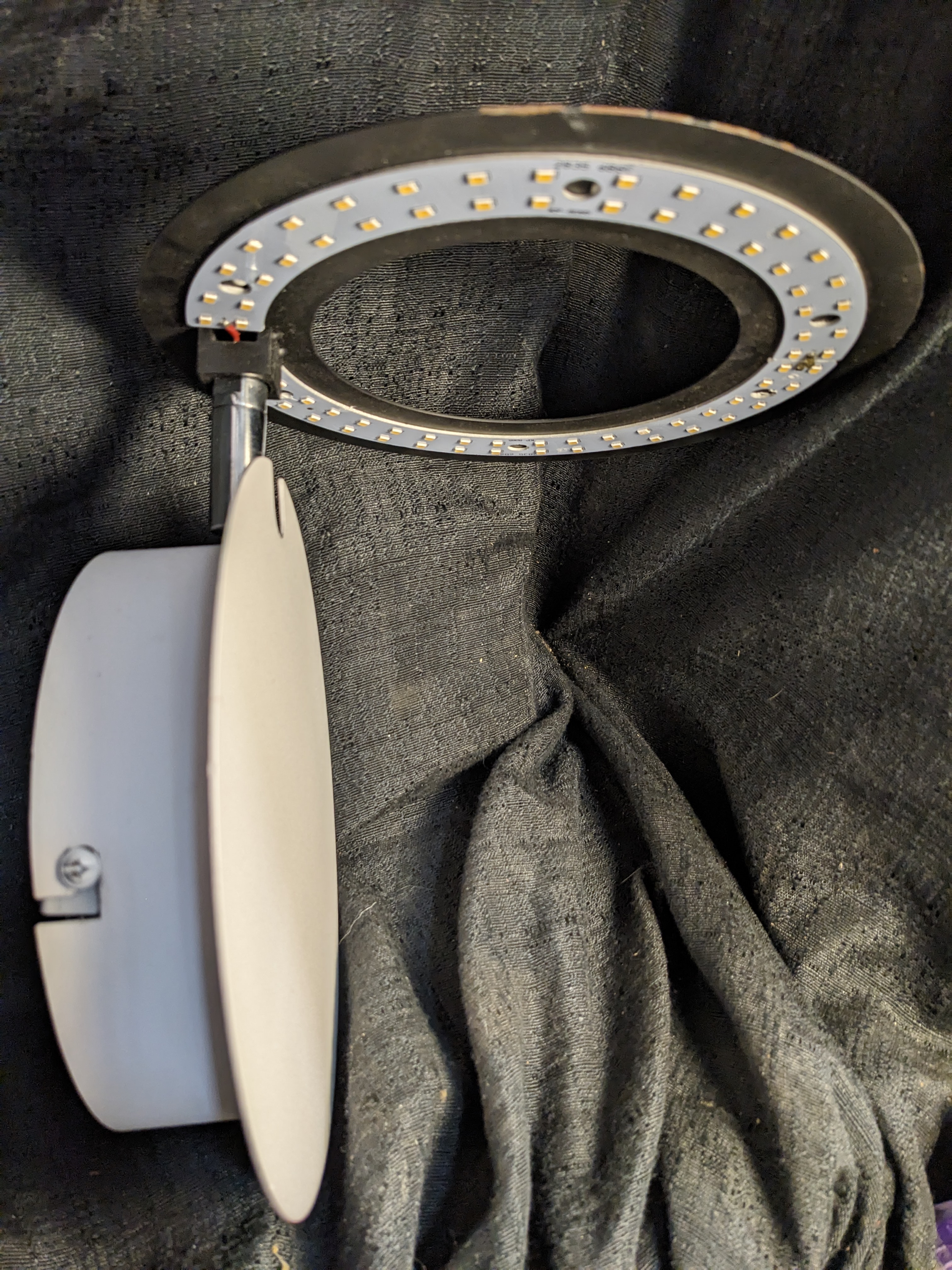 A wall mounted light that is articulated. The purpose is not obvious to me as there is no light bulb to change or need access to. Maybe to aim the light differently?