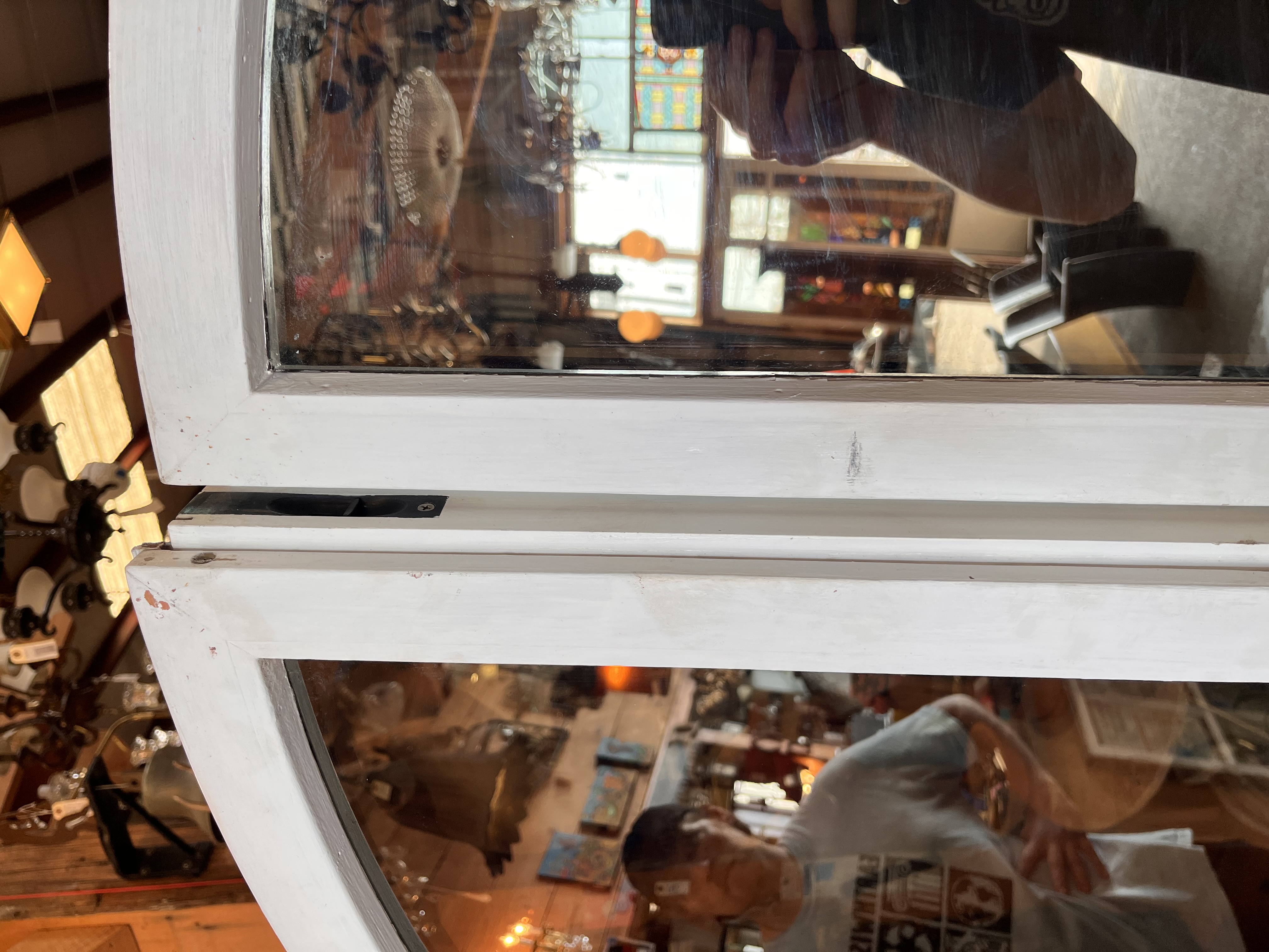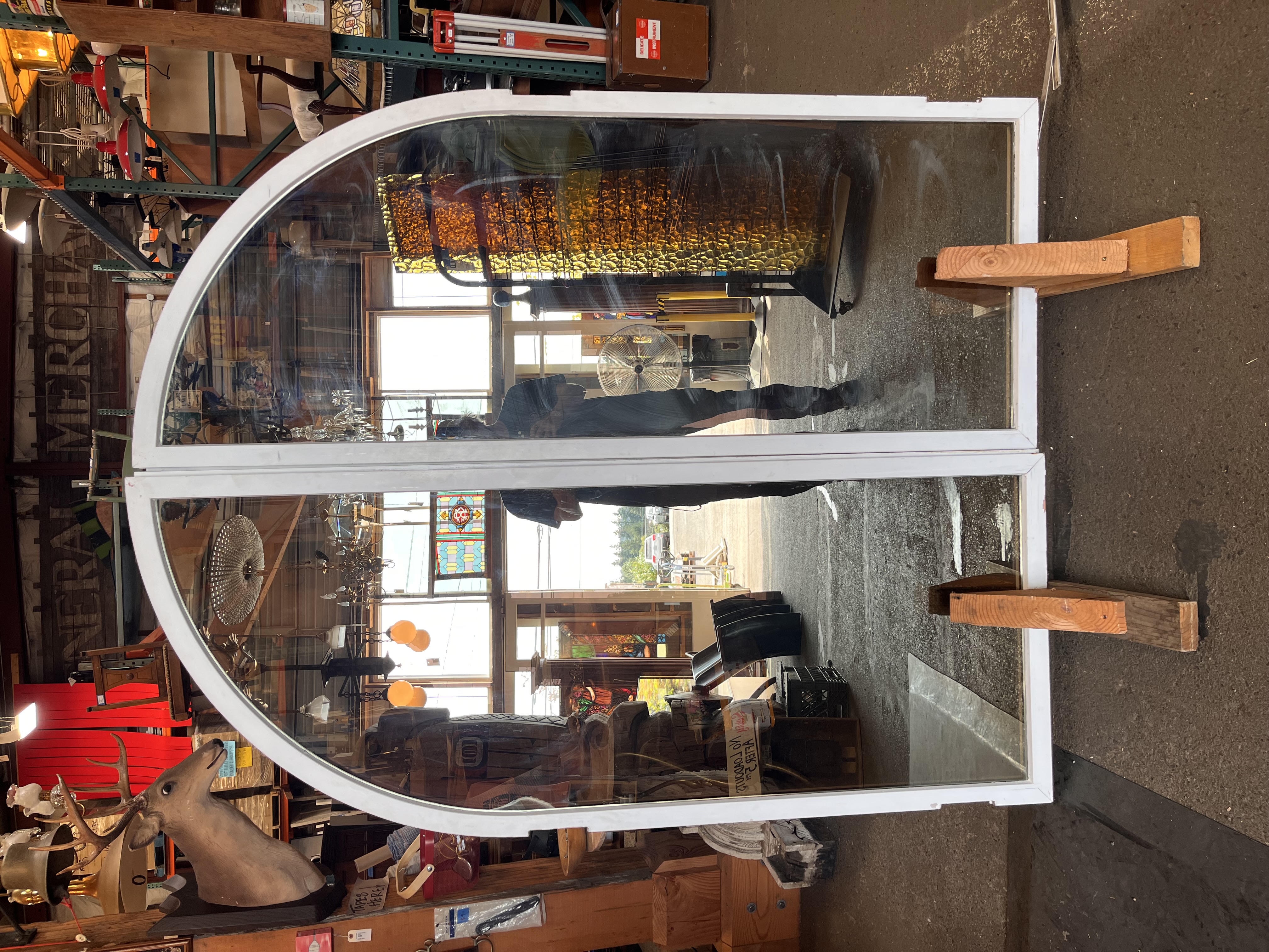 These windows are in great condition! They are designed to opened outwards and feature a dark tinted reflective glass. Some scuffing and chips towards the bottom and on the edges.