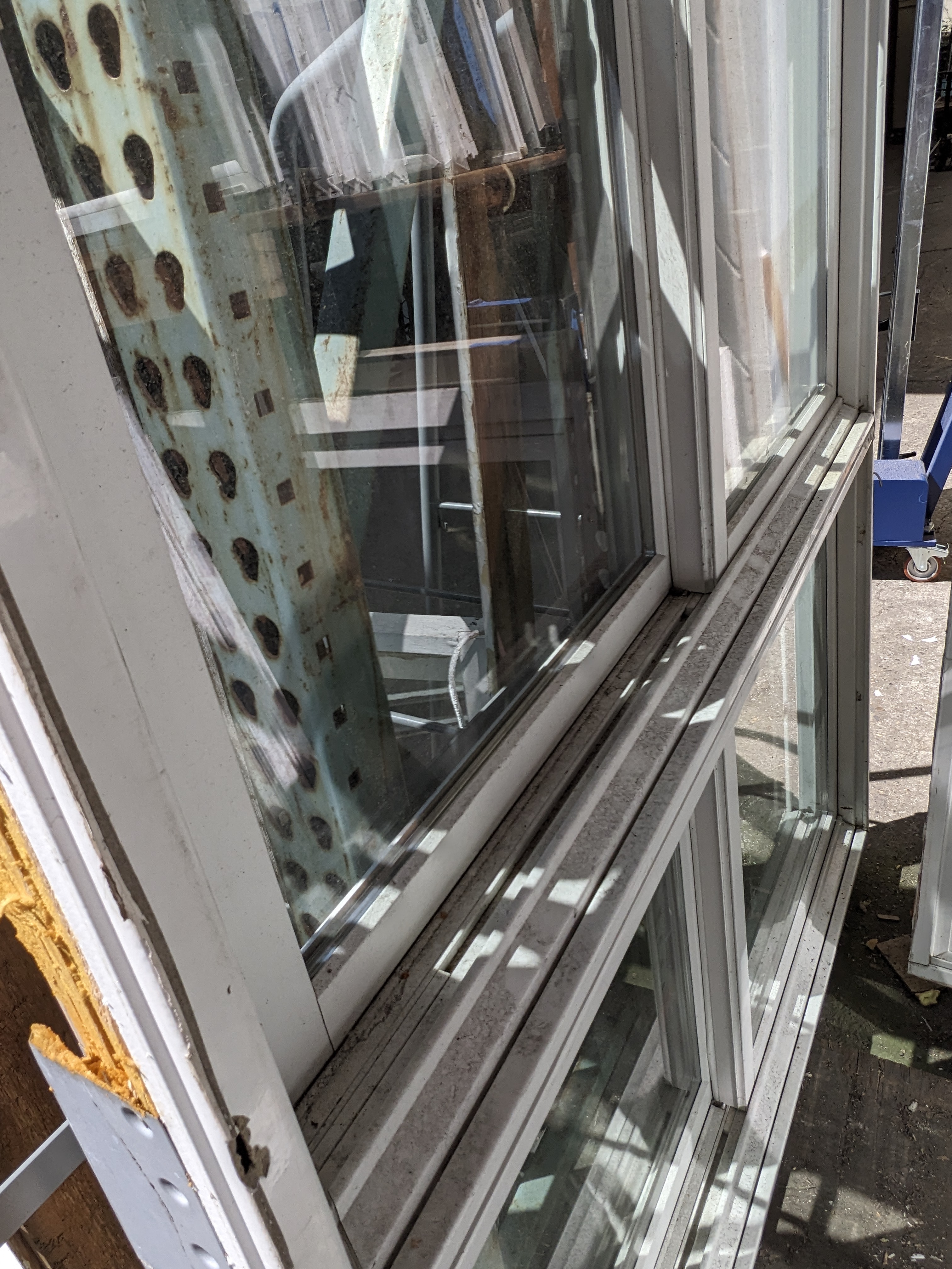 Salvaged vinyl window, in good condition. May need some cleaning.