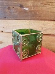 Little vintage green glass candle box 4.5 x 4.5