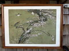 Vintage Blossoms and Birds Original Painting 50.75 x 37.75